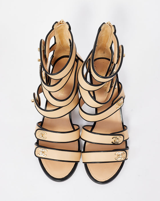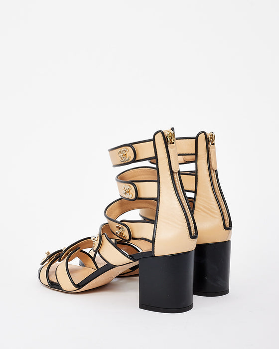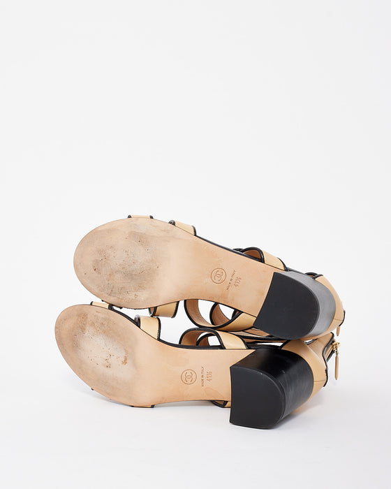 Beige/Black Leather CC Gladiator Sandals - 41.5