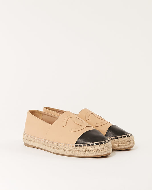 Beige/Black Leather CC Interlocking Espadrilles -38