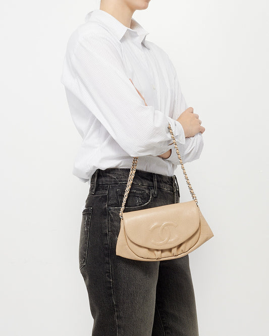 Beige Caviar Leather CC Logo Half Moon Chain Bag