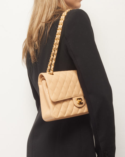 Beige Claire Caviar Leather Medium Classic Flap GHW