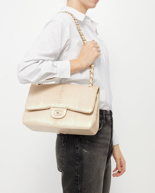 Beige Iridescent Python Jumbo Classic Double Flap Bag