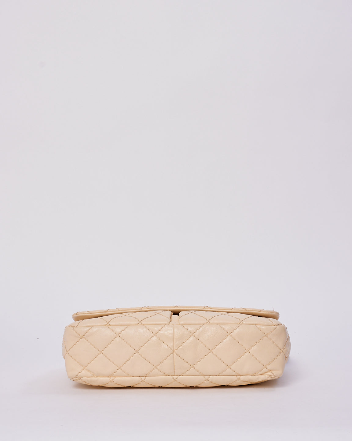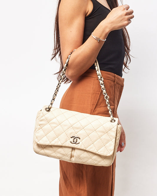 Beige Matelasse Leather with Aged Silver Hardware Flap Bag