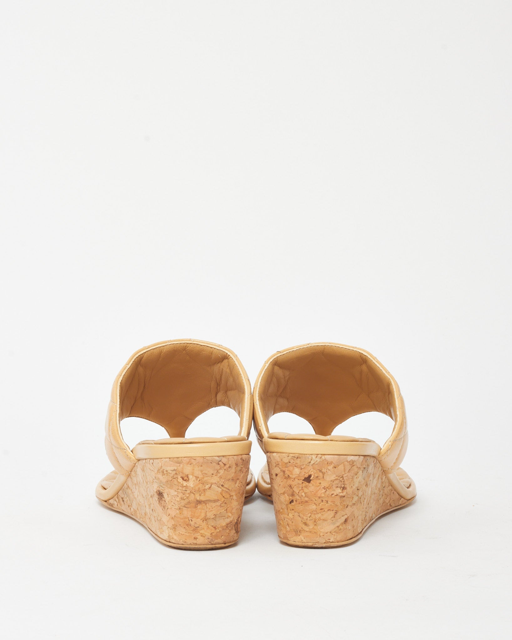Beige Shiny Quilted Goatskin Leather 19 Logo Wedge Thong Sandals - 37