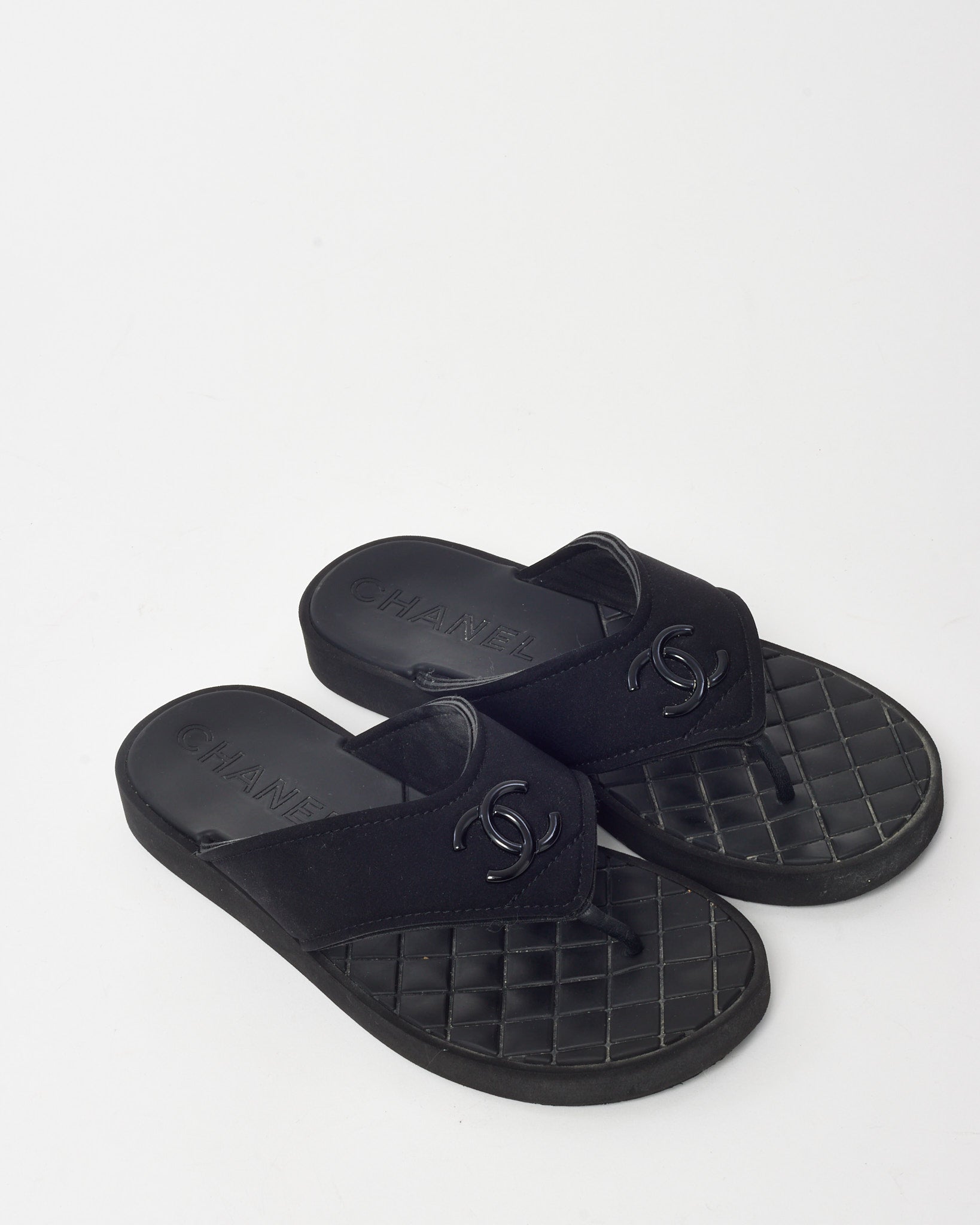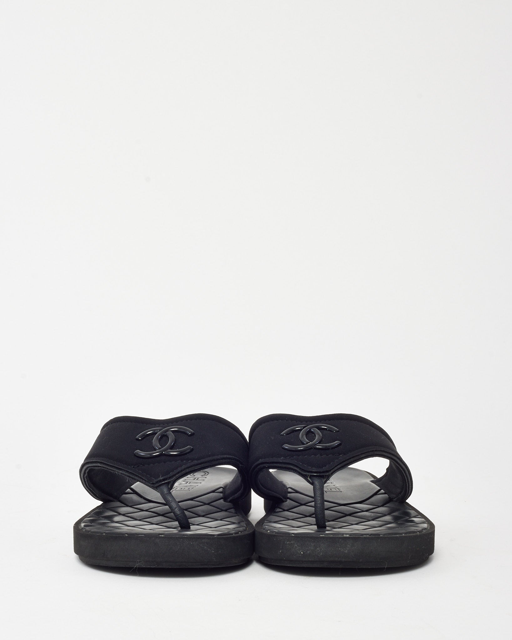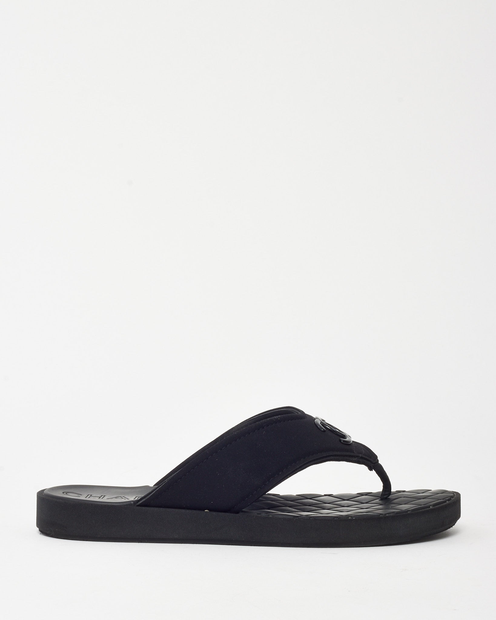 Black 23P Fabric Black CC Logo Thong Flip Flops - 37