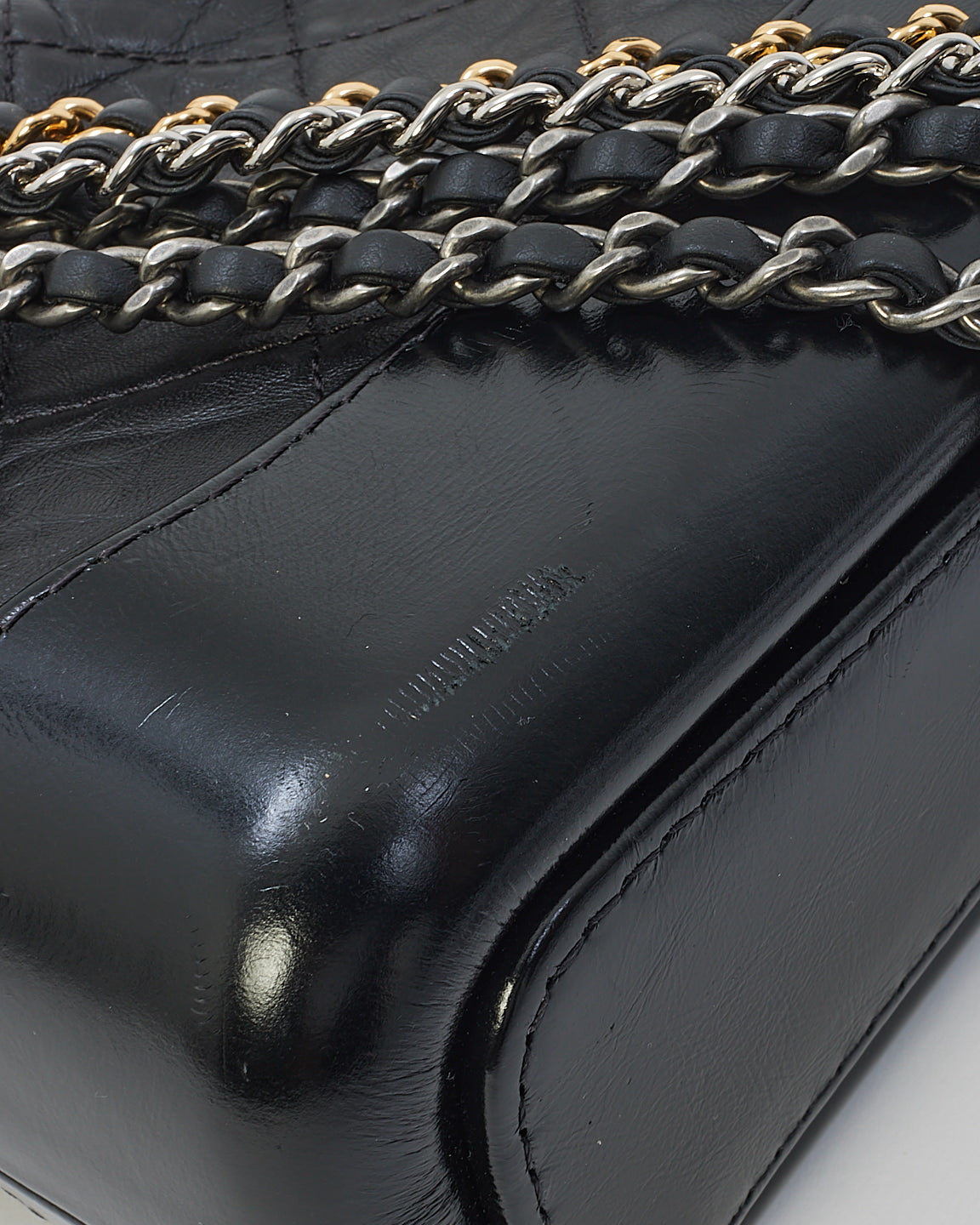 Elevate your style with the 100% authentic pre-owned Chanel Black Aged Calfskin Small Hobo Gabrielle Bag, a perfect blend of modern edge and timeless elegance. Crafted from luxurious aged calfskin leather, this bag features a structured base with a soft, slouchy top for a chic, effortless look. The iconic mixed-metal chain strap allows for versatile styling, whether worn crossbody or over the shoulder. With its classic black hue and subtle CC logo charm, the Gabrielle bag offers both sophistication and practicality, making it a must-have for everyday use or special occasions