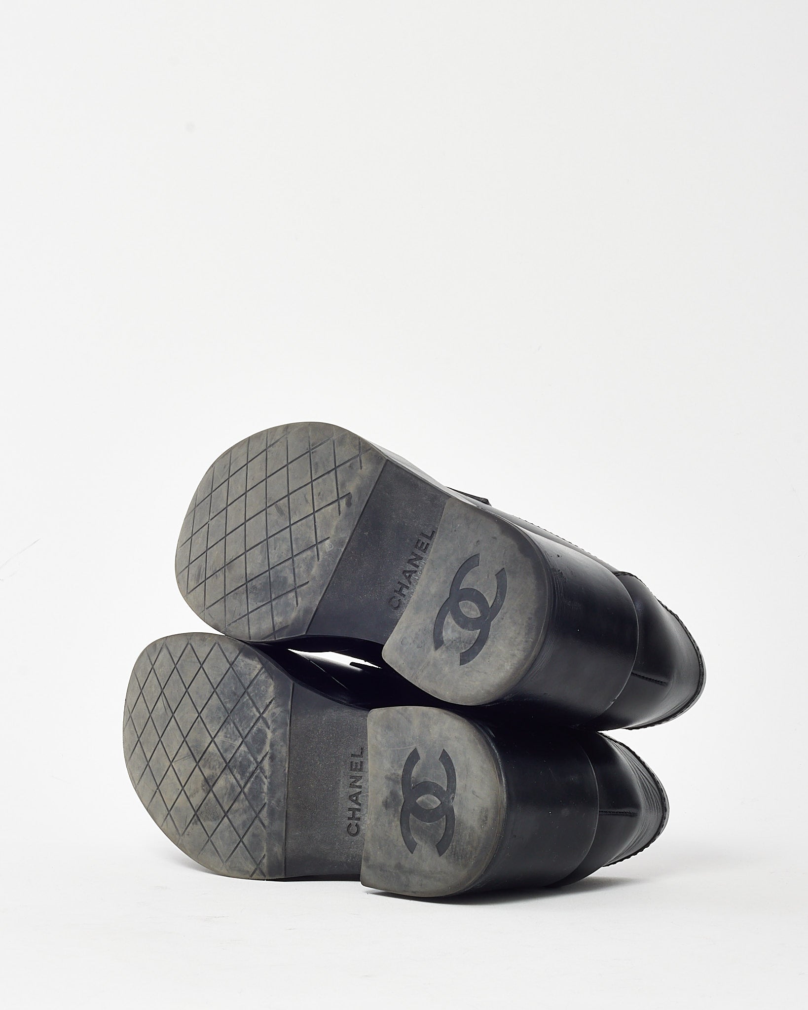Black Calfskin Leather Black CC Coco Mark Platform Loafers - 38