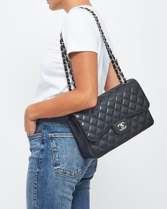 Black Caviar Leather Jumbo Classic Double Flap Bag with SHW