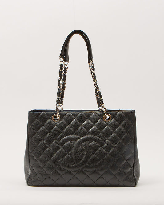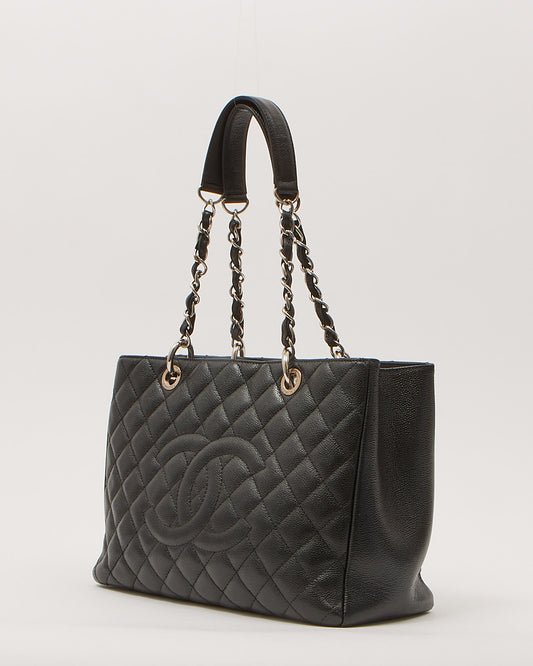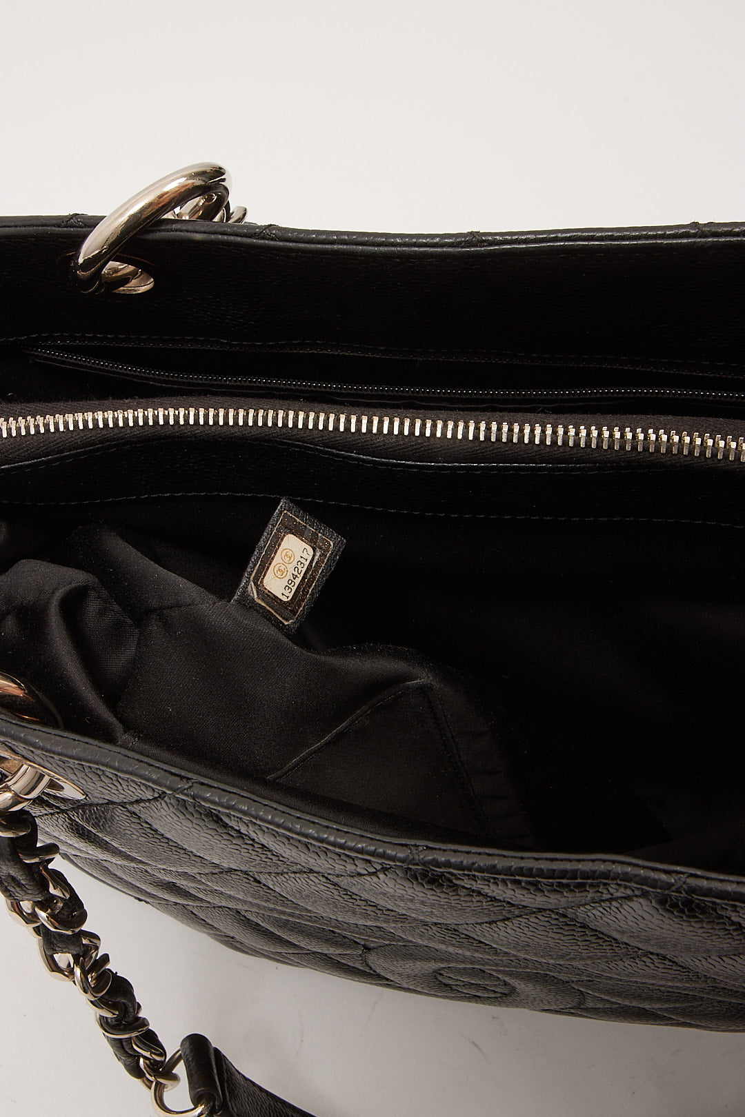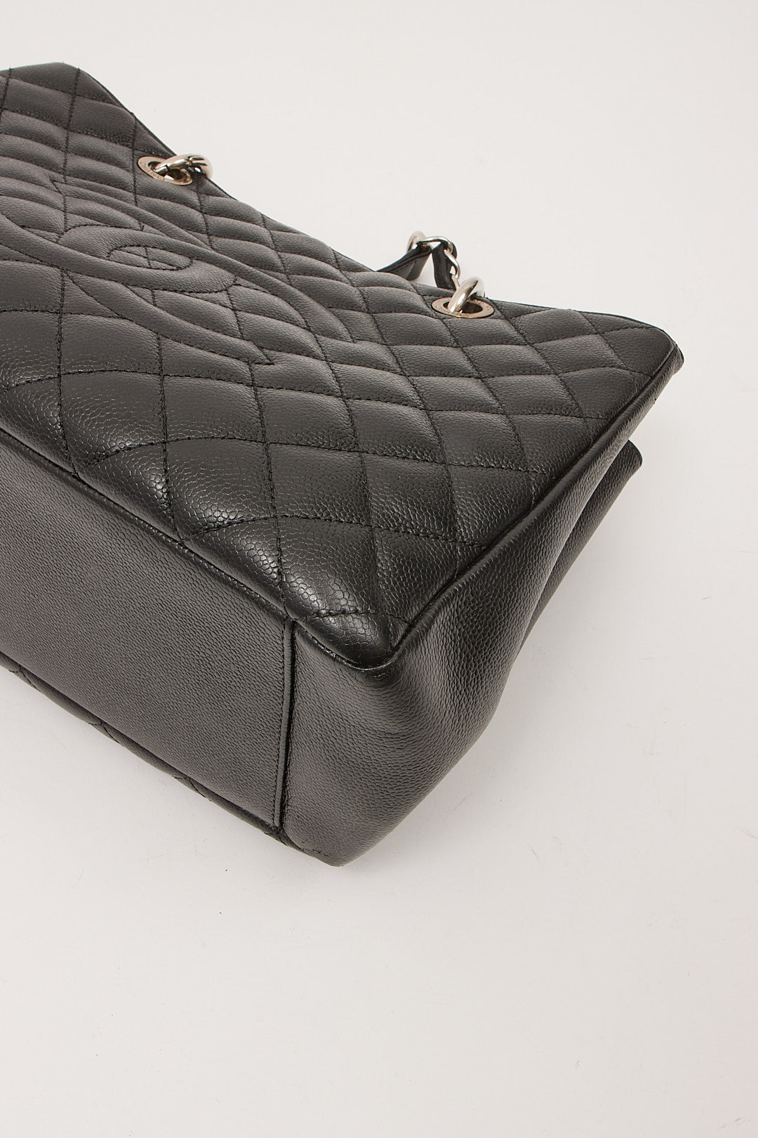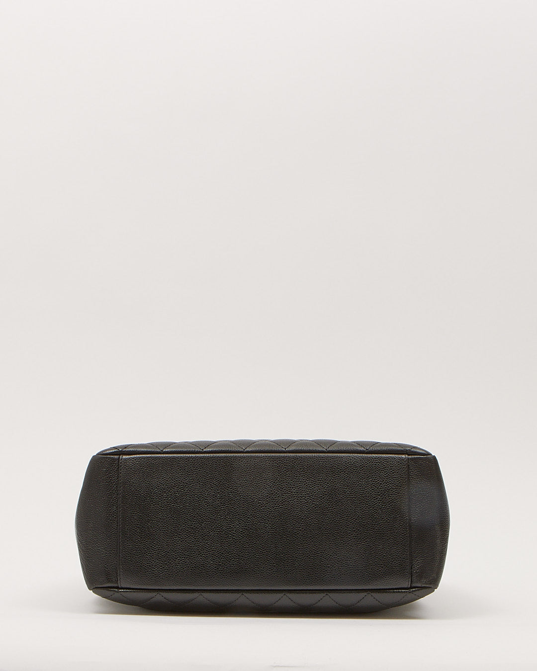 Black Caviar Leather Quilted Grand Shopping Tote Bag