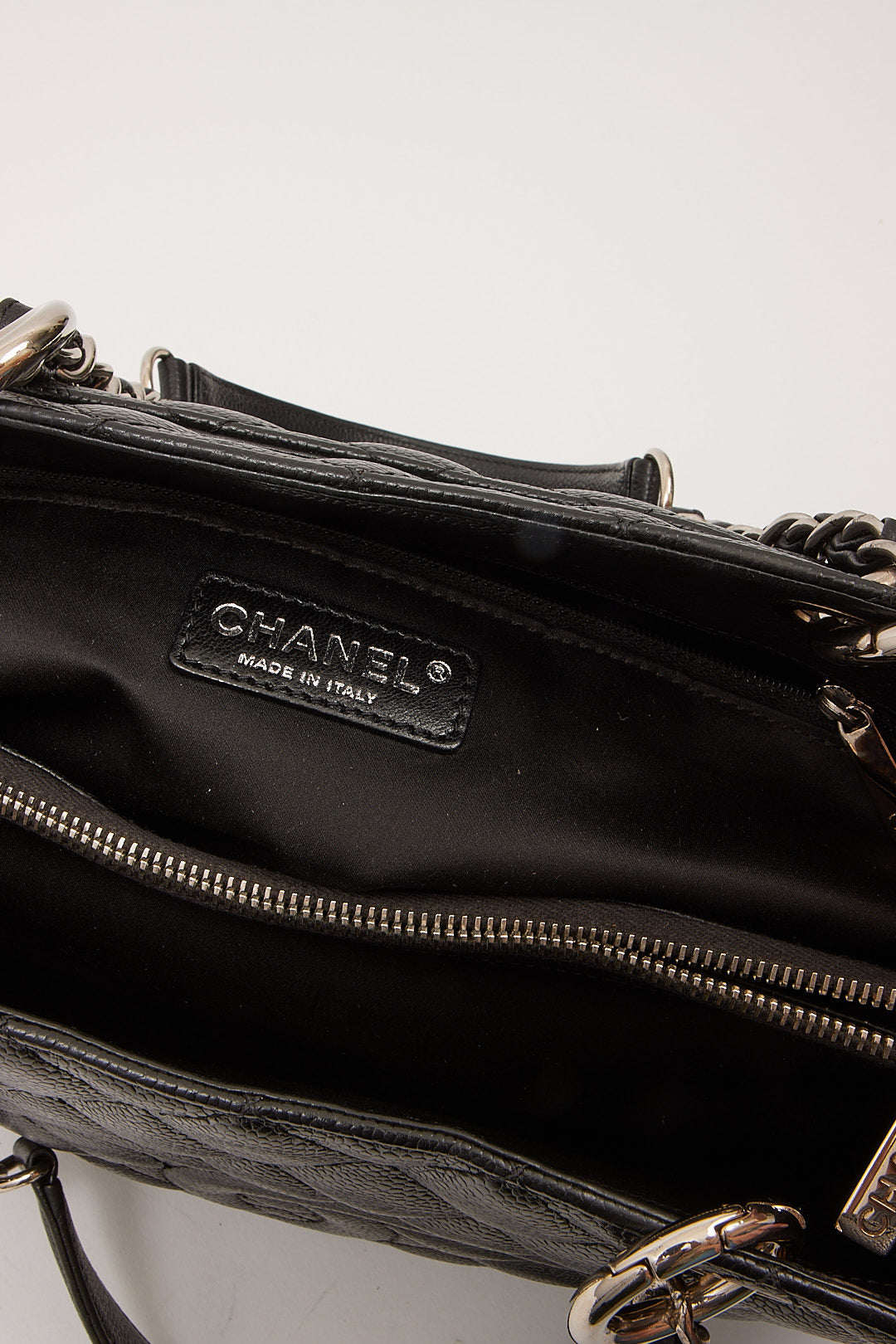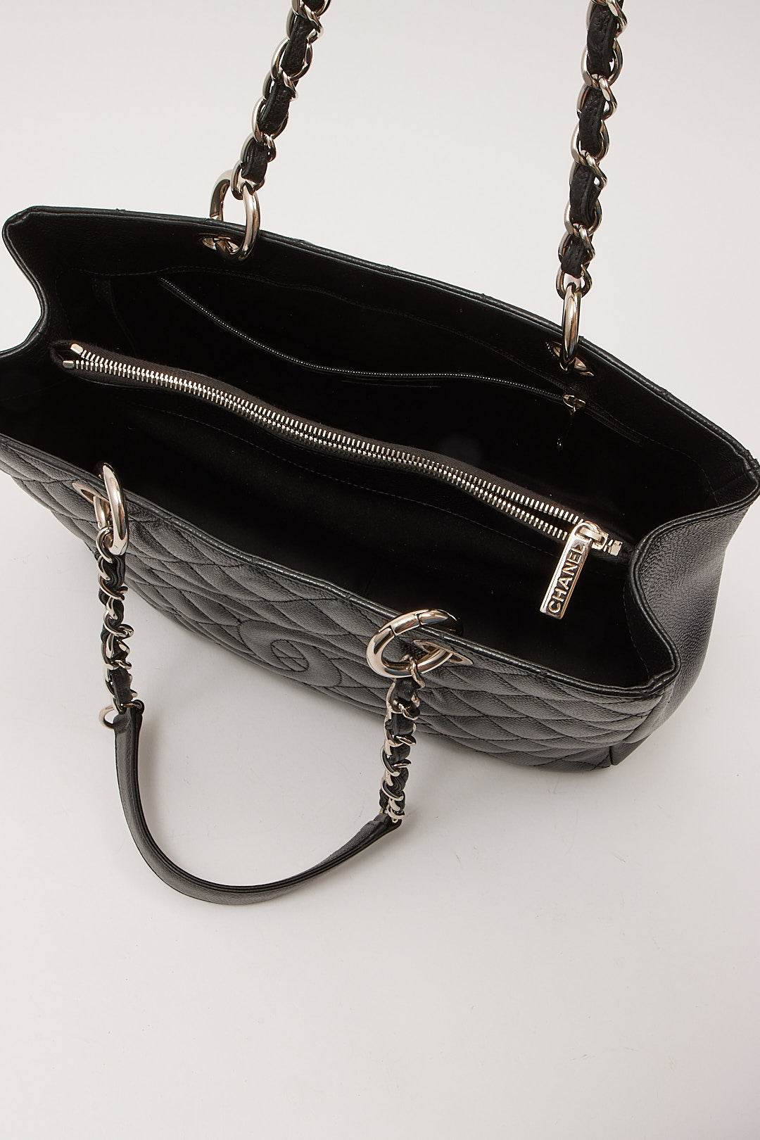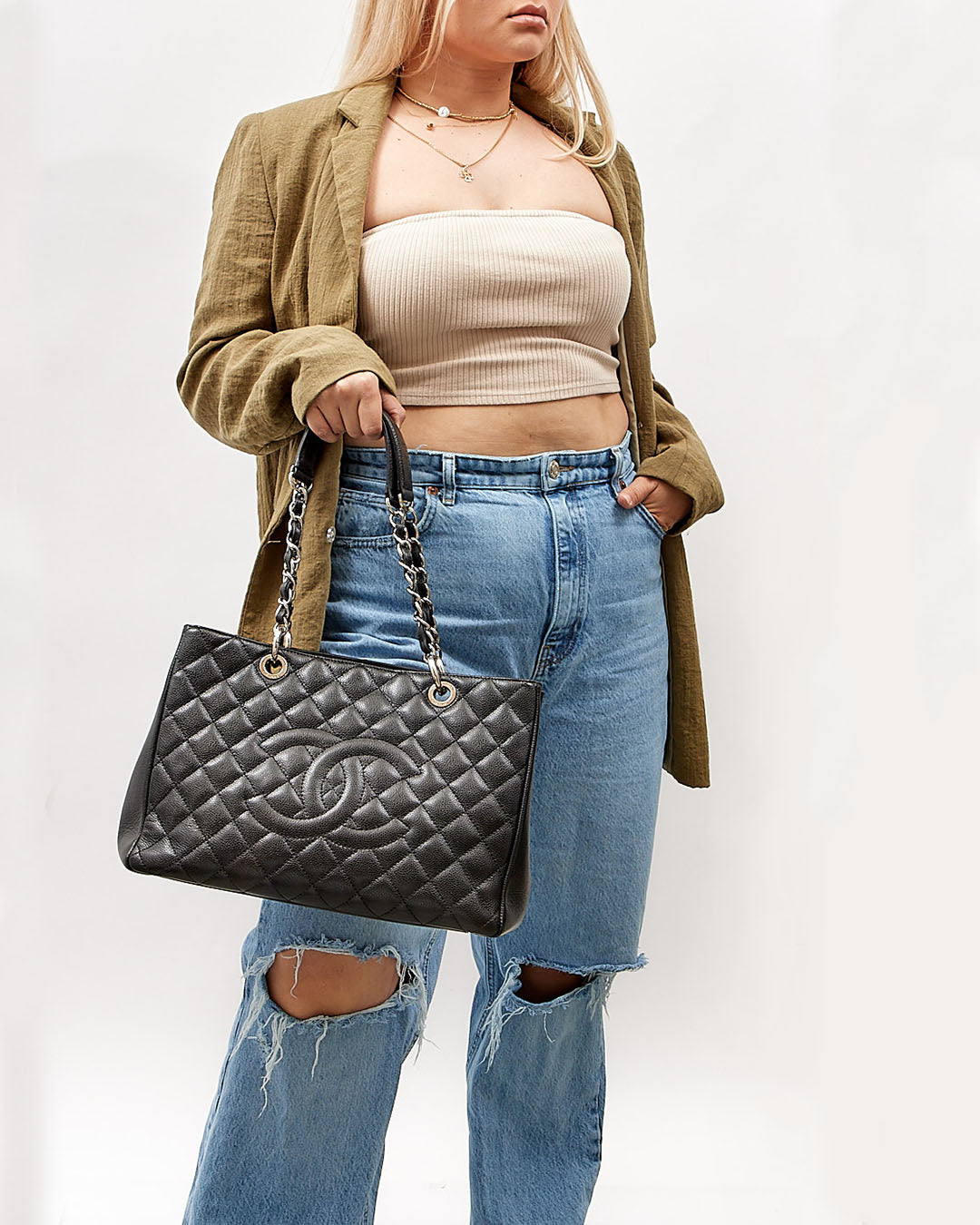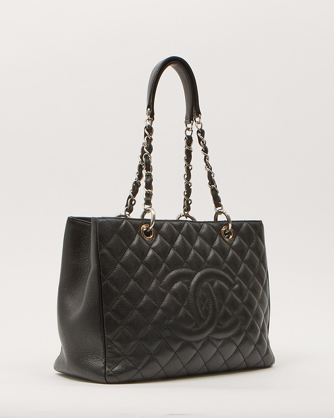 Black Caviar Leather Quilted Grand Shopping Tote Bag