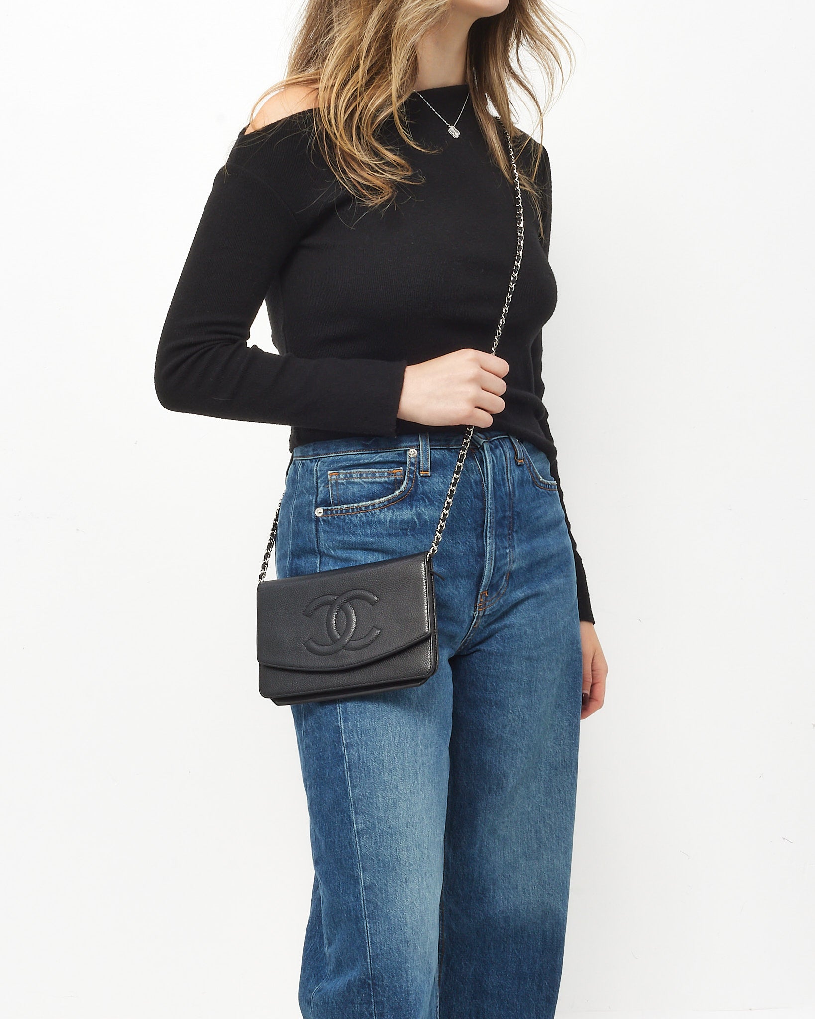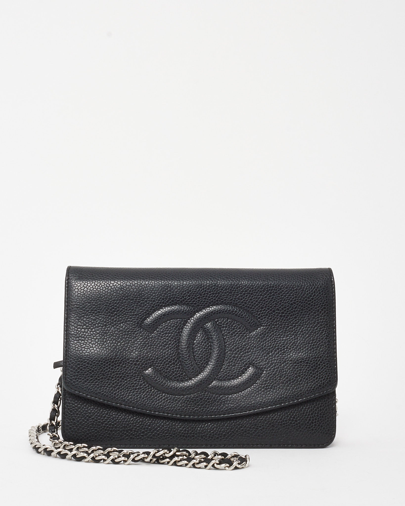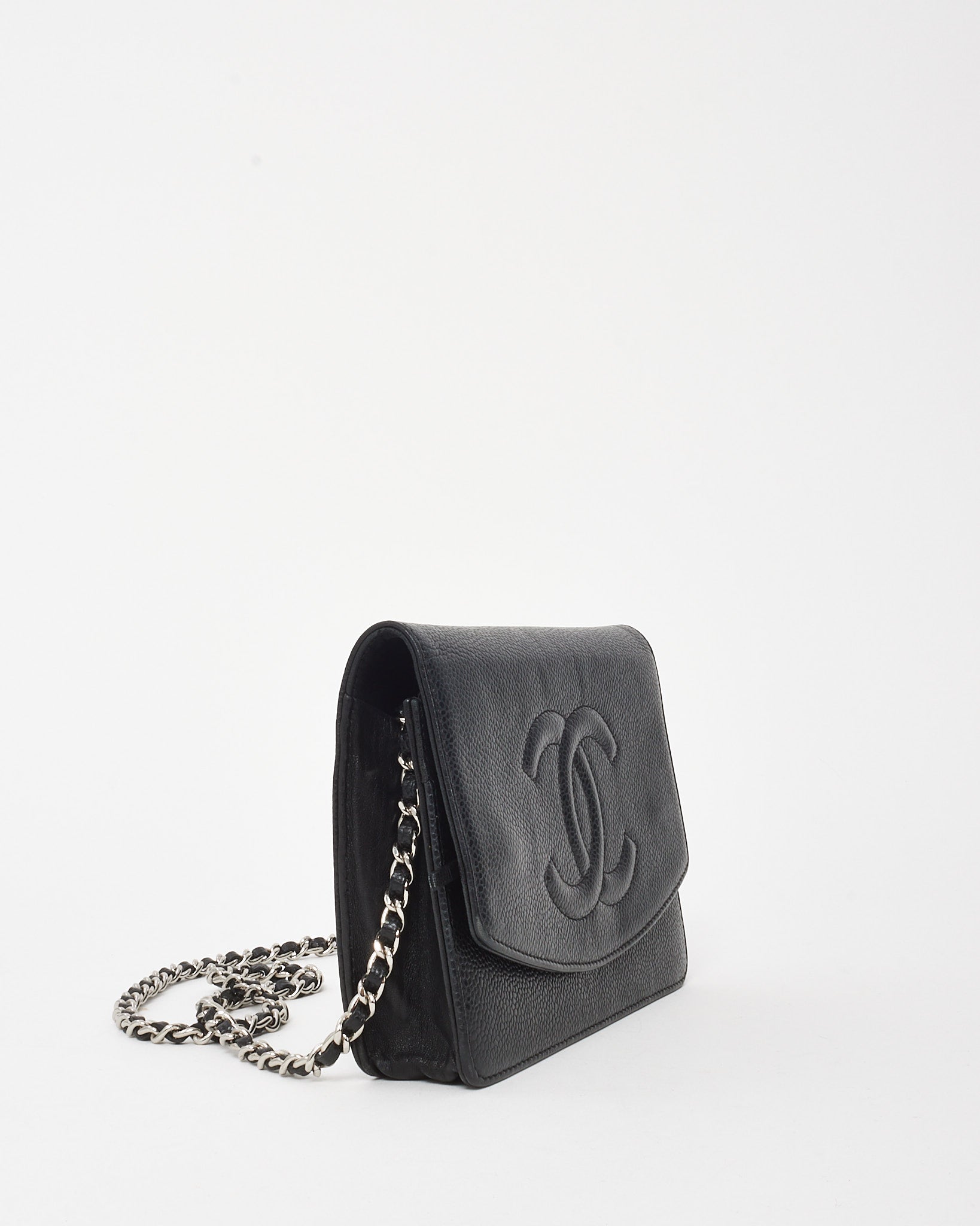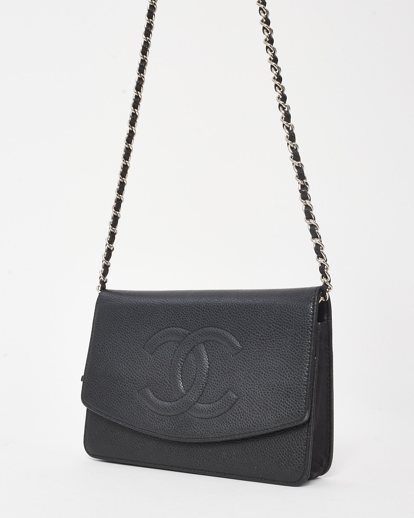 Black Caviar Leather Timeless CC WOC Wallet on Chain Bag SHW