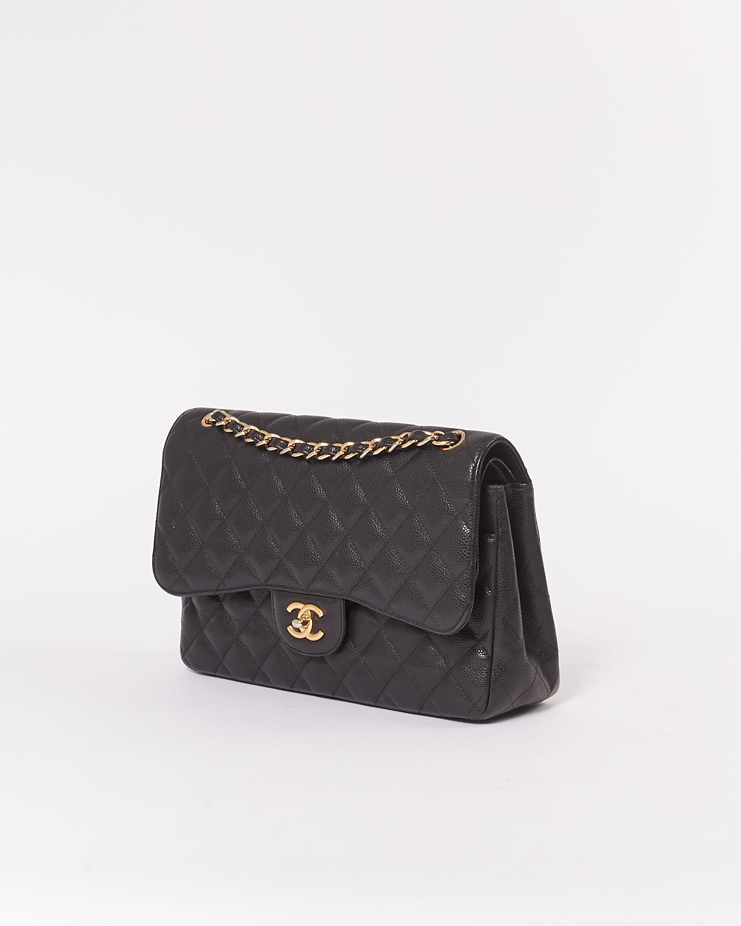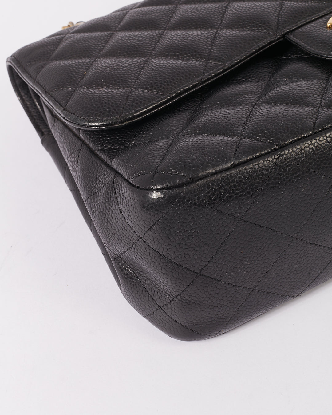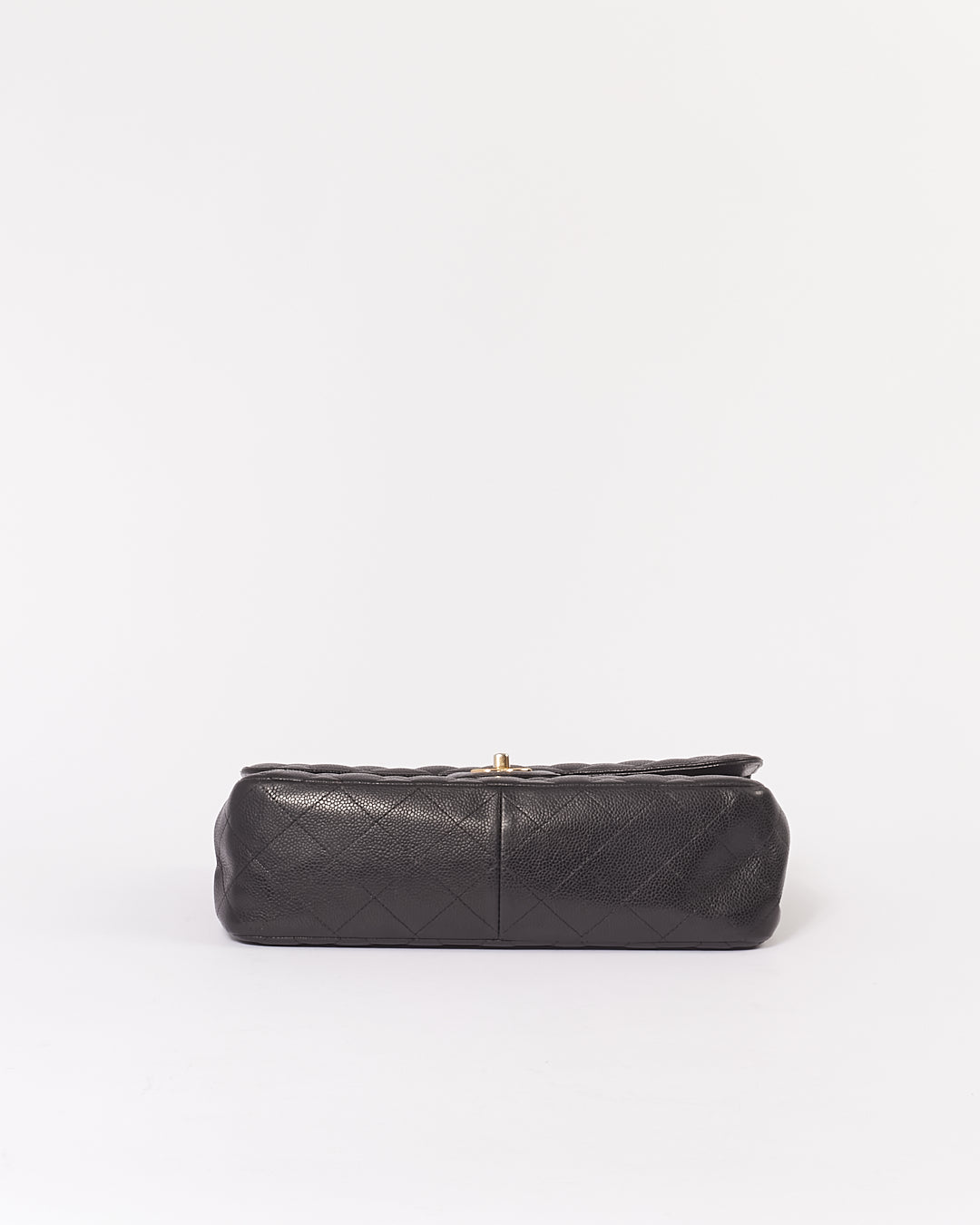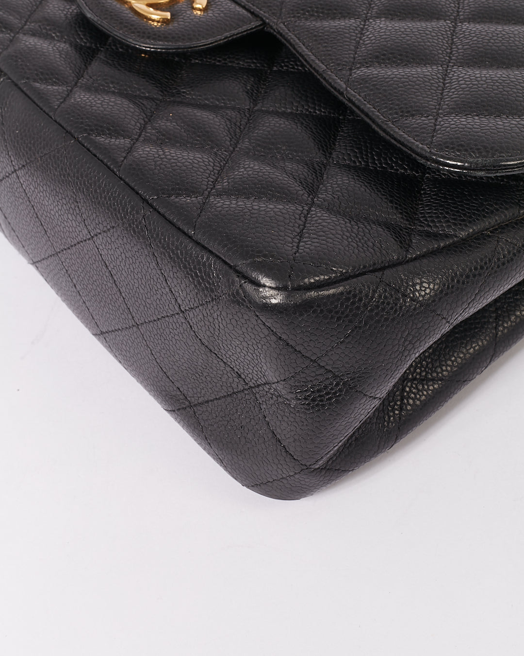 Black Caviar Quilted Leather Jumbo Double Flap Bag GHW