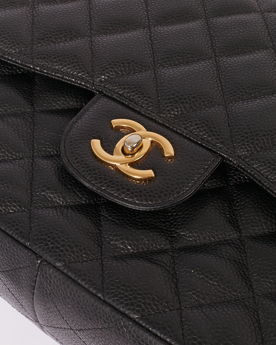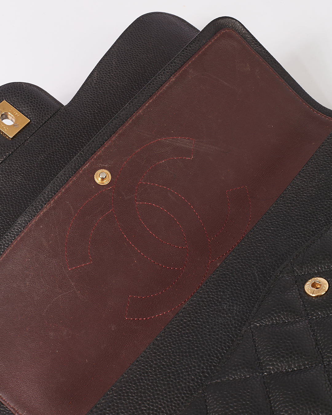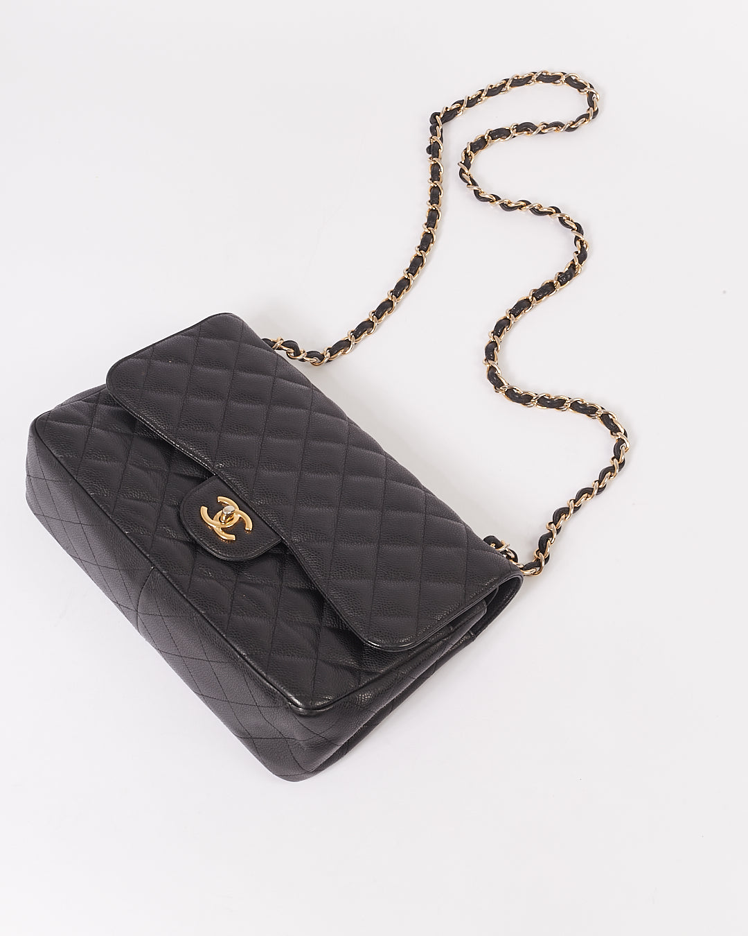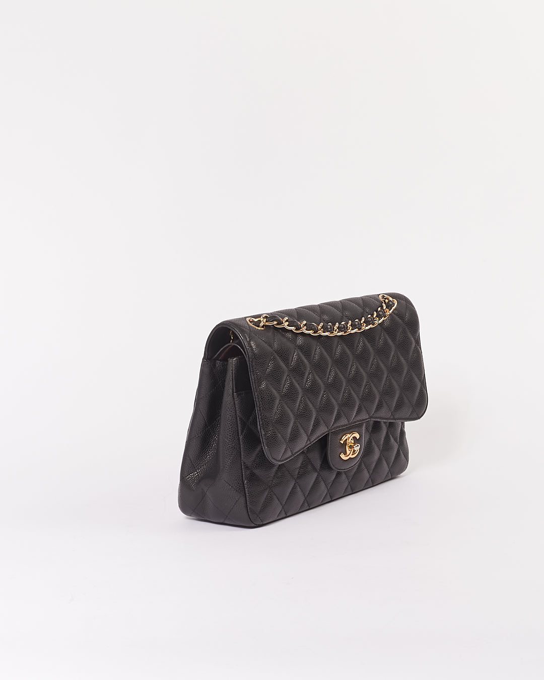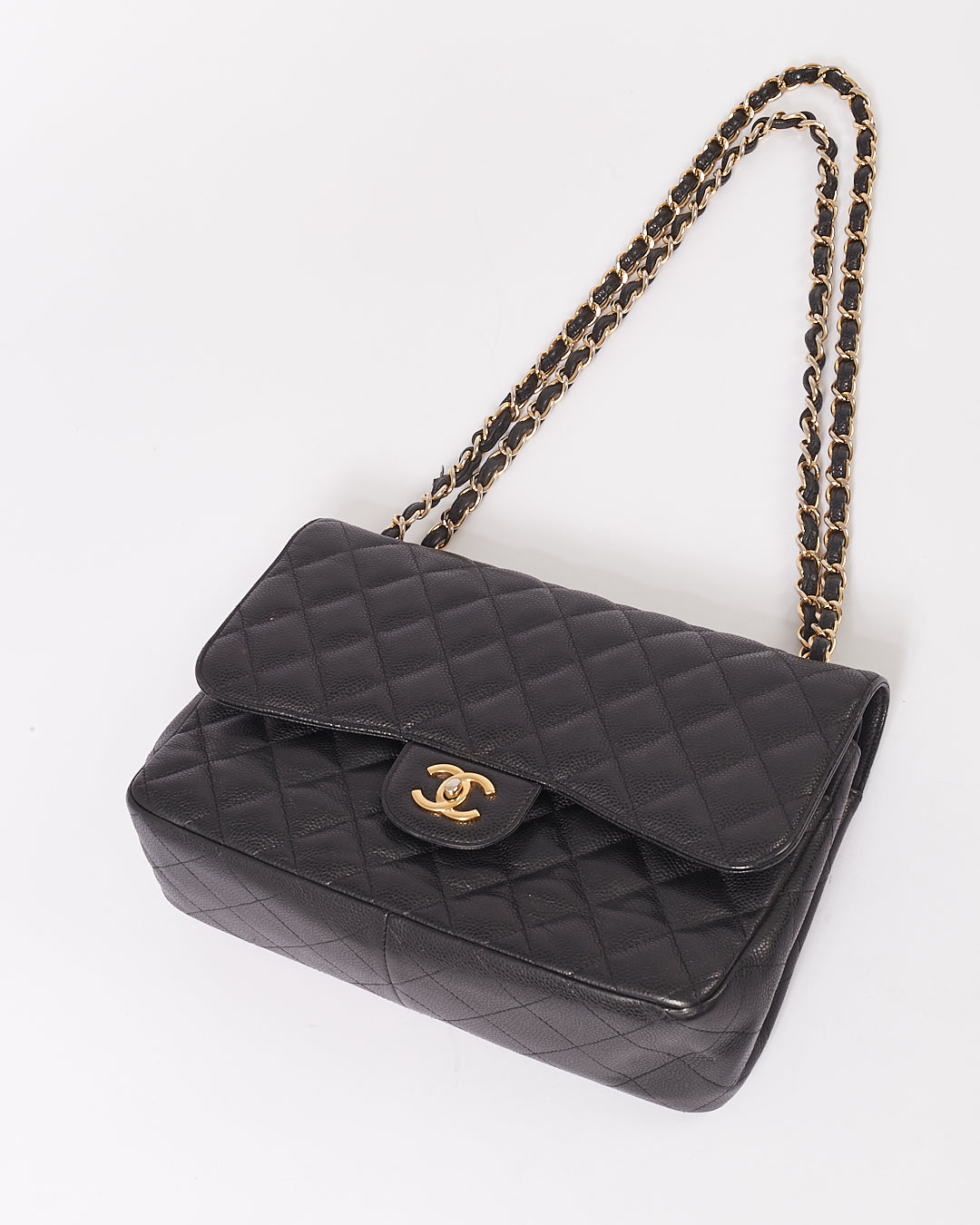 Black Caviar Quilted Leather Jumbo Double Flap Bag GHW