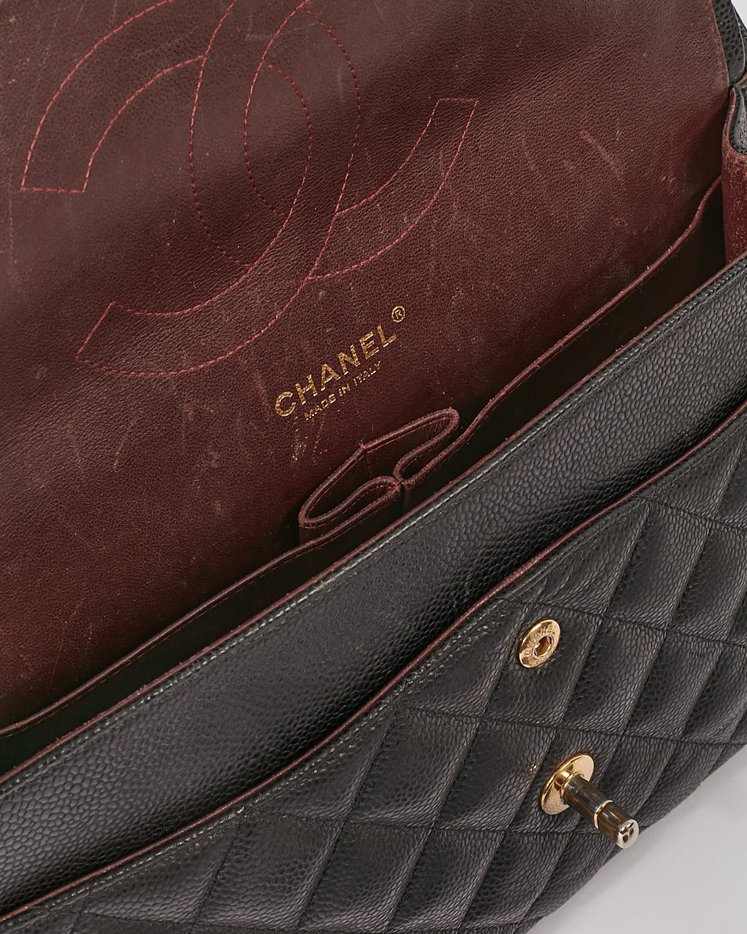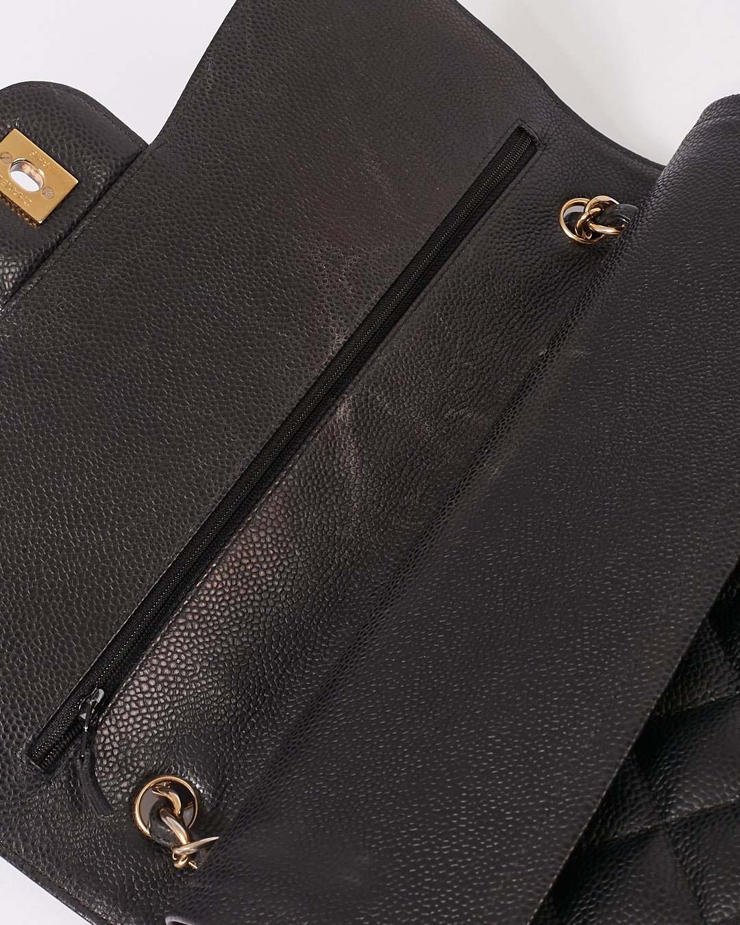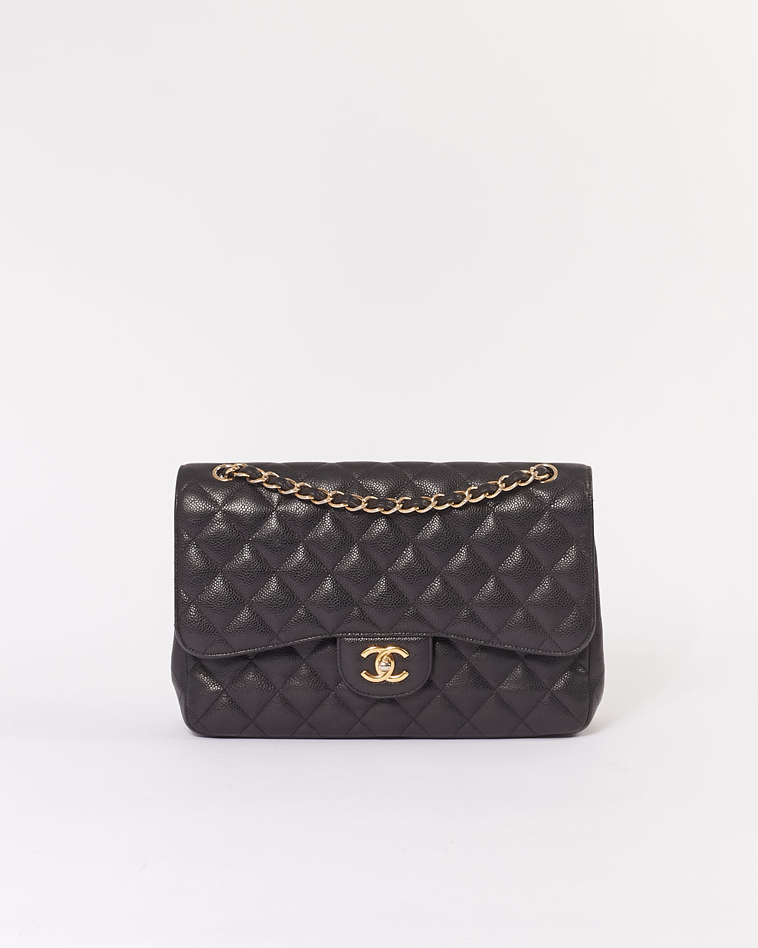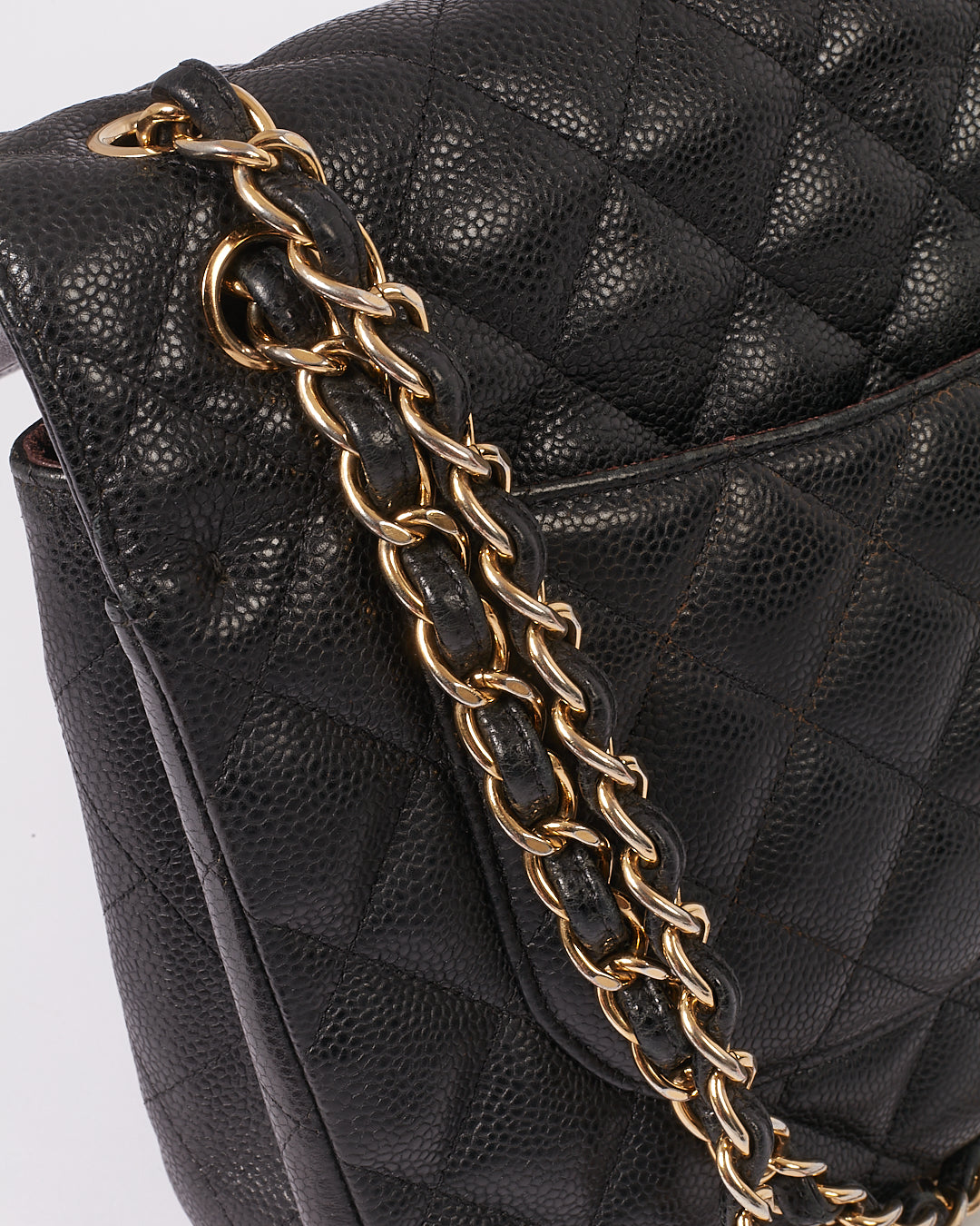 Black Caviar Quilted Leather Jumbo Double Flap Bag GHW