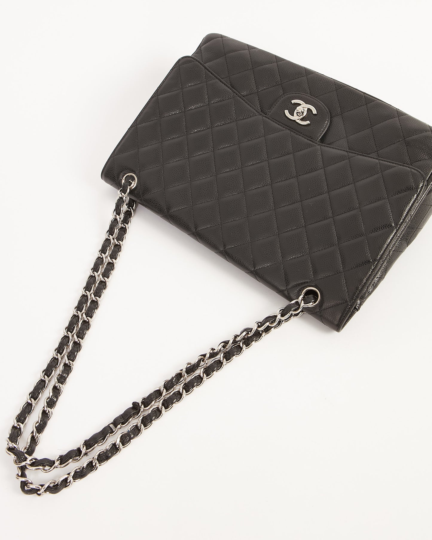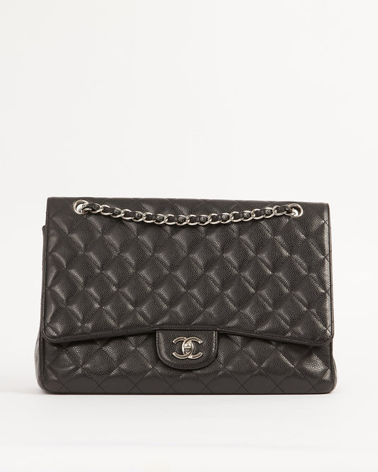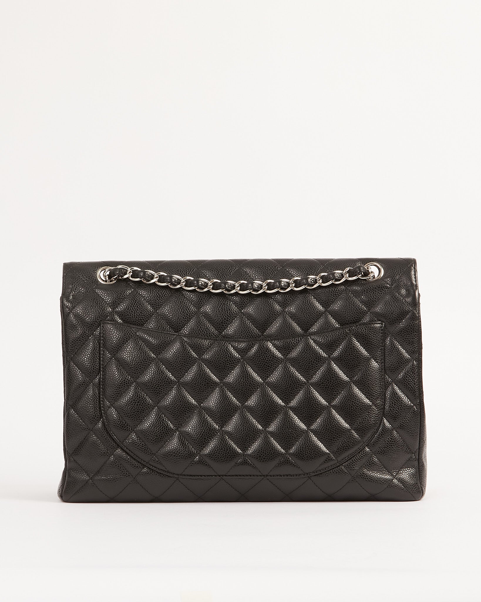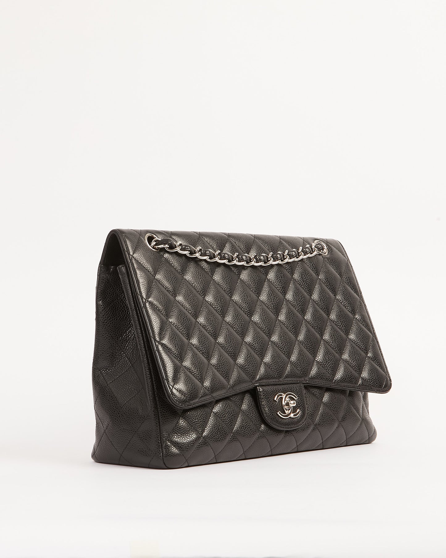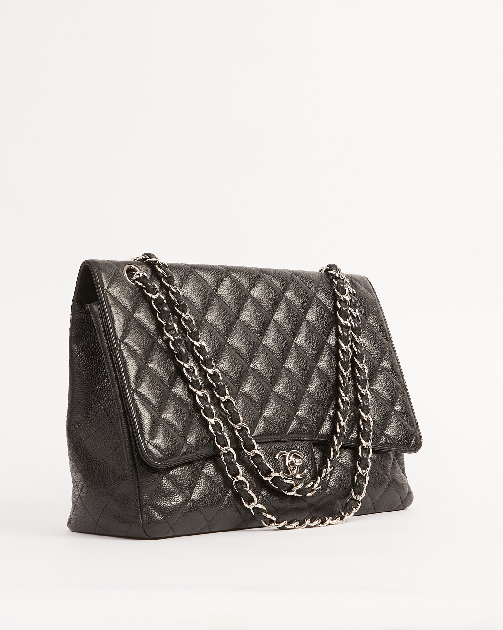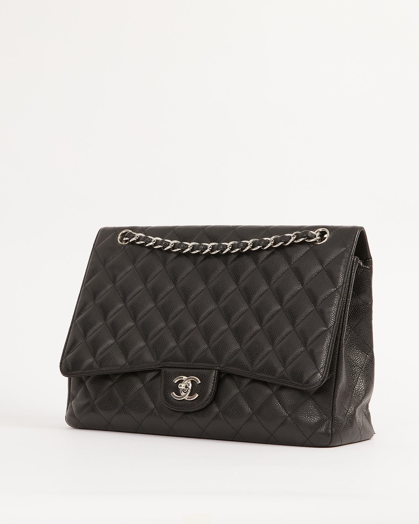 Black Caviar Quilted Single Flap Classic Maxi Bag