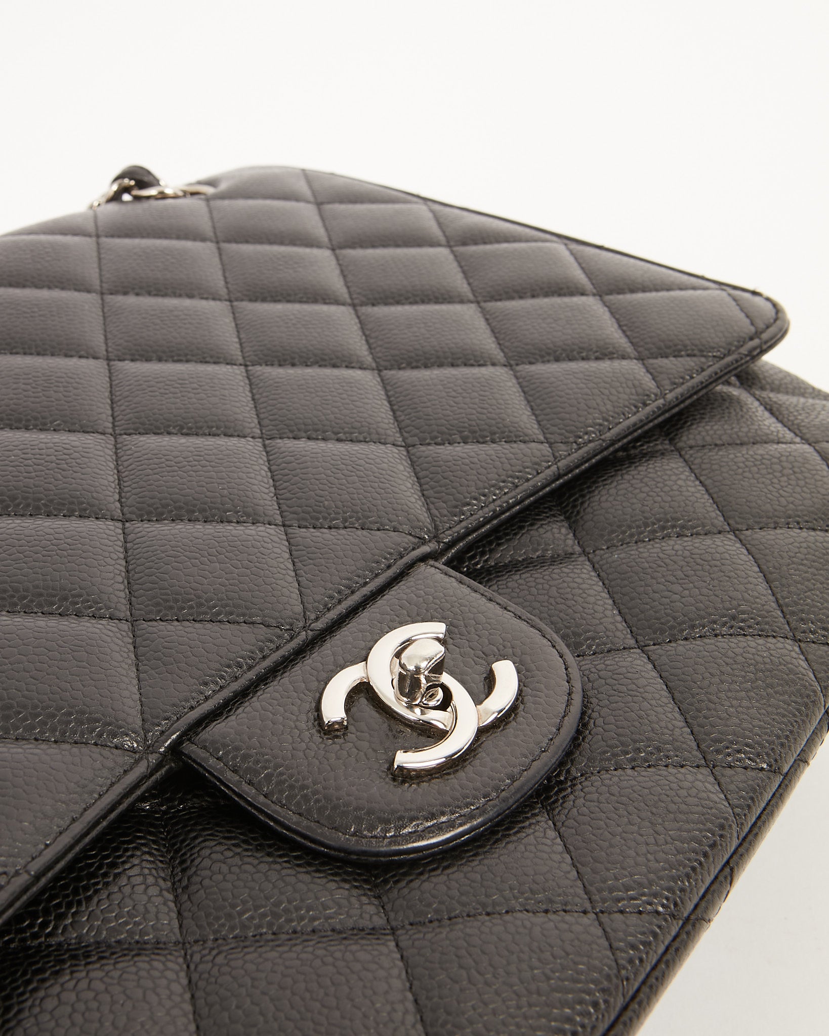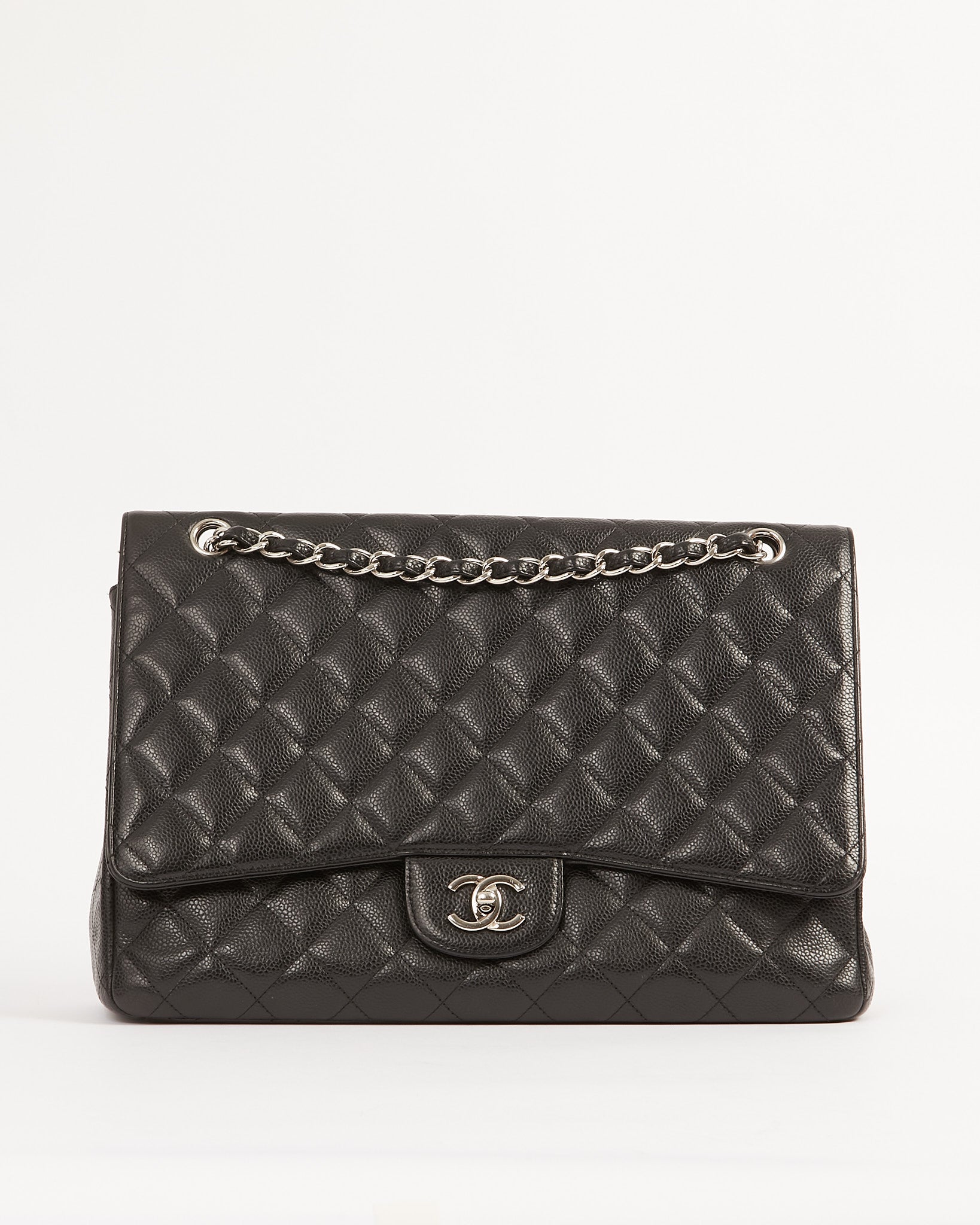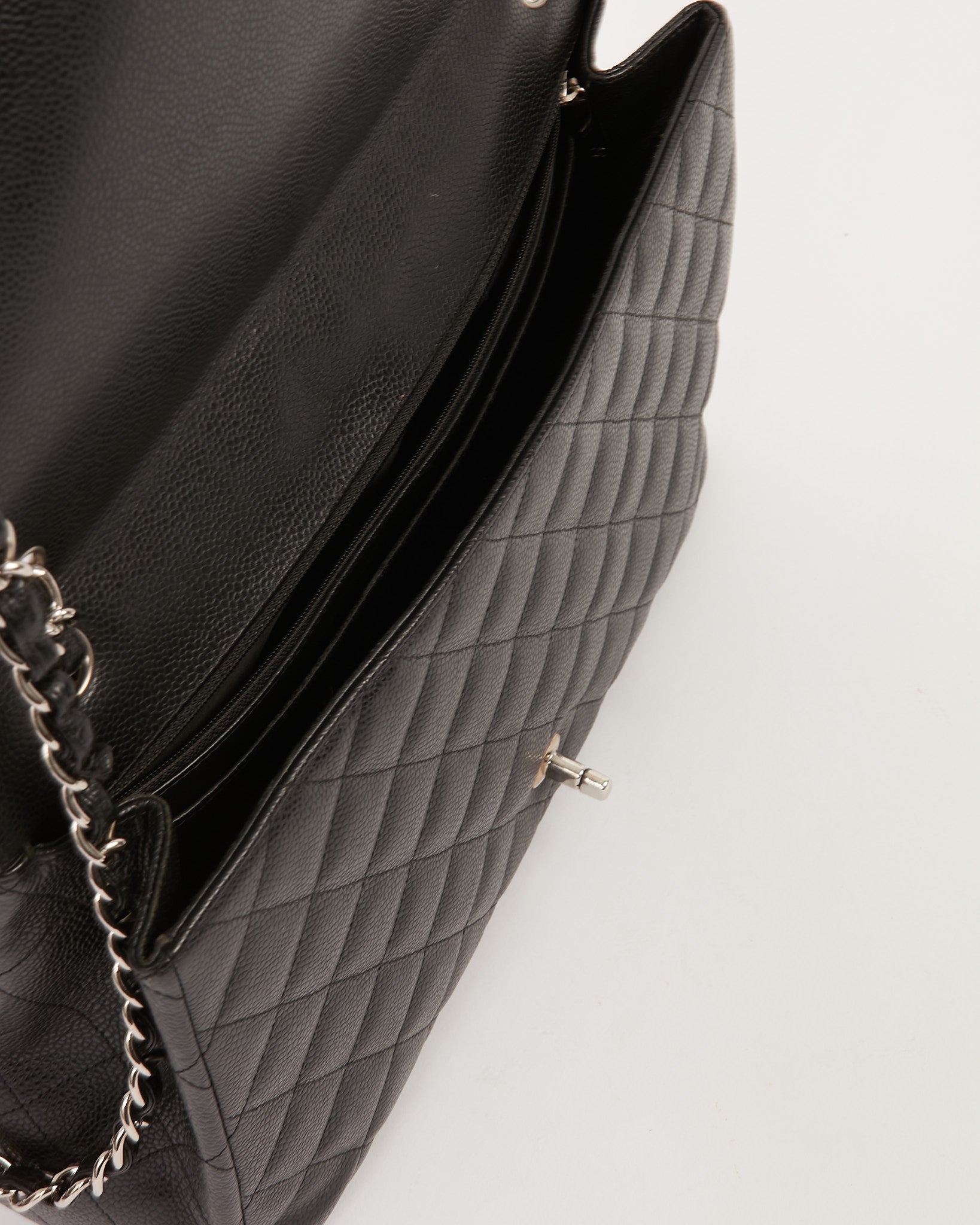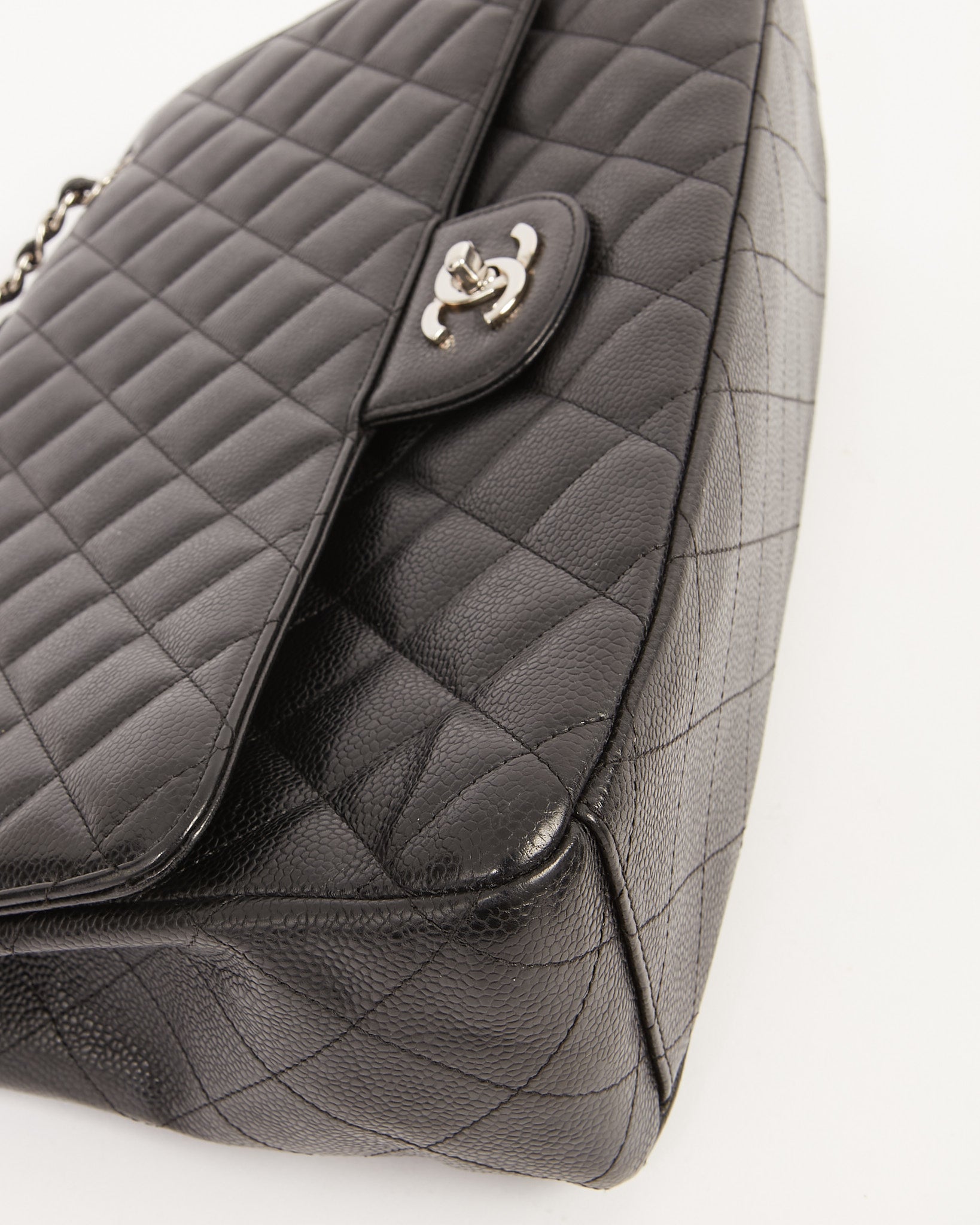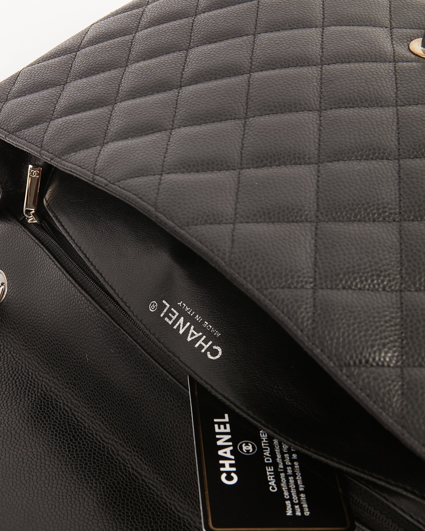 Black Caviar Quilted Single Flap Classic Maxi Bag