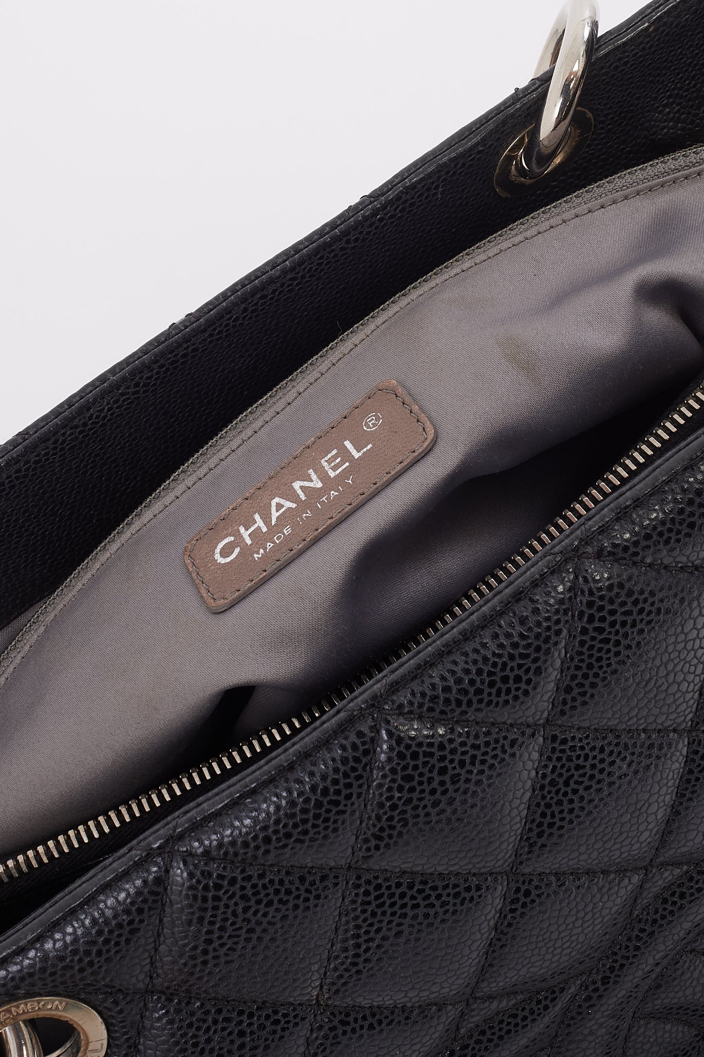 Black Caviar with Silver Hardware XL Grand Shopping Tote Bag