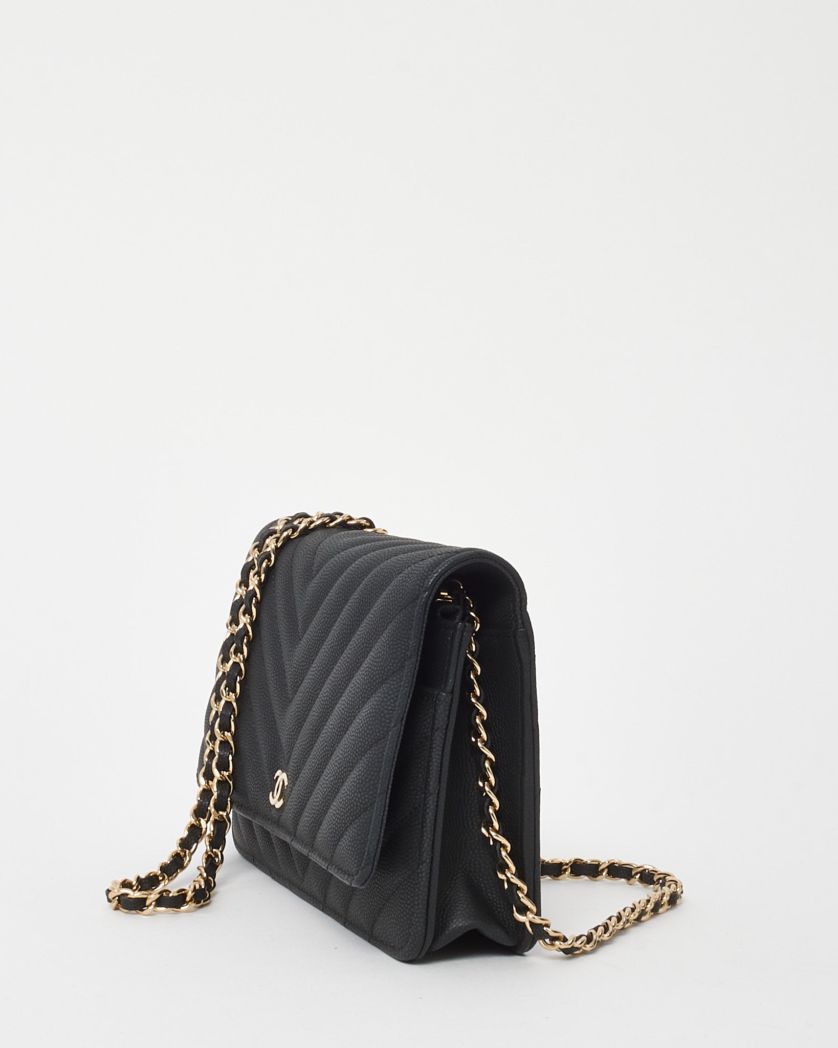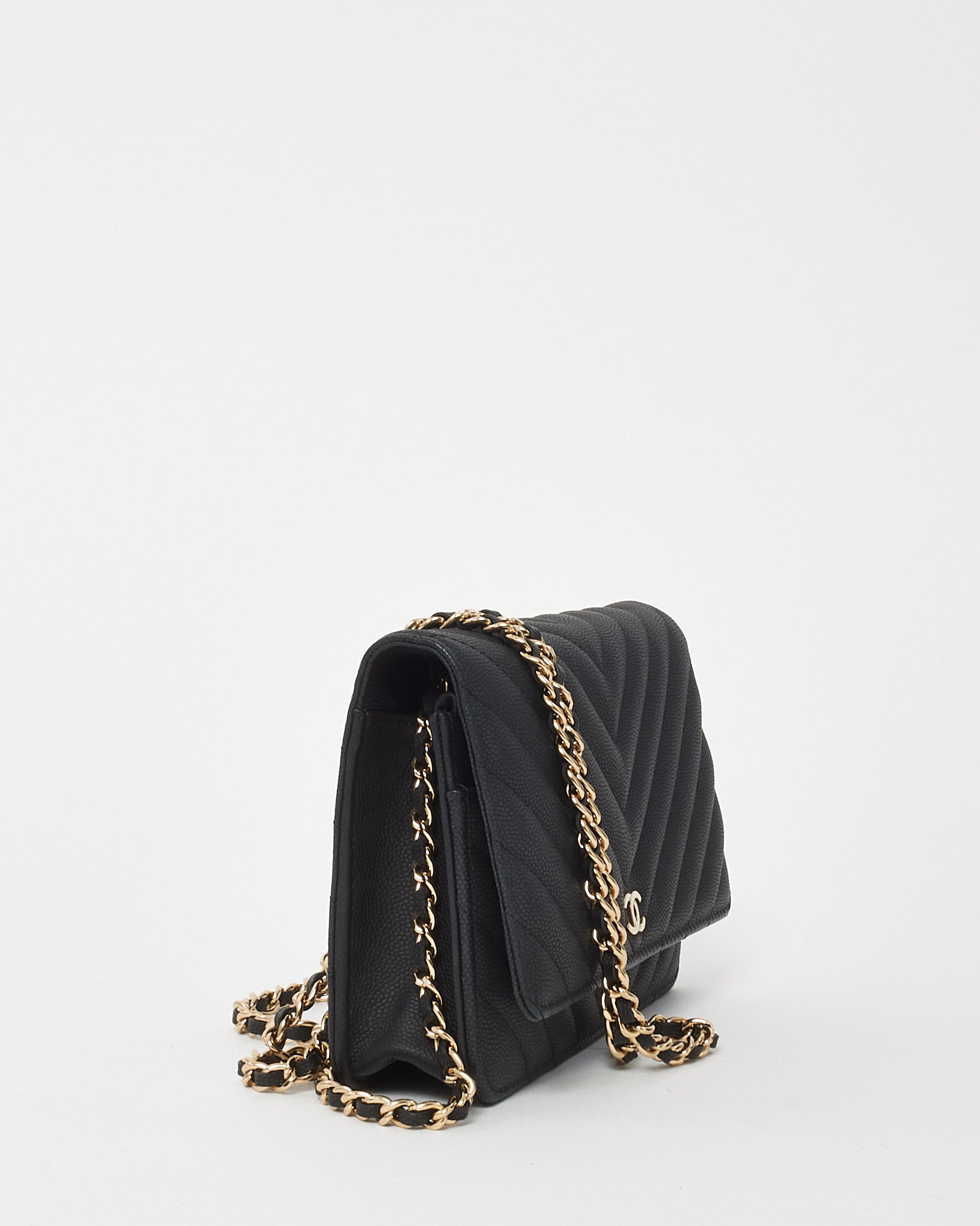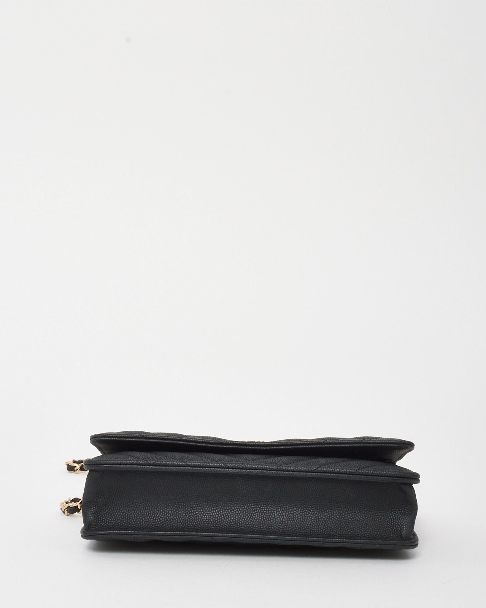 Black Chevron Caviar Leather WOC Wallet on Chain Crossbody Bag GHW