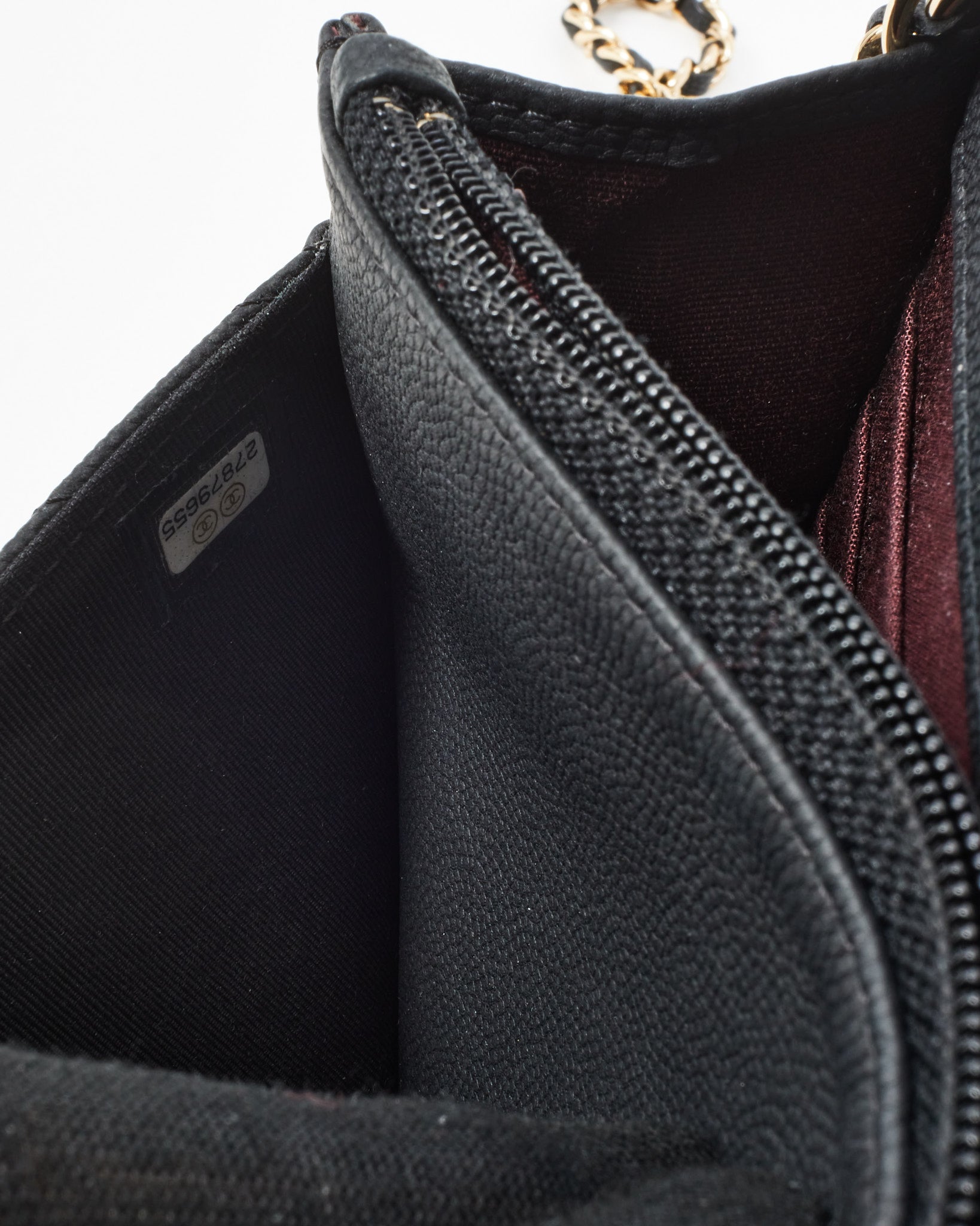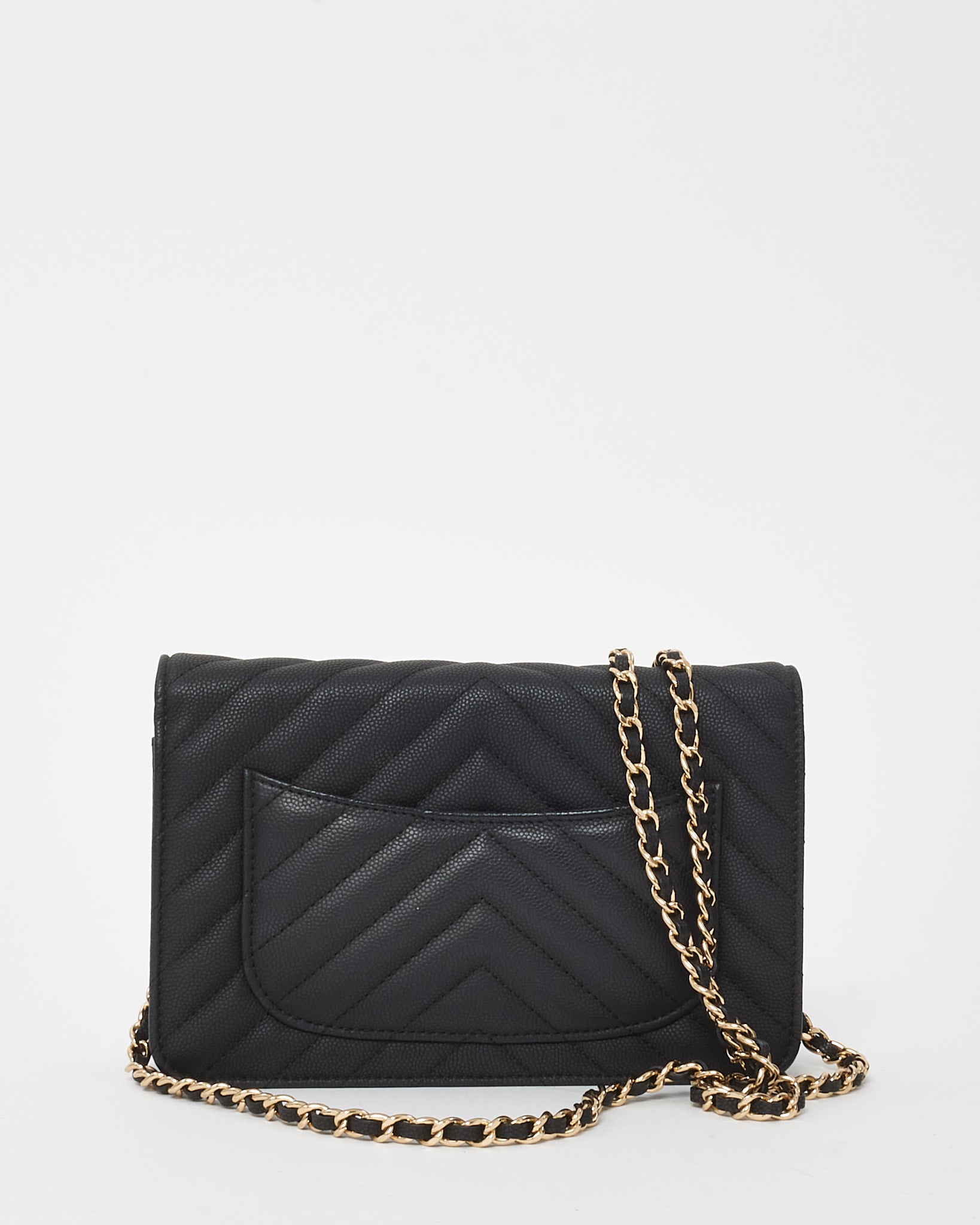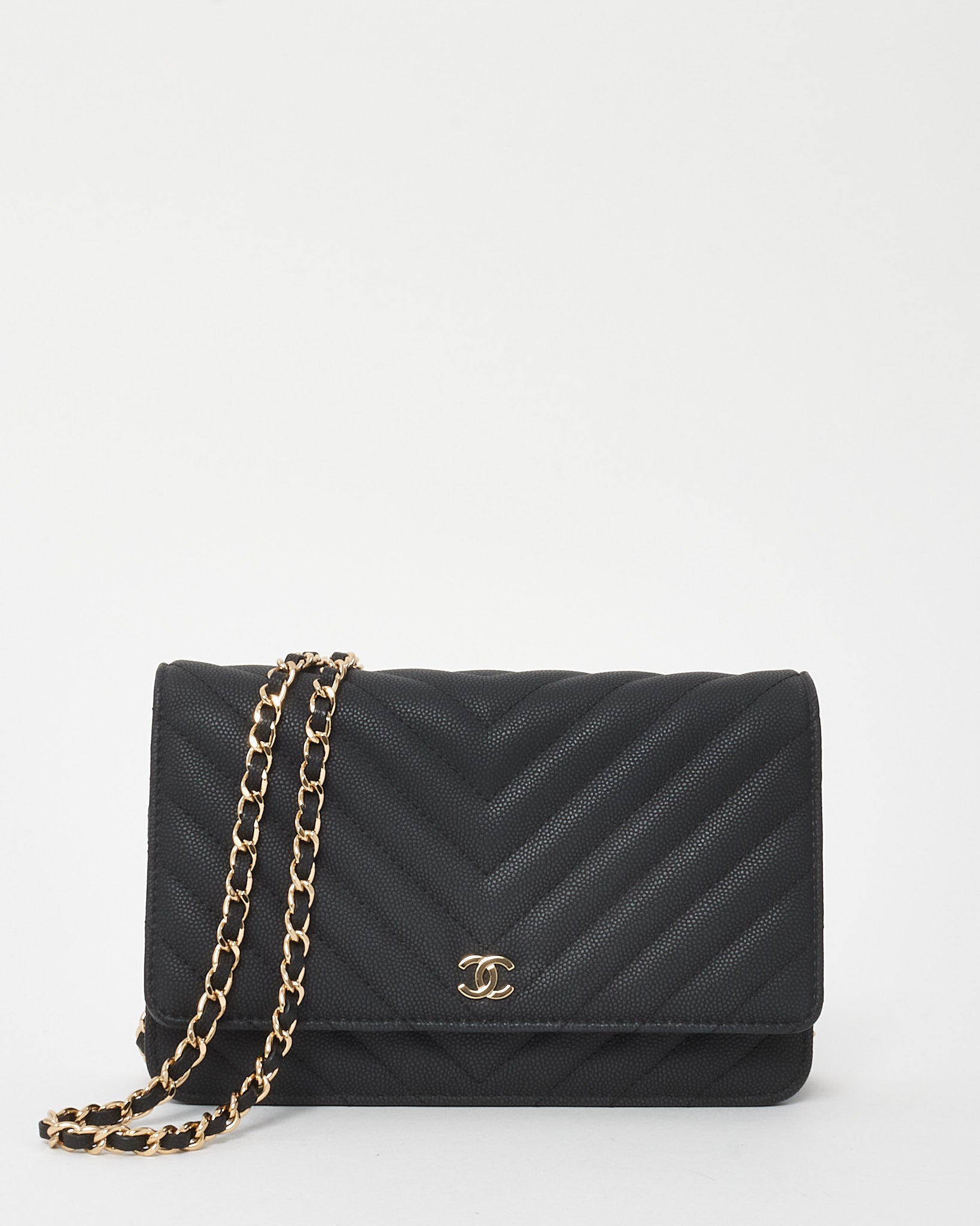 Black Chevron Caviar Leather WOC Wallet on Chain Crossbody Bag GHW