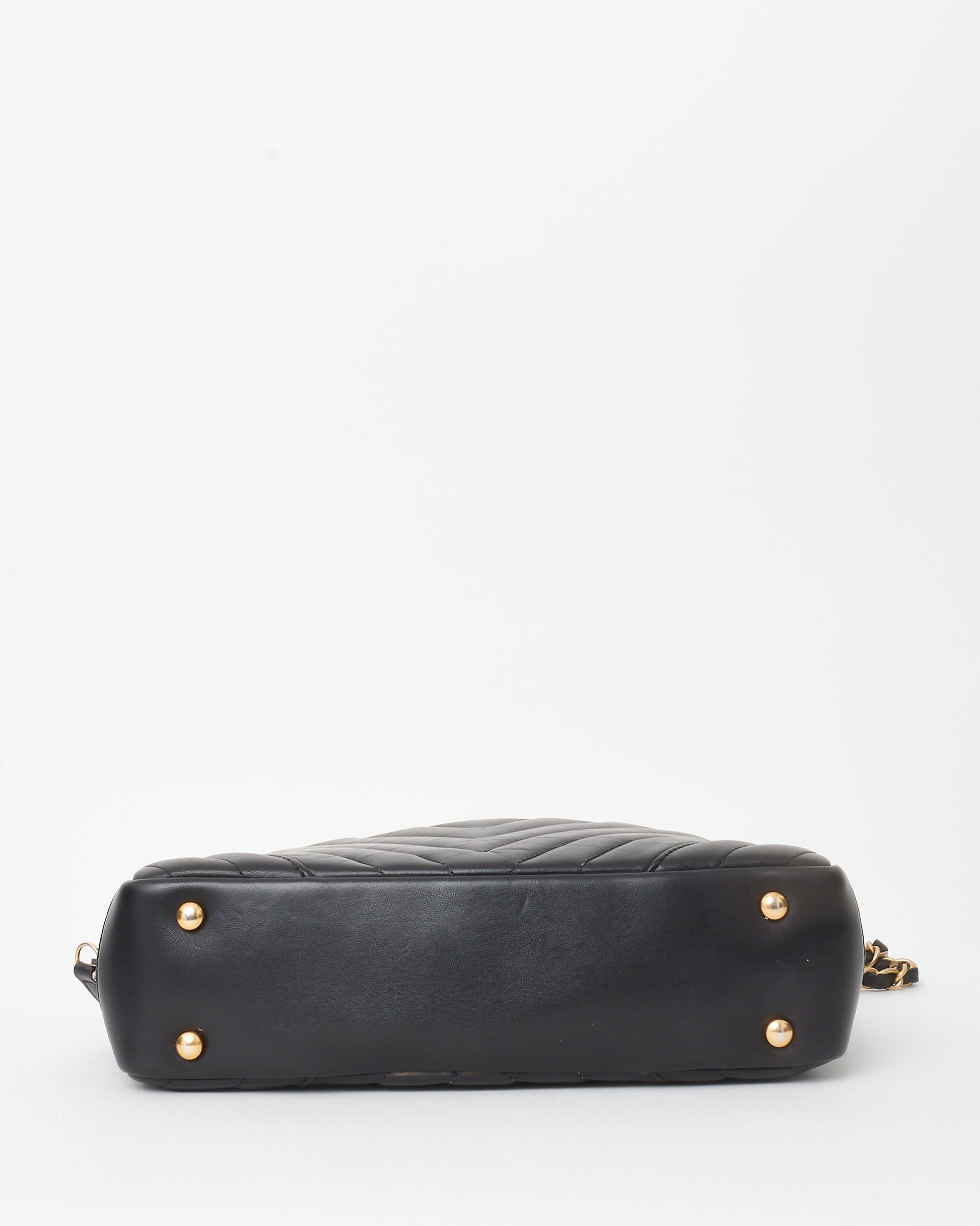 Black Chevron Quilted Calfskin Leather Camera Shoulder Bag