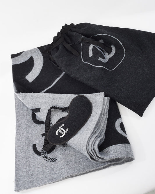 Explore Chanel's exquisite collection of accessories, featuring this certified pre-owned Black & Grey Logo Wool Blanket. Embodying timeless elegance and modern sustainability, each piece, including favorites like this, is authenticated by Retyche. Discover sustainable luxury — shop our current treasures or find inspiration for your next coveted find.