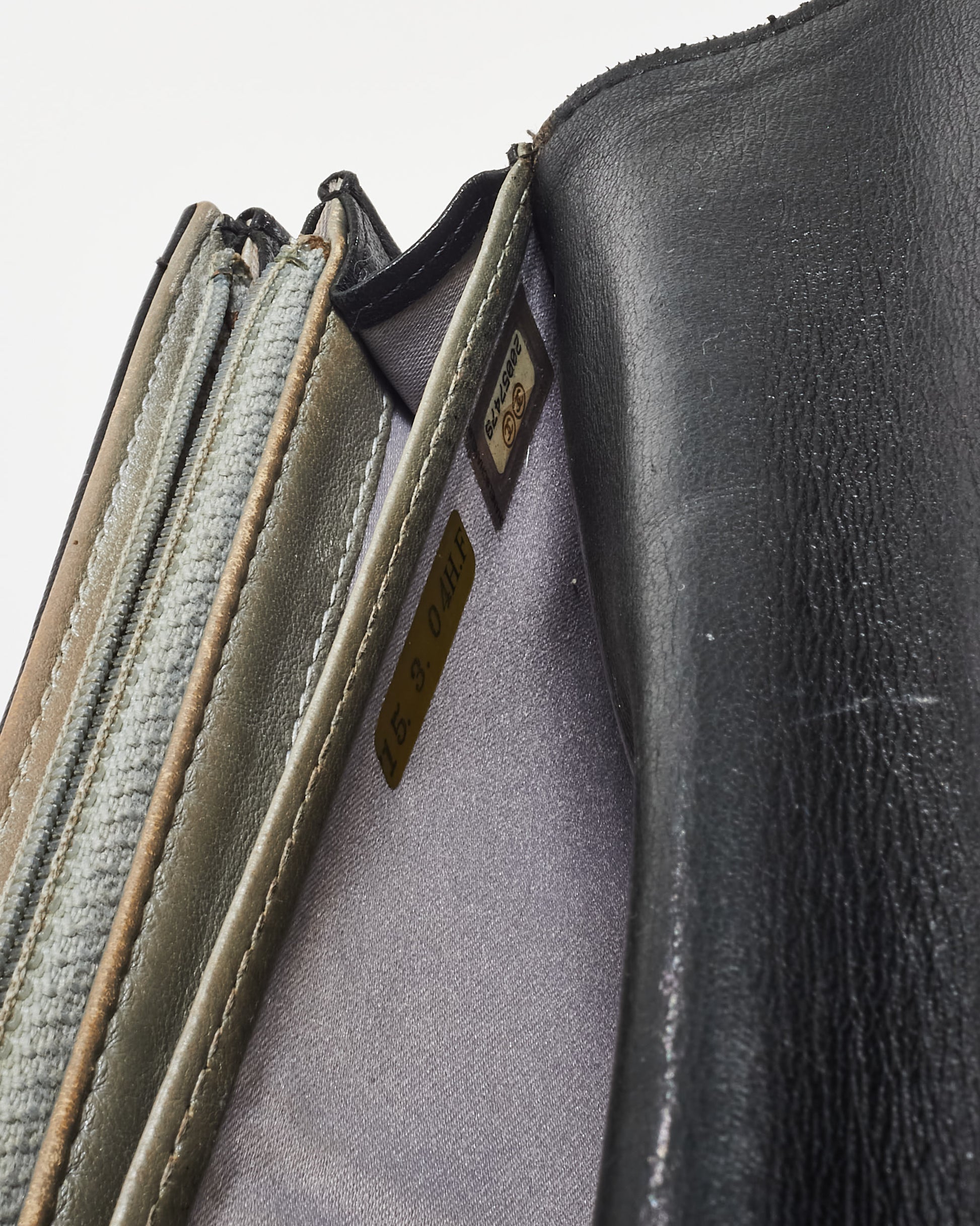 Timelessly elegant, the authentic pre-owned Chanel Black Lambskin Leather Camelia Flap Wallet is a refined accessory that combines luxury with functionality. Crafted from buttery-soft black lambskin leather, this wallet features Chanel’s iconic Camelia floral motif embossed across its exterior, exuding sophistication and feminine charm.