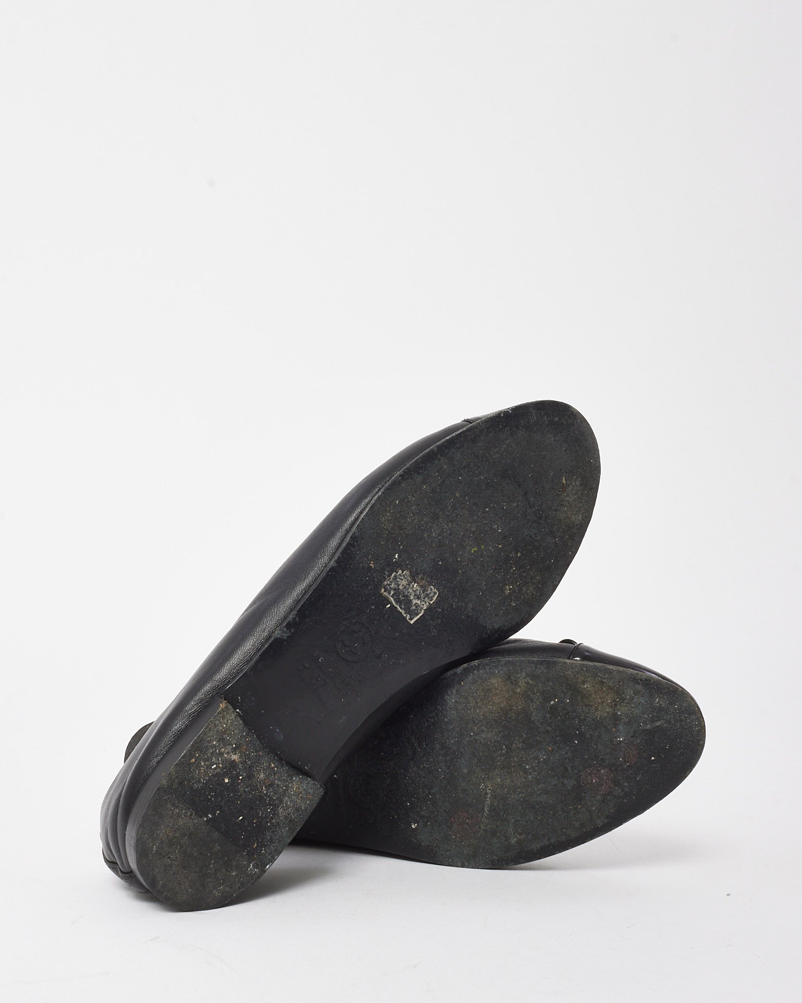 Black Lambskin Leather & Patent Calfskin CC Logo Ballet Flats - 37