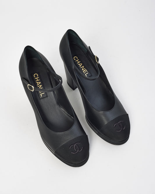 Black Lambskin Leather Platform Block Heel Mary Jane Pumps - 41C