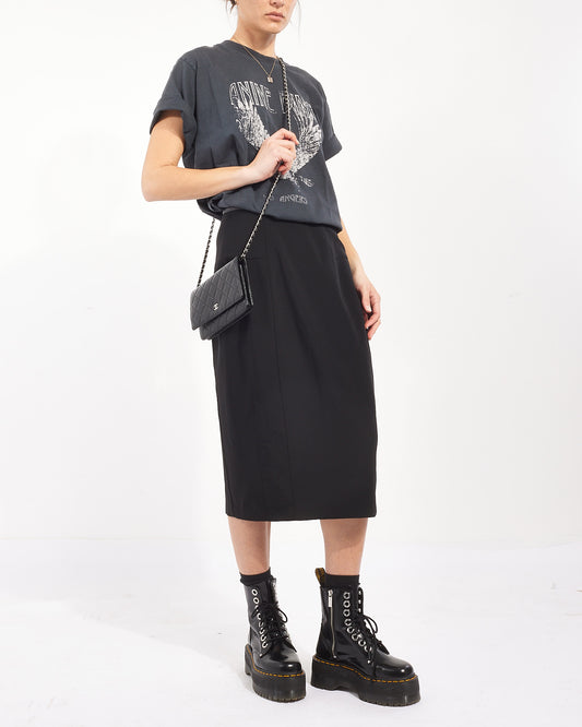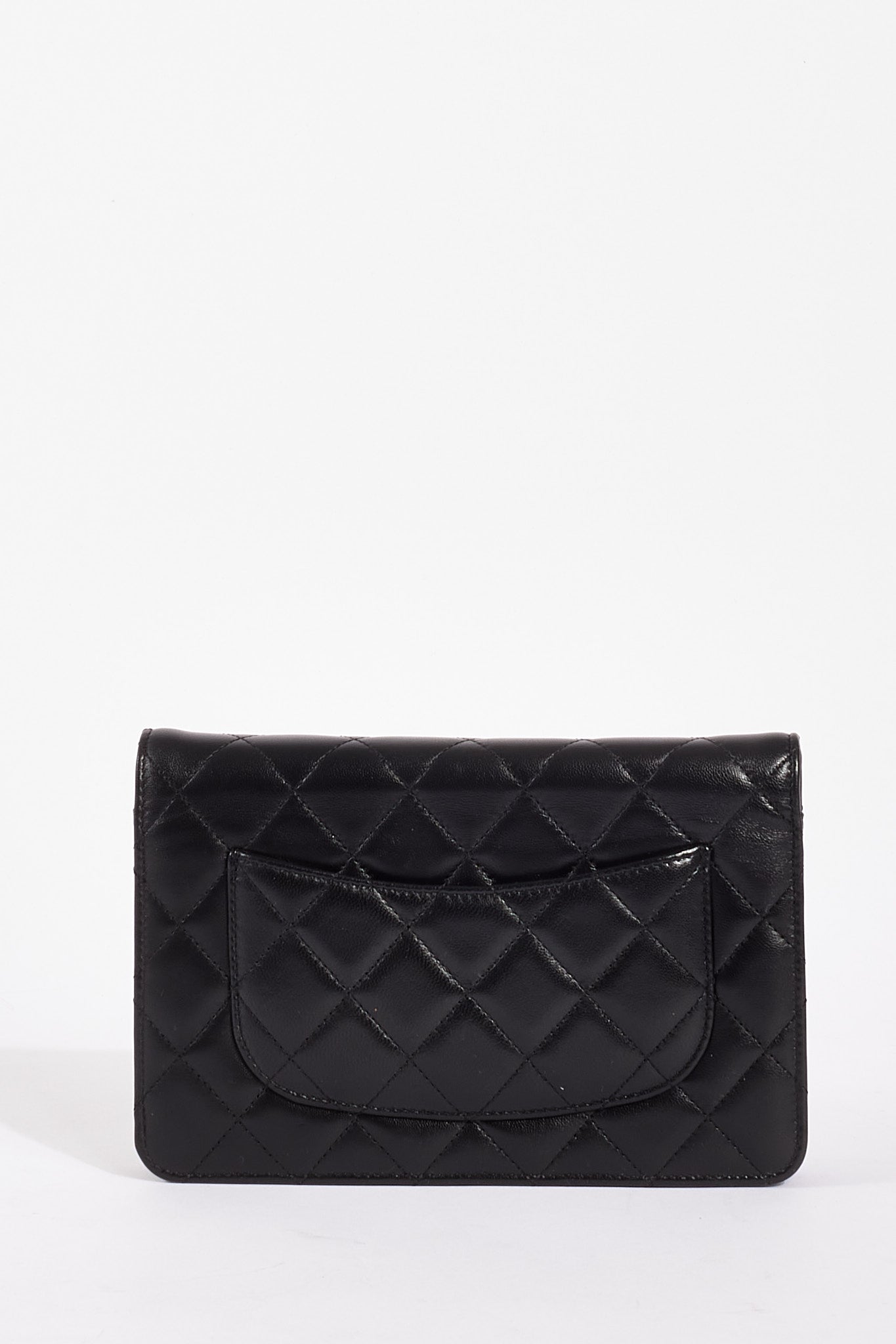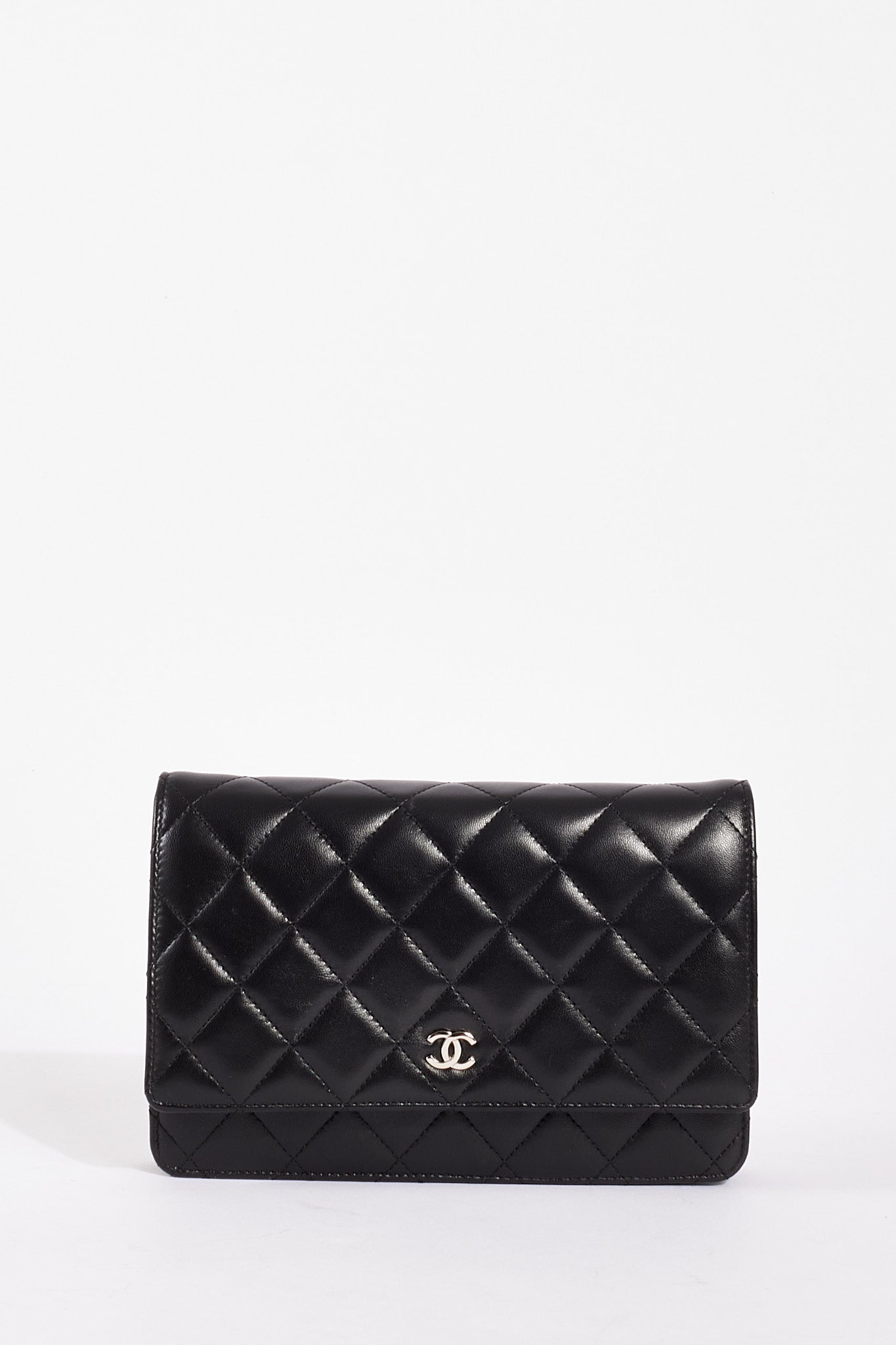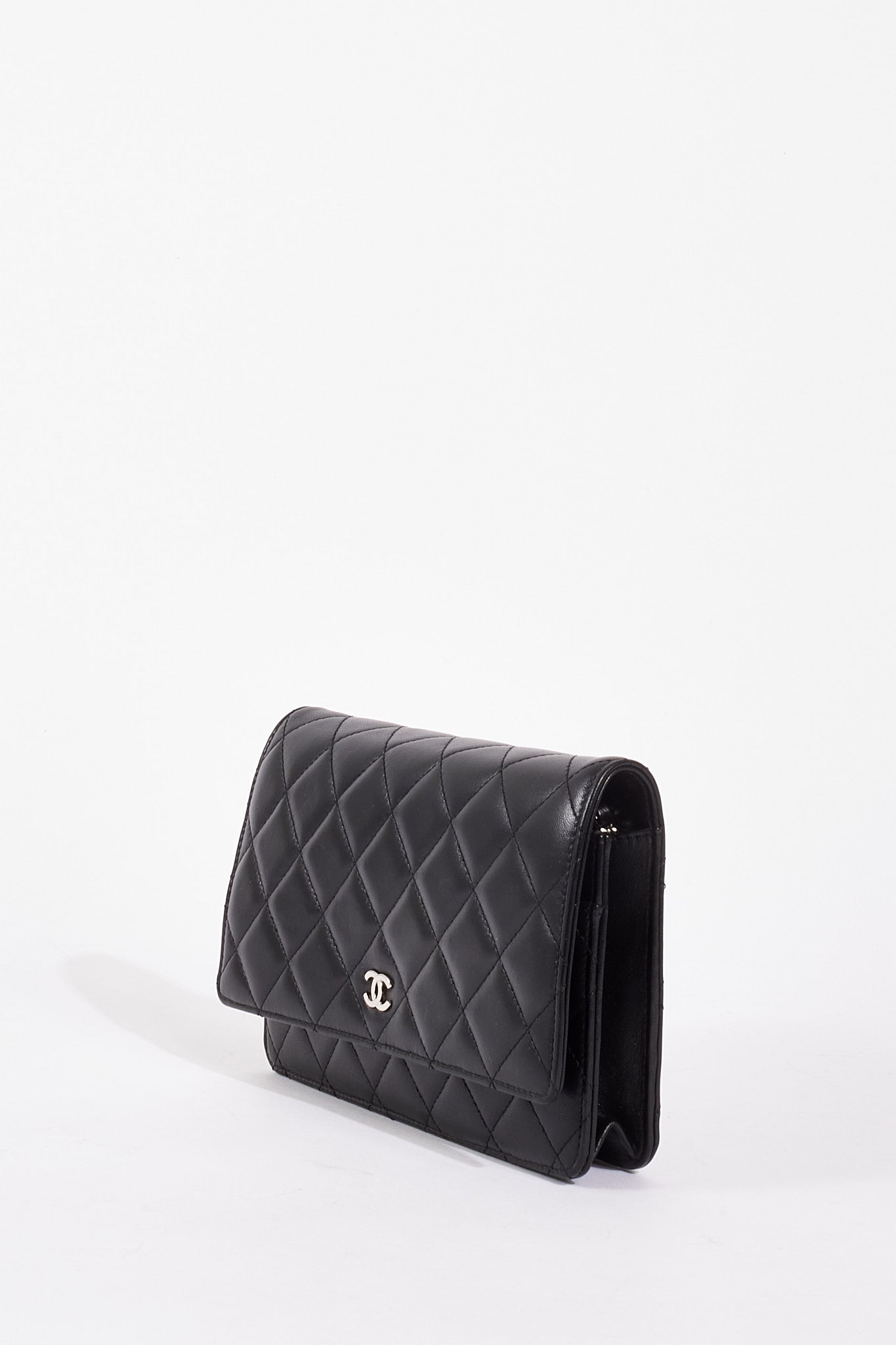 Black Lambskin Leather Wallet on Chain with Silver Hardware