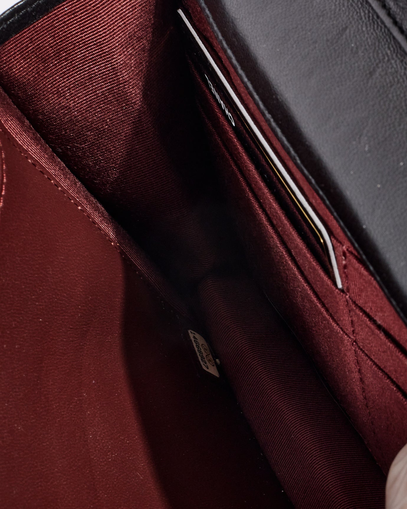 Black Lambskin Leather Wallet on Chain with Silver Hardware