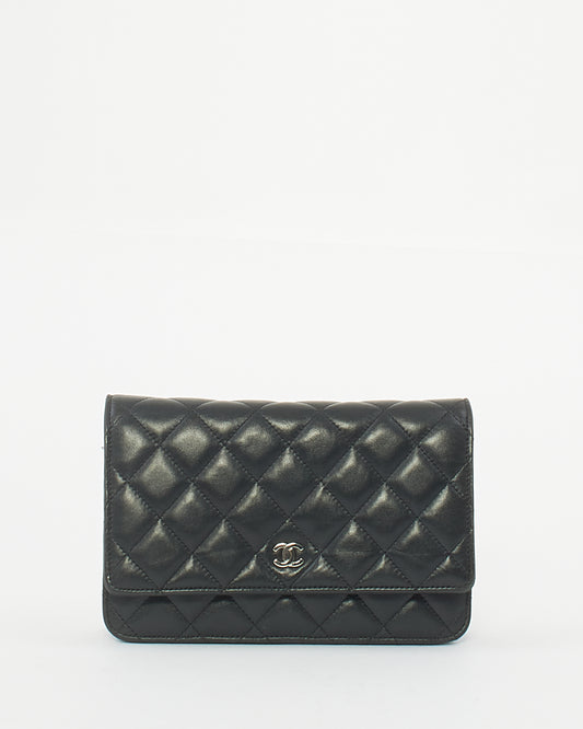 Black Lambskin Leather with Silver Hardware Wallet On Chain