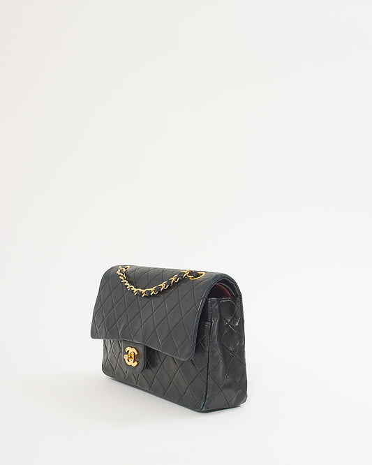 Black Lambskin Vintage 24K Gold Plated Medium Classic Double Flap Bag