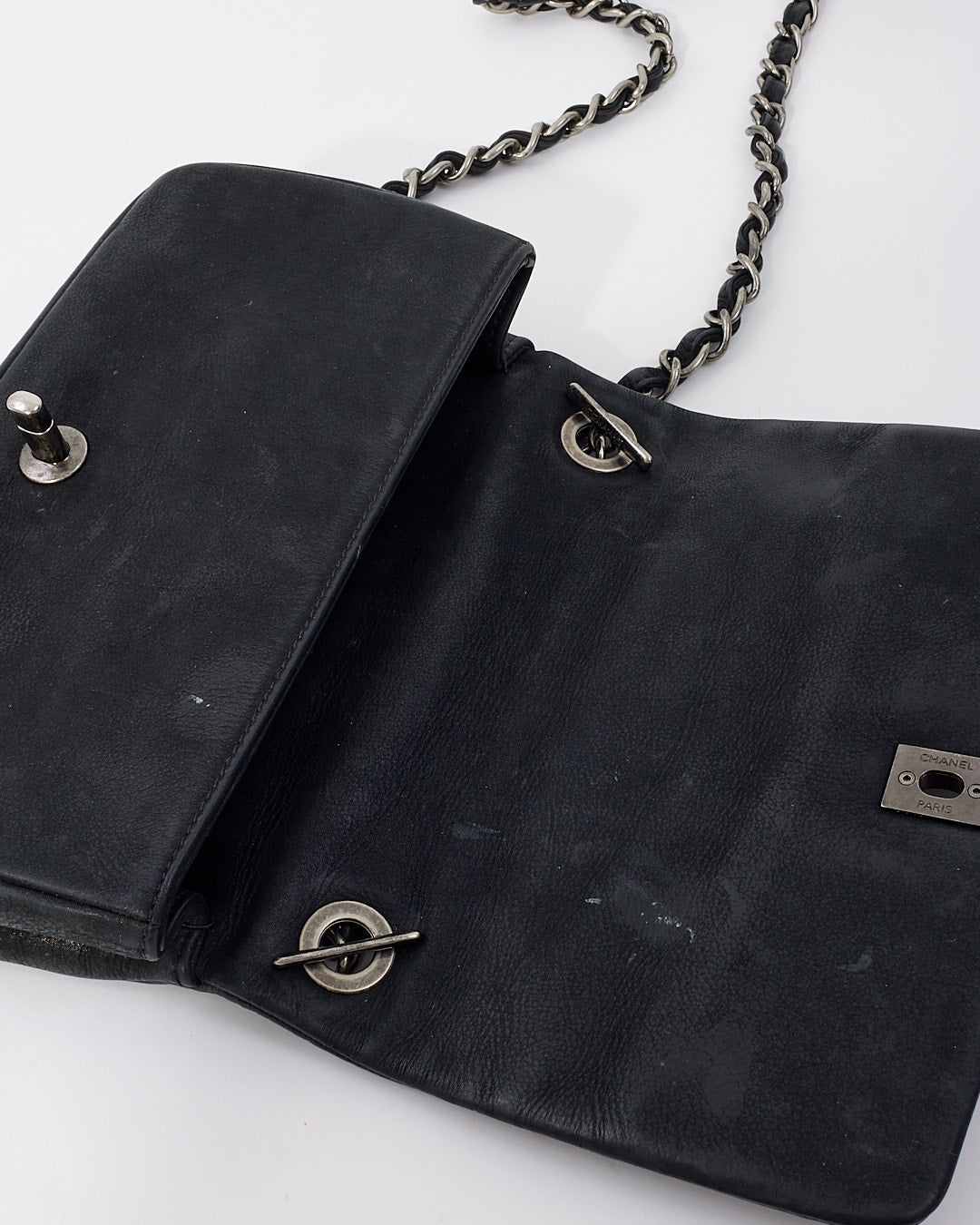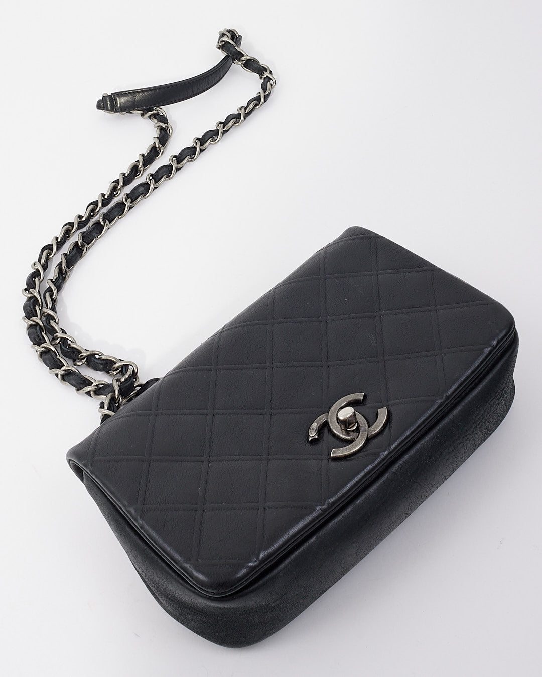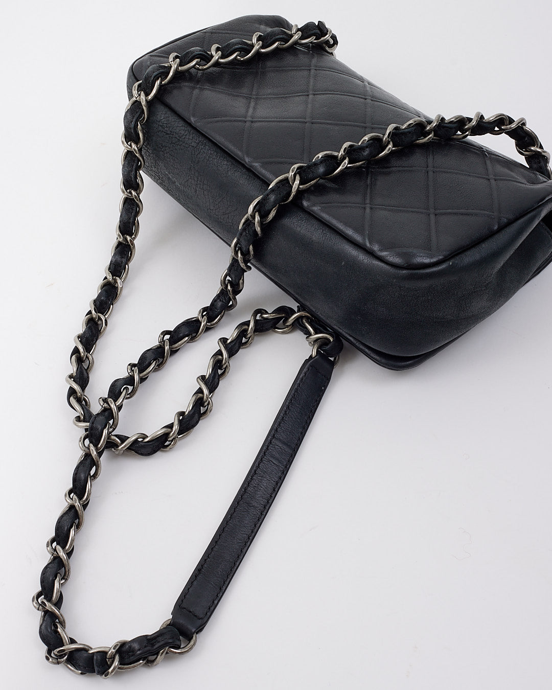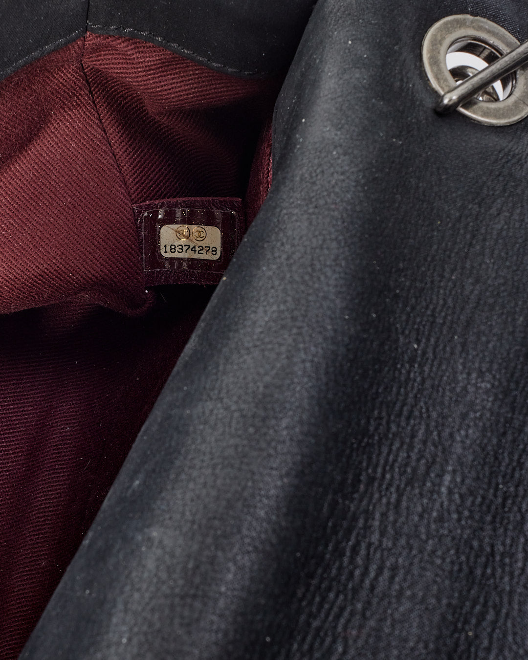 Black Leather Crossbody Messenger Bag with Gunmetal Hardware