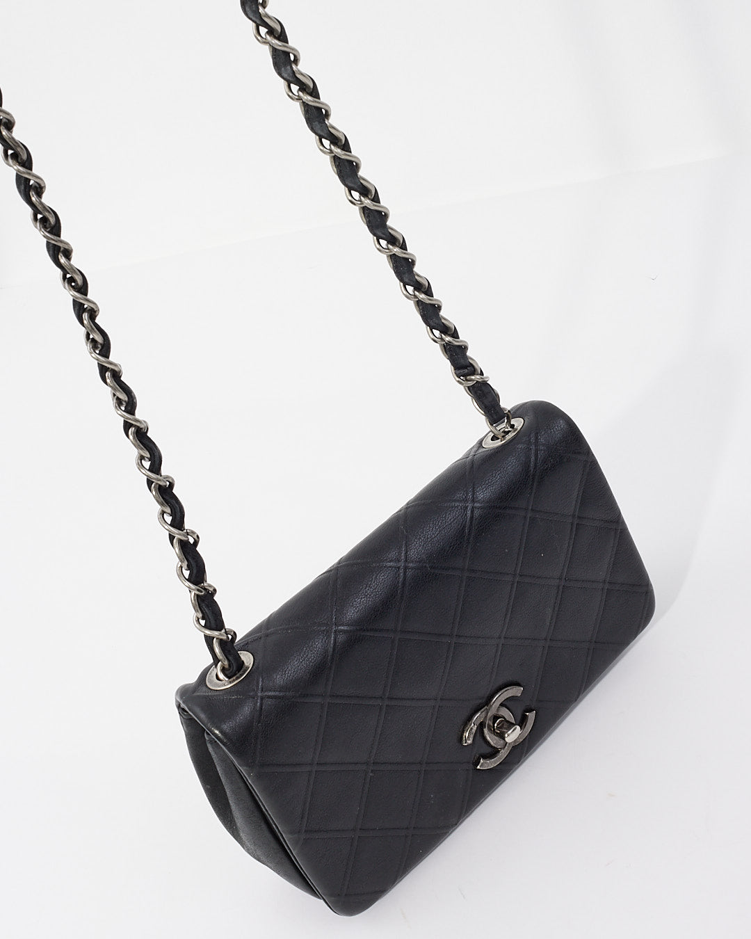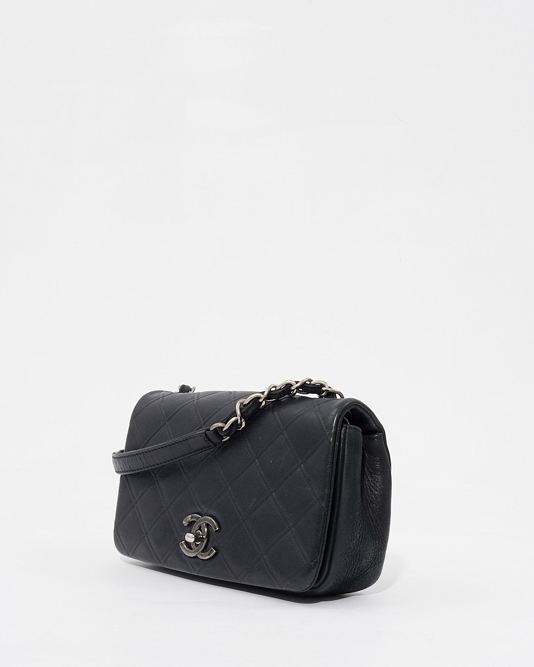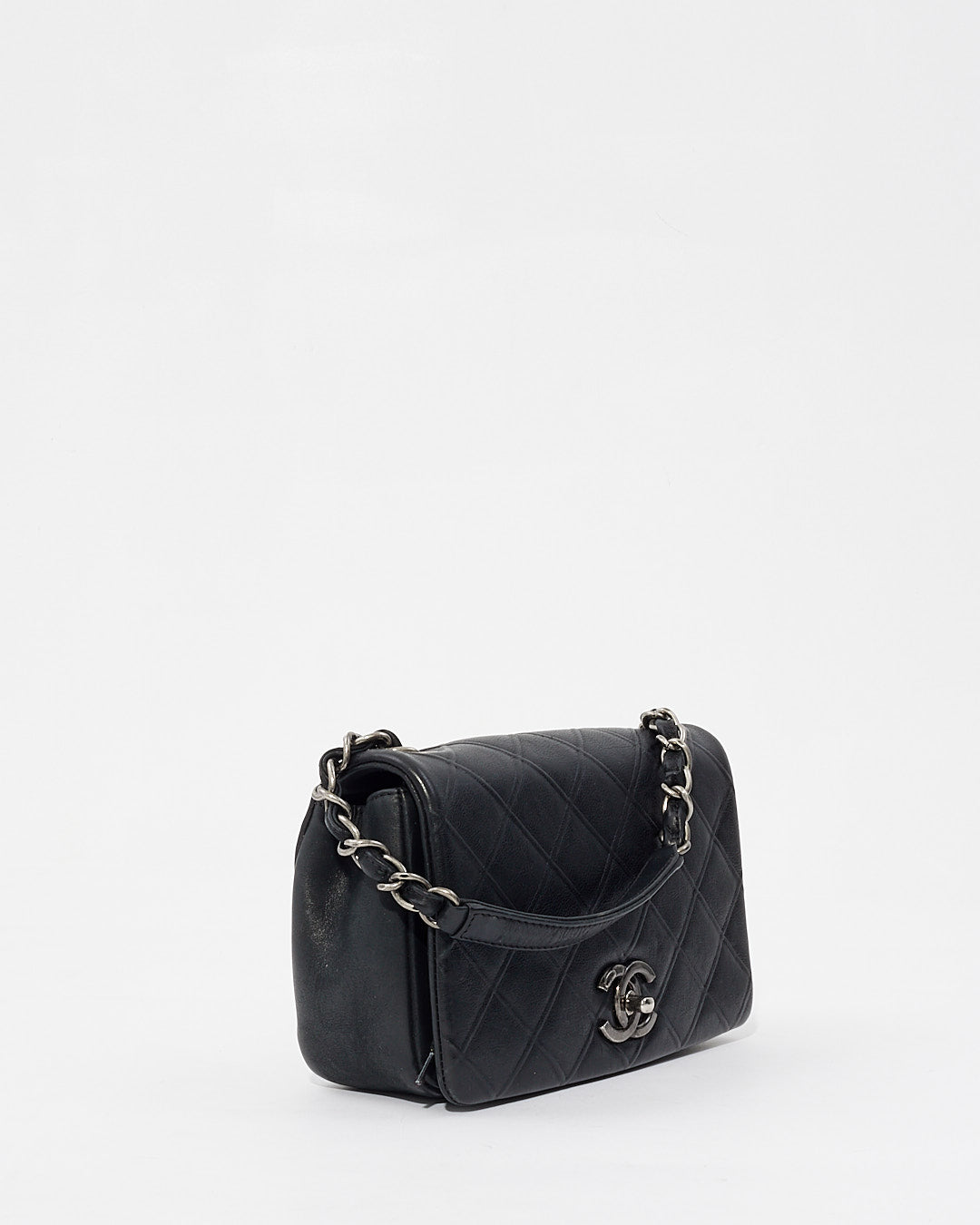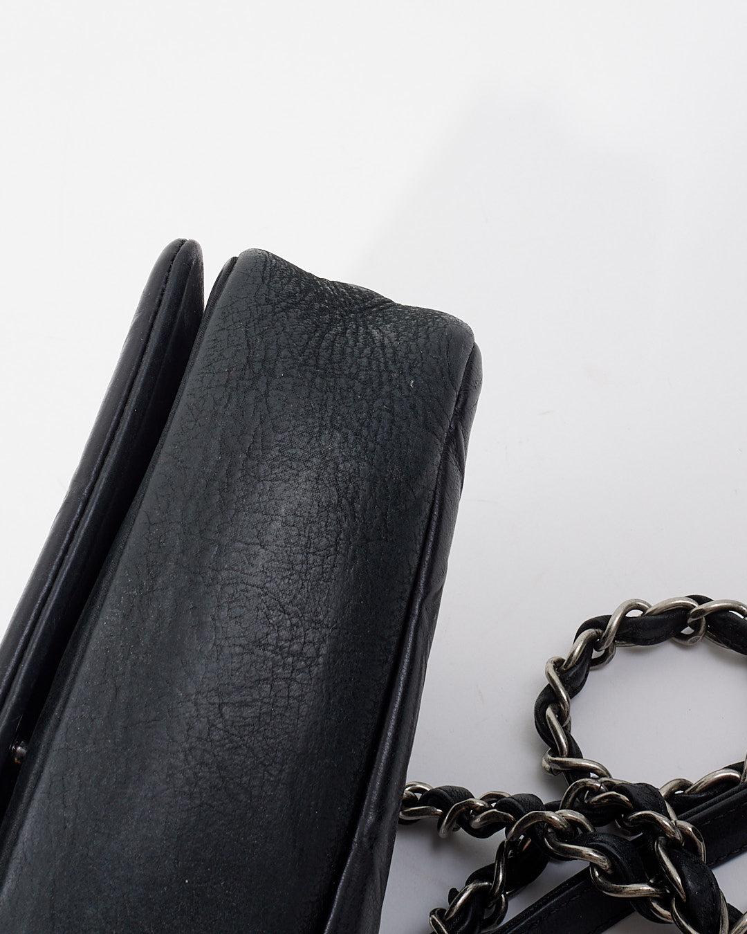 Black Leather Crossbody Messenger Bag with Gunmetal Hardware