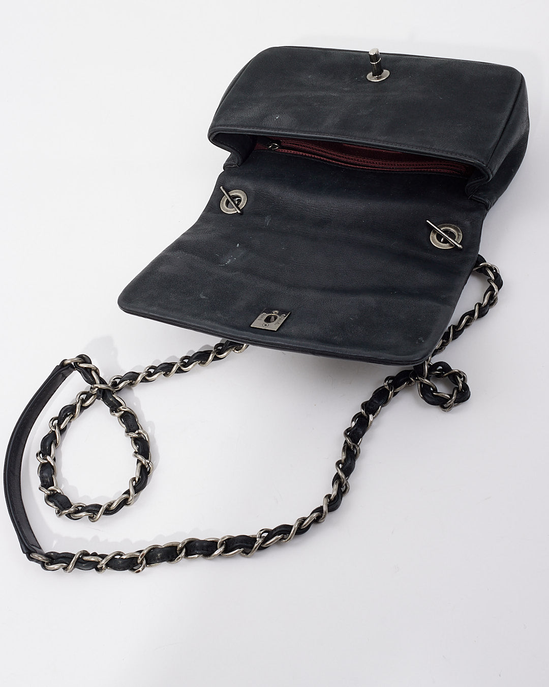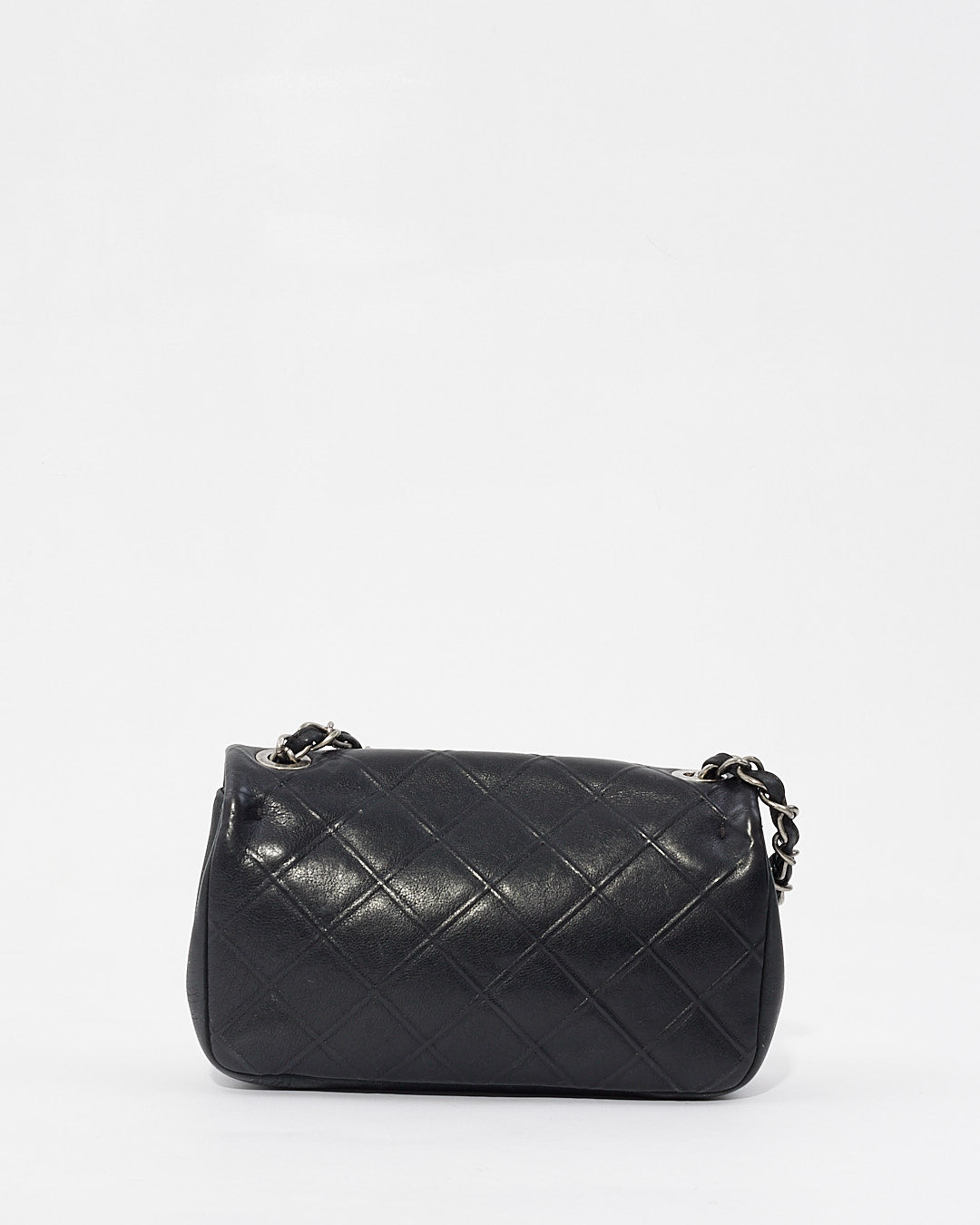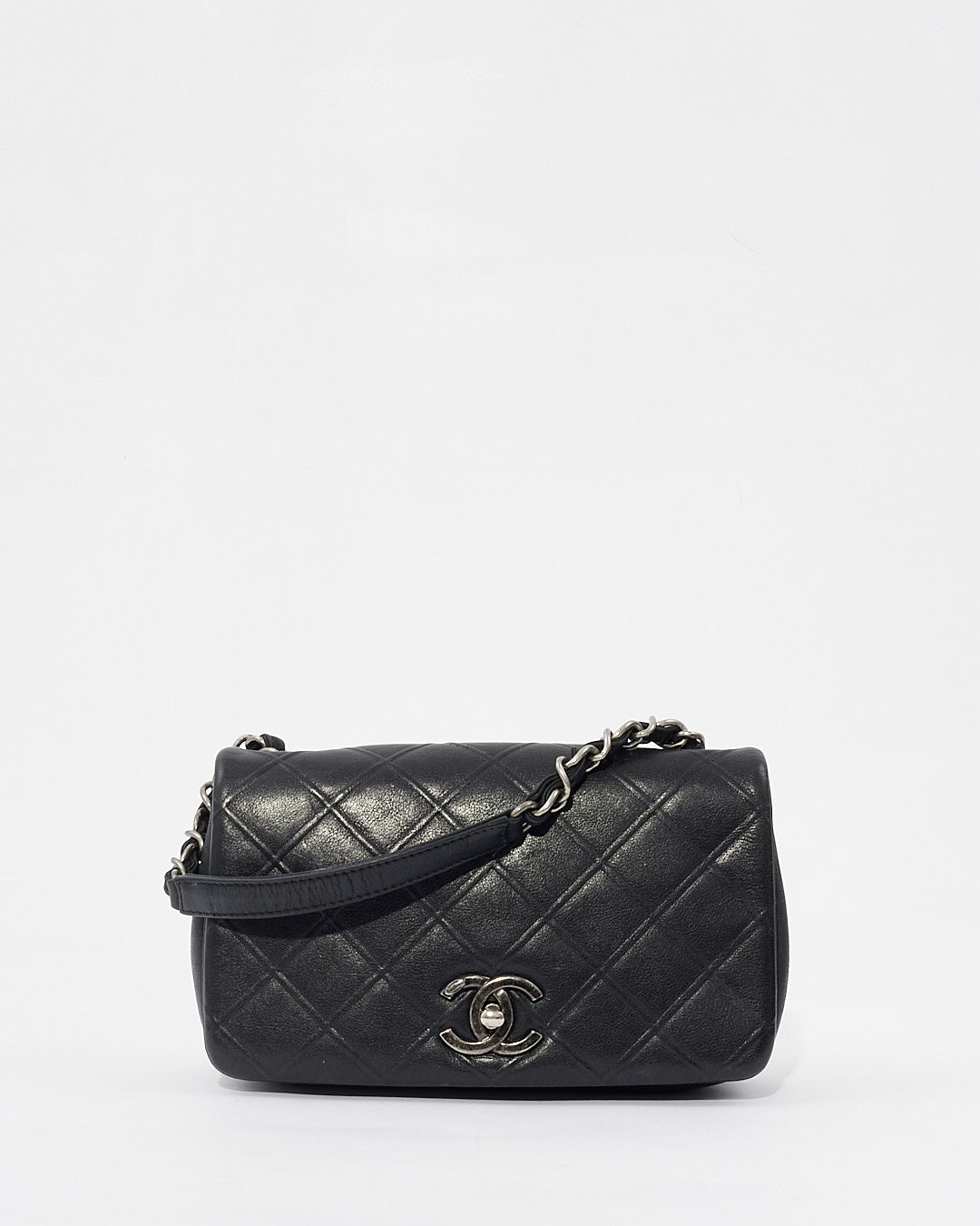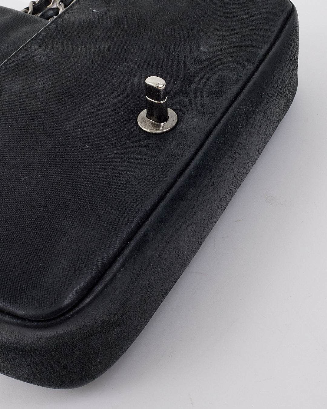 Black Leather Crossbody Messenger Bag with Gunmetal Hardware