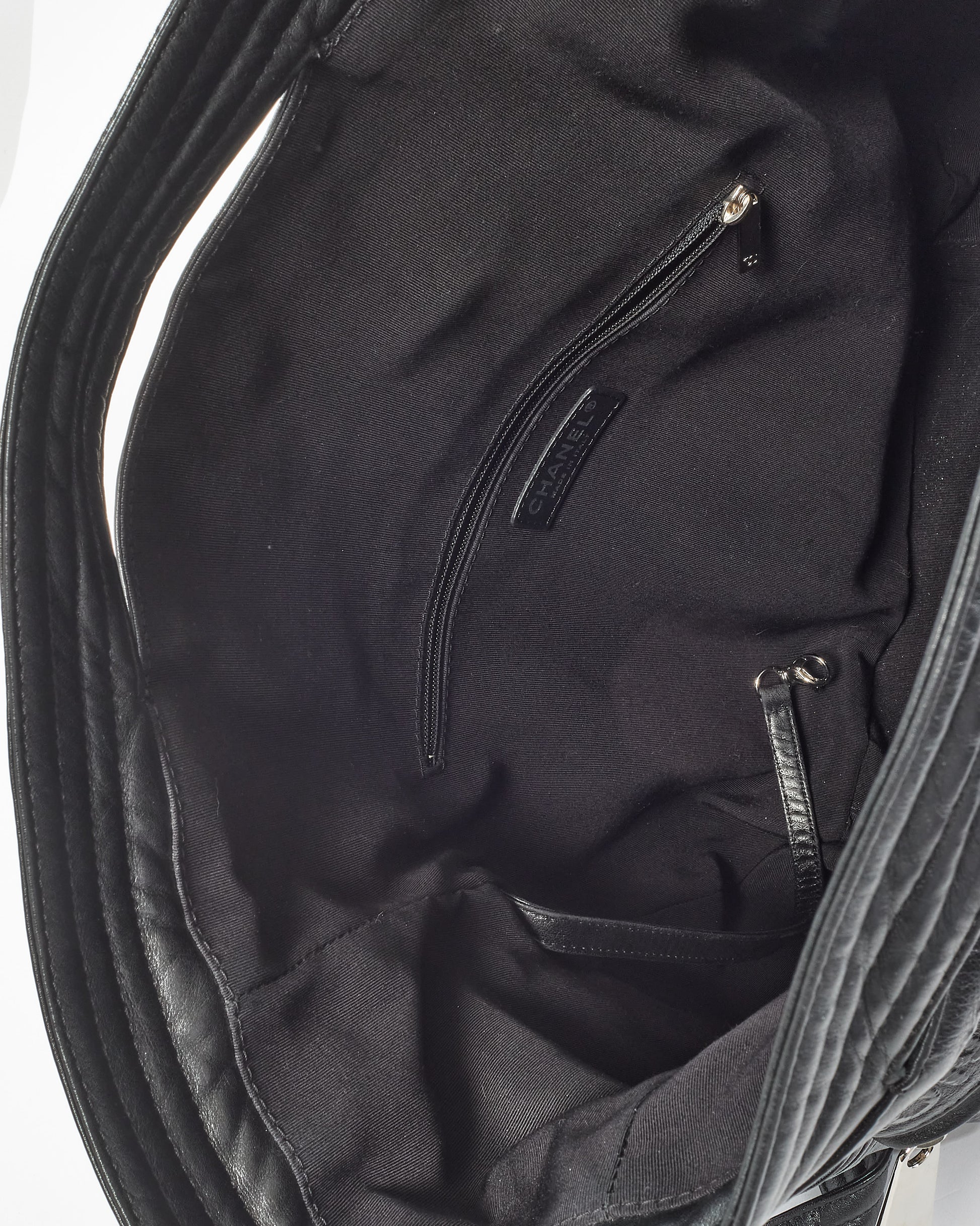Black Leather Embossed 31 Rue Cambon Large Crossbody Bag