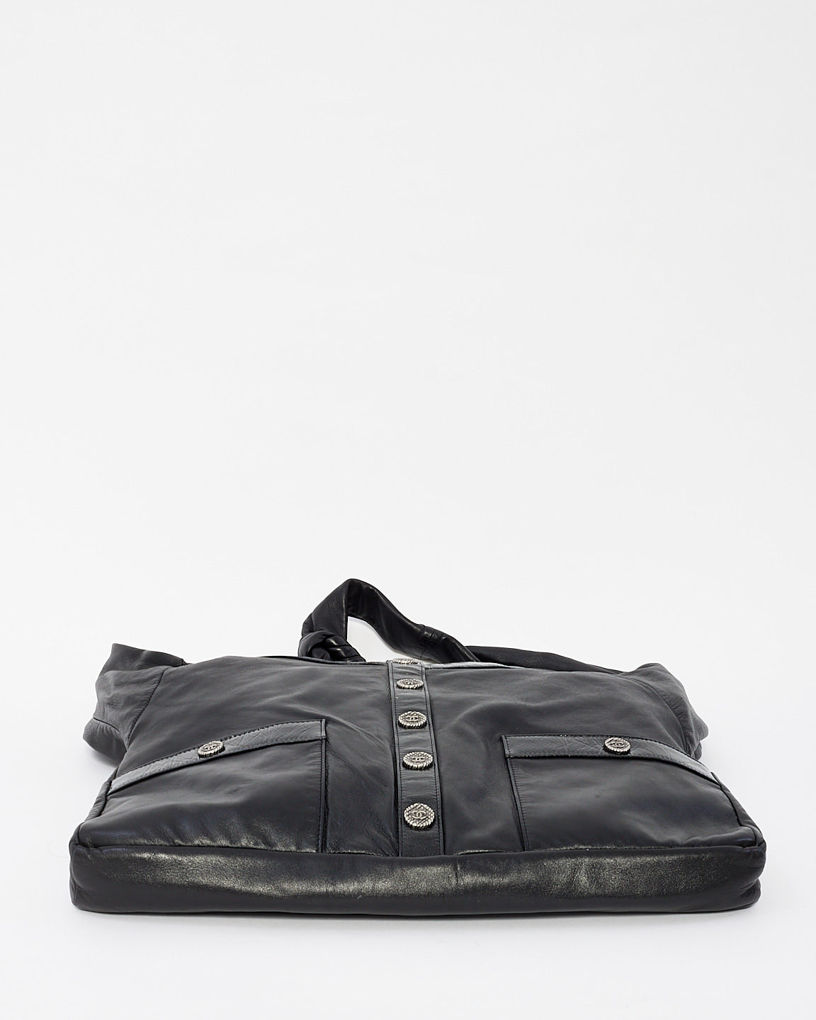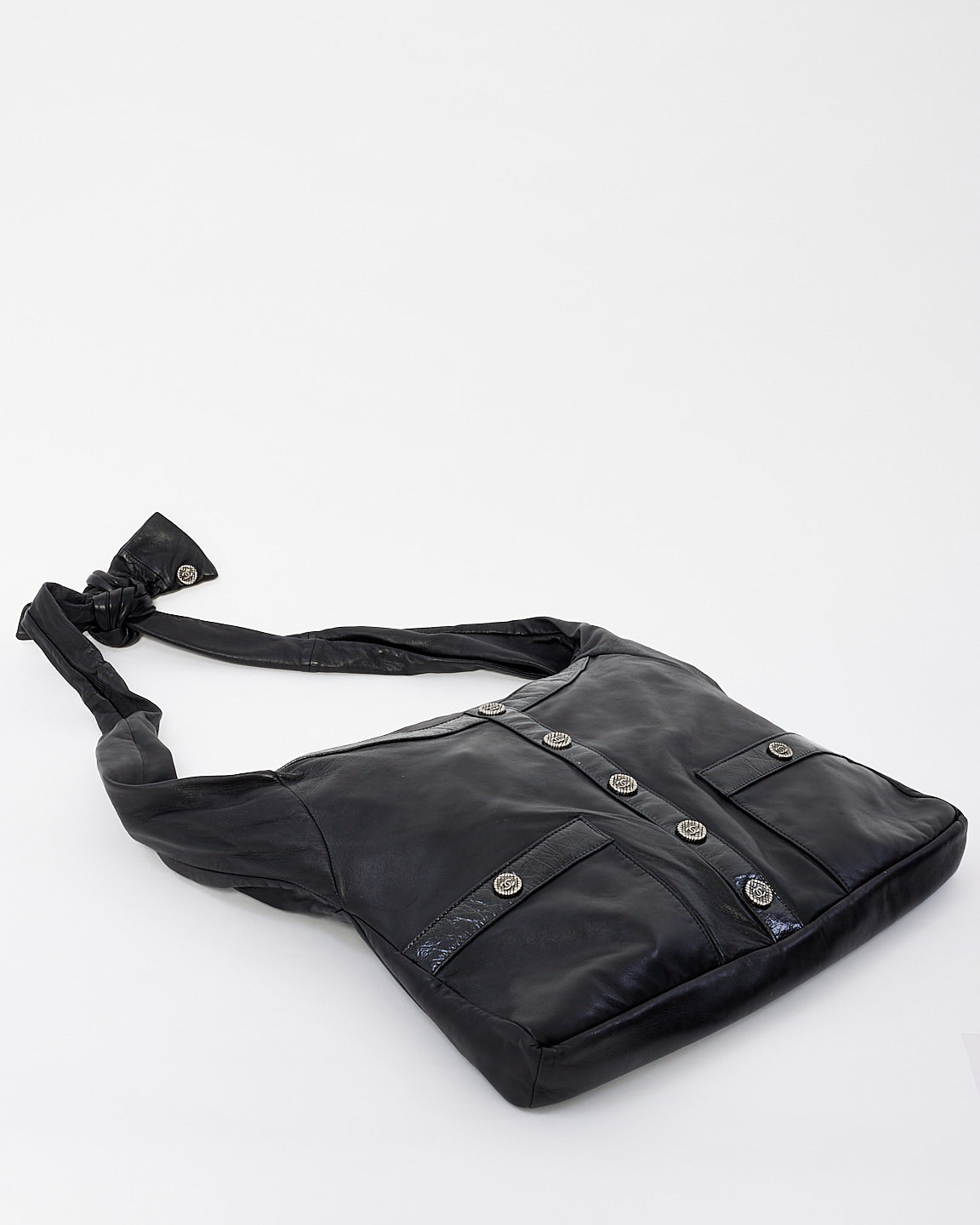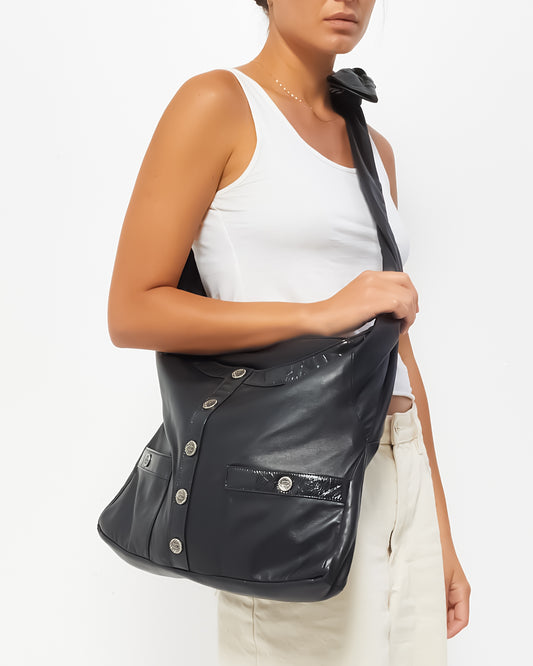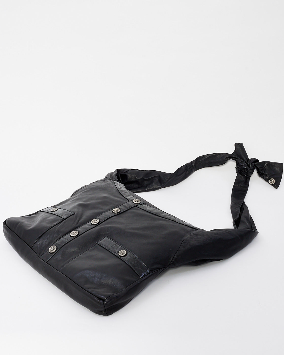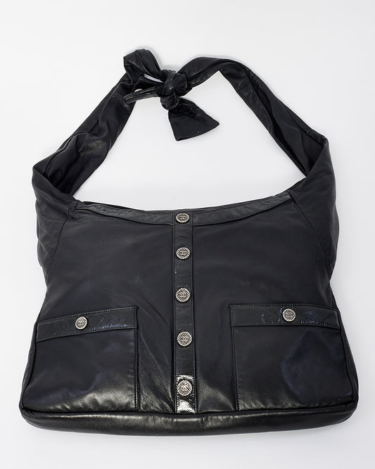 Discover the chic and edgy 100% authentic pre-owned 2014-2015 Chanel Black Leather Girl Crossbody Bag, a unique and stylish accessory for the modern woman. Crafted from smooth black leather, this bag features a slim, sleek silhouette designed for hands-free wear. The adjustable crossbody strap and the front flap with a subtle CC logo buttons make it both practical and elegant.