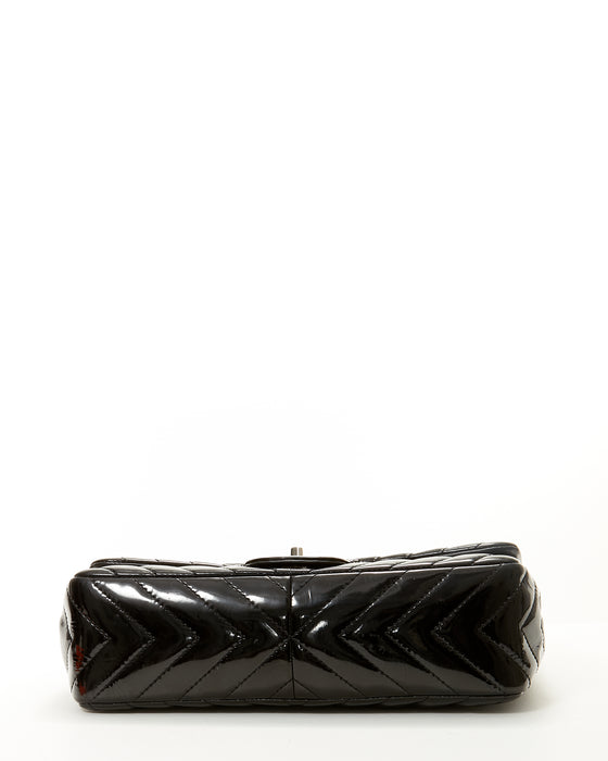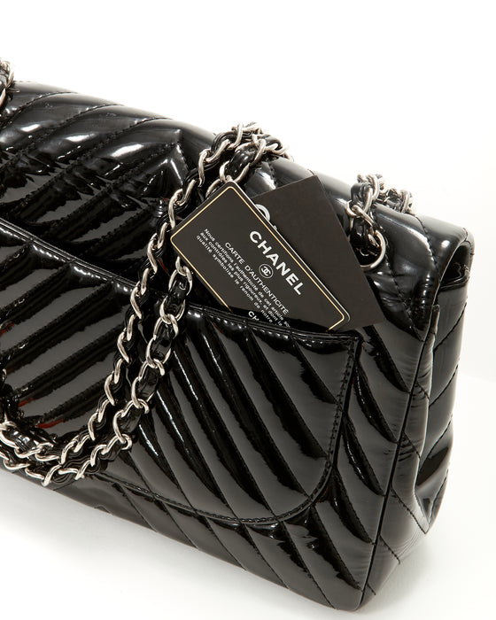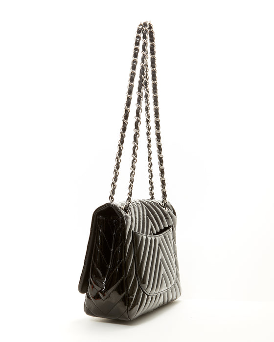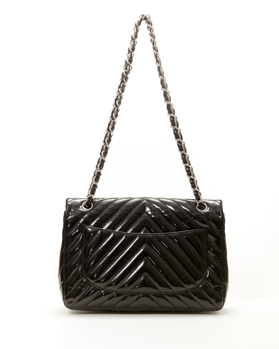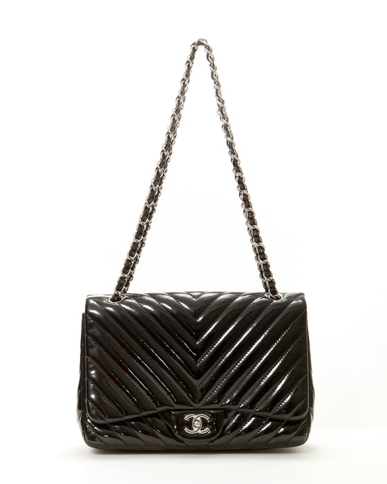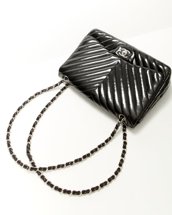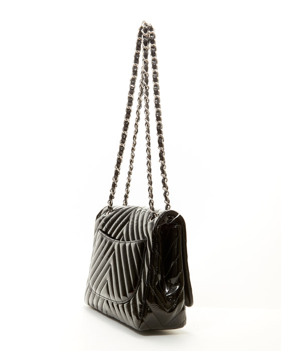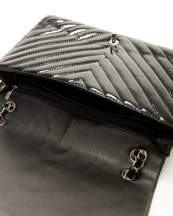 Black Patent Leather Chevron Jumbo Single Flap Bag