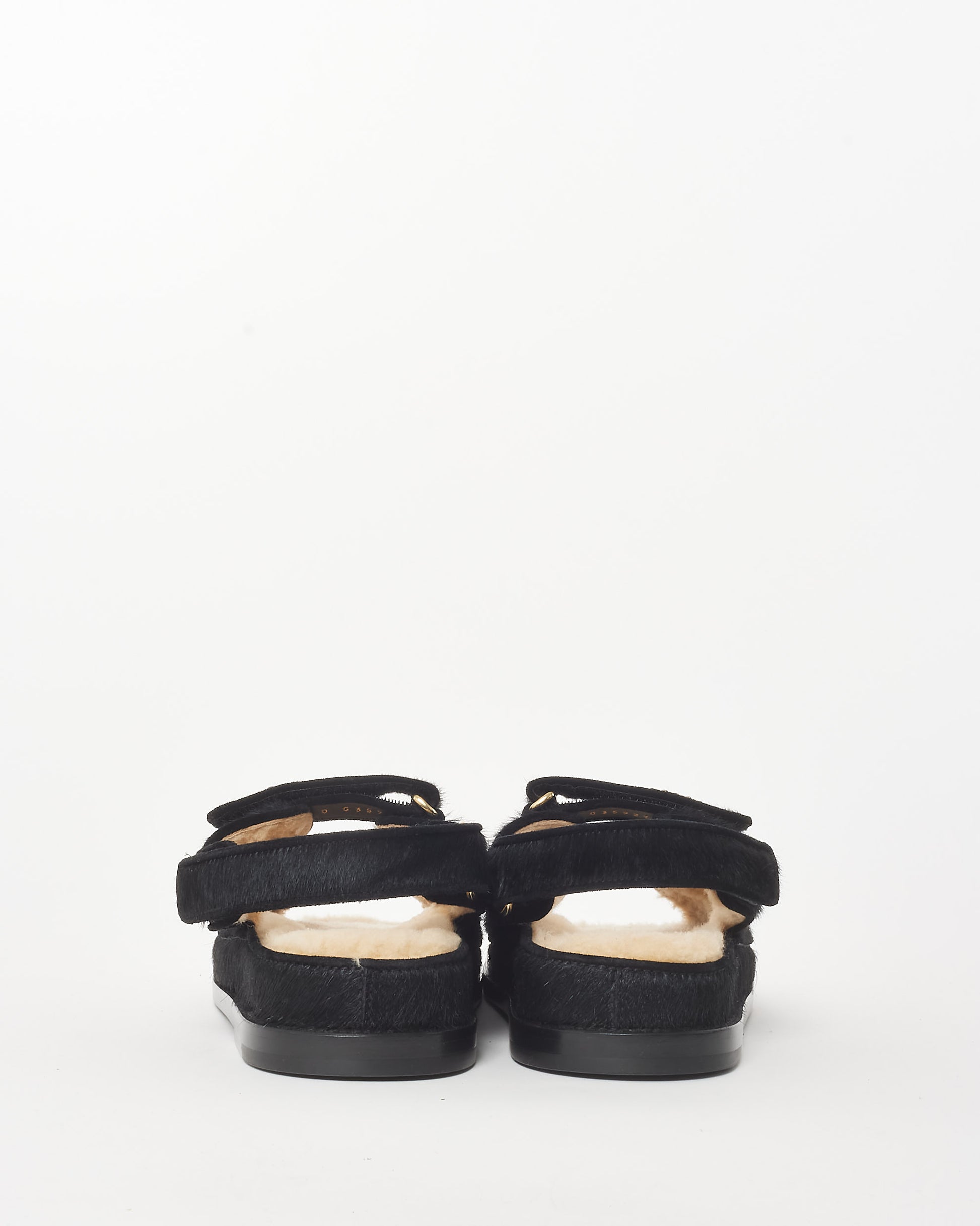 Black Pony Hair & Shearling Logo Dad Sandals - 37