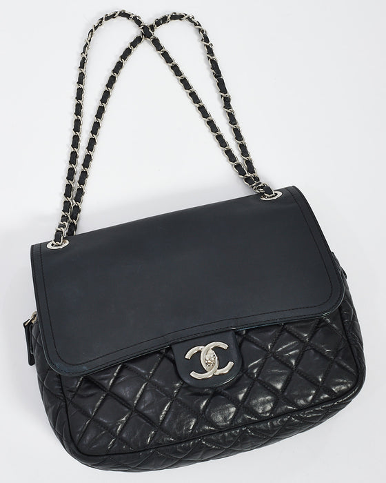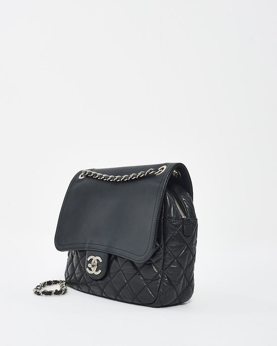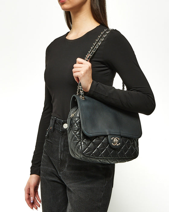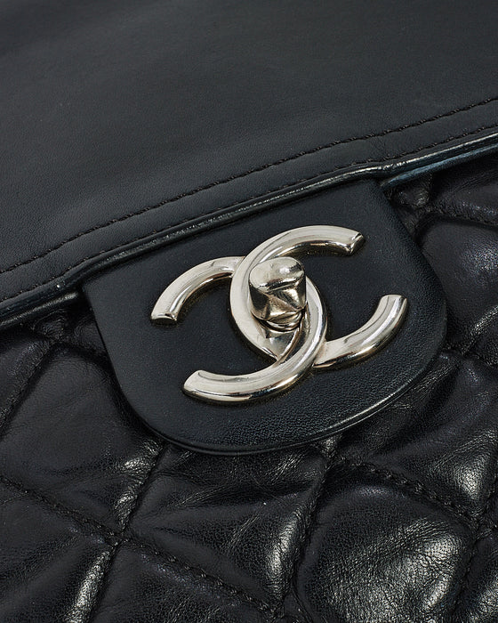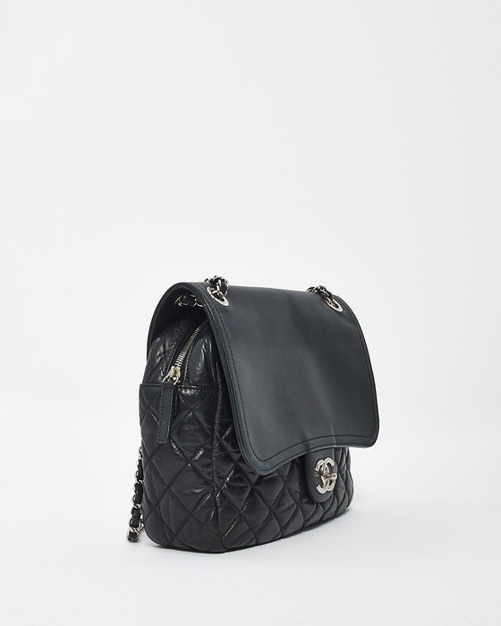 Black Quillted Leather Easy Zip Shoulder Bag with SHW