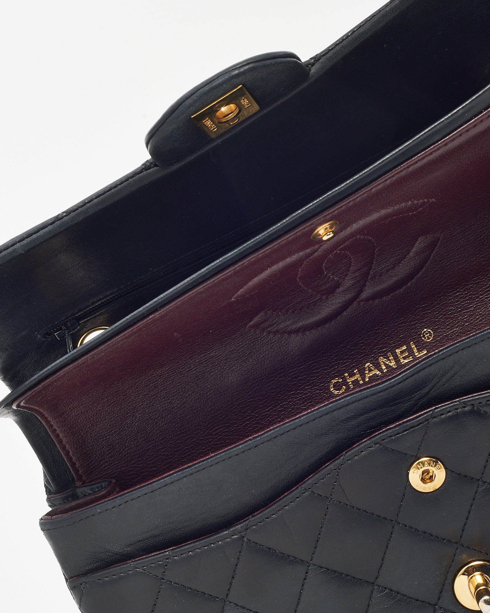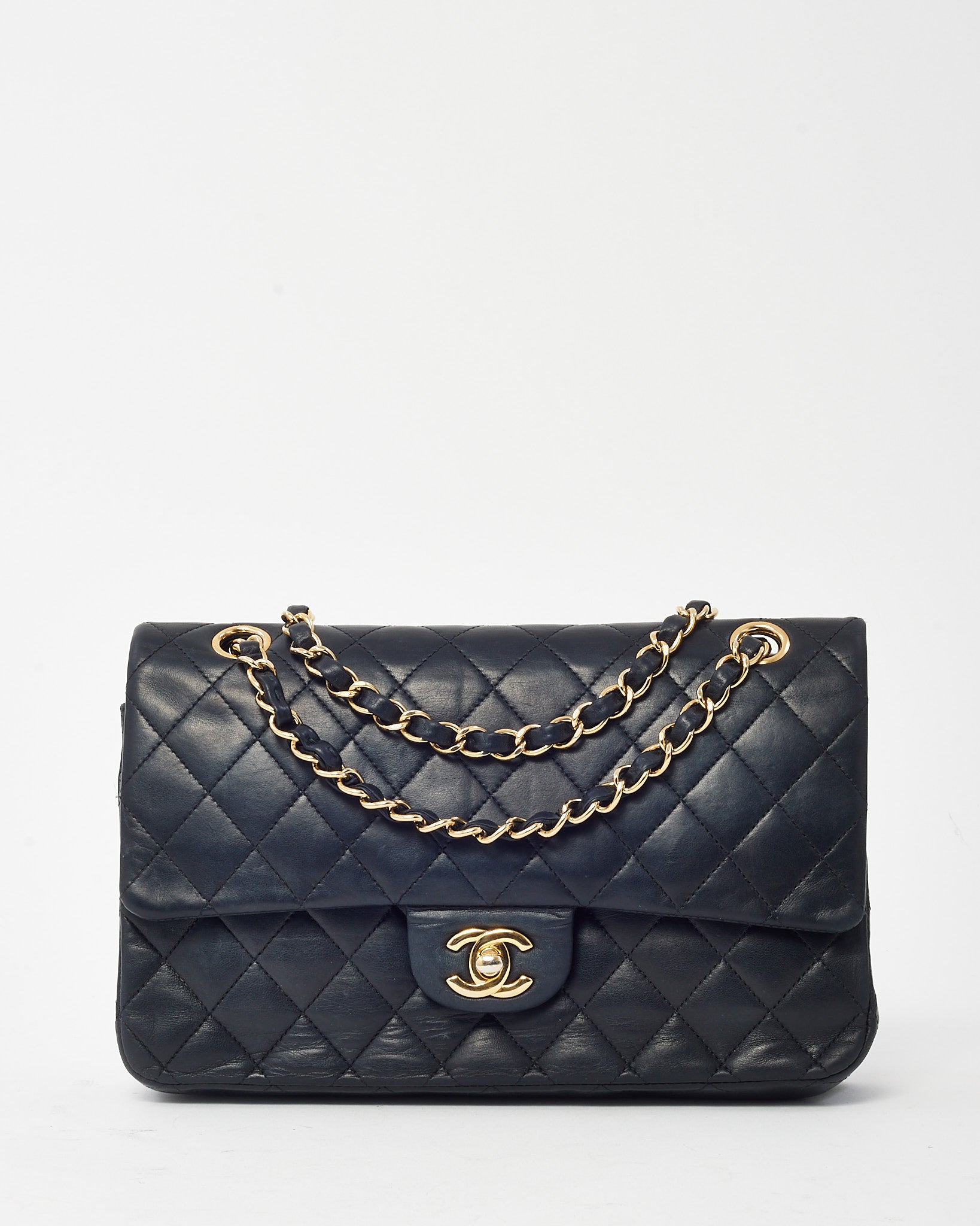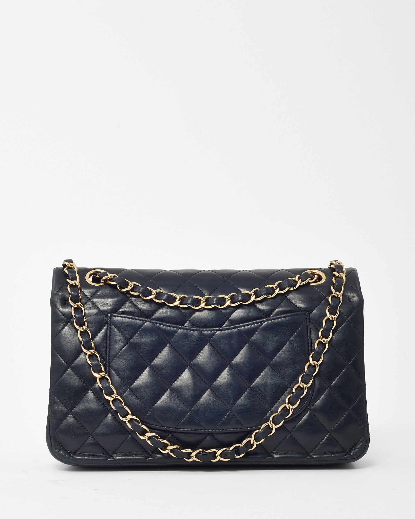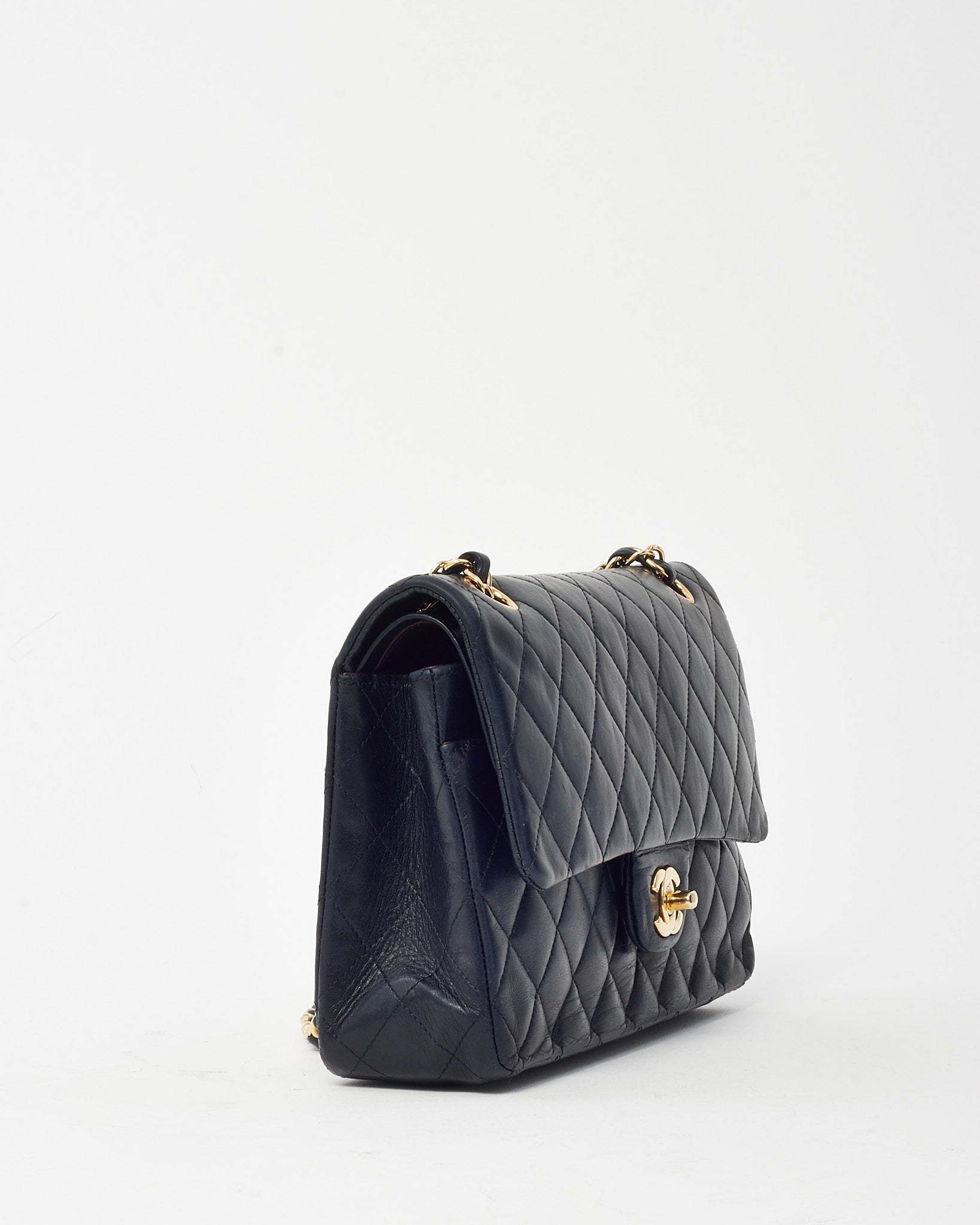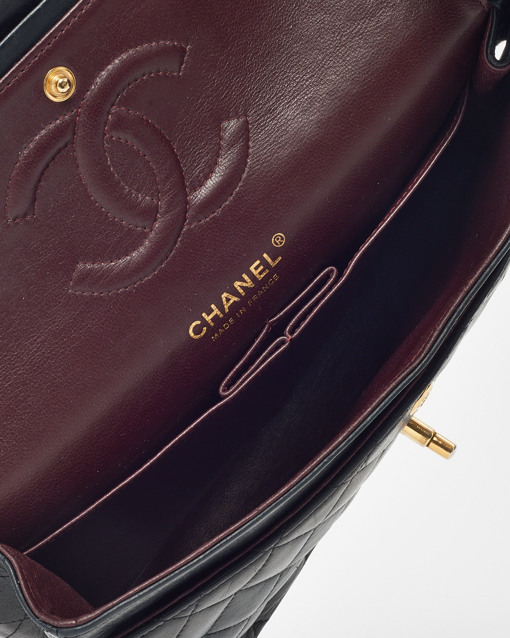 Elevate your wardrobe with this pre-loved authentic Chanel Medium Classic Double Flap Bag, crafted in luxurious black quilted lambskin leather. Timeless and iconic, it features the signature double flap design, gold-tone CC turn-lock closure, and a woven leather chain strap for shoulder or crossbody wear. The structured silhouette and refined interior make it a go-to for both everyday elegance and special occasions. A true collector’s piece, this Chanel classic adds enduring sophistication to any look.