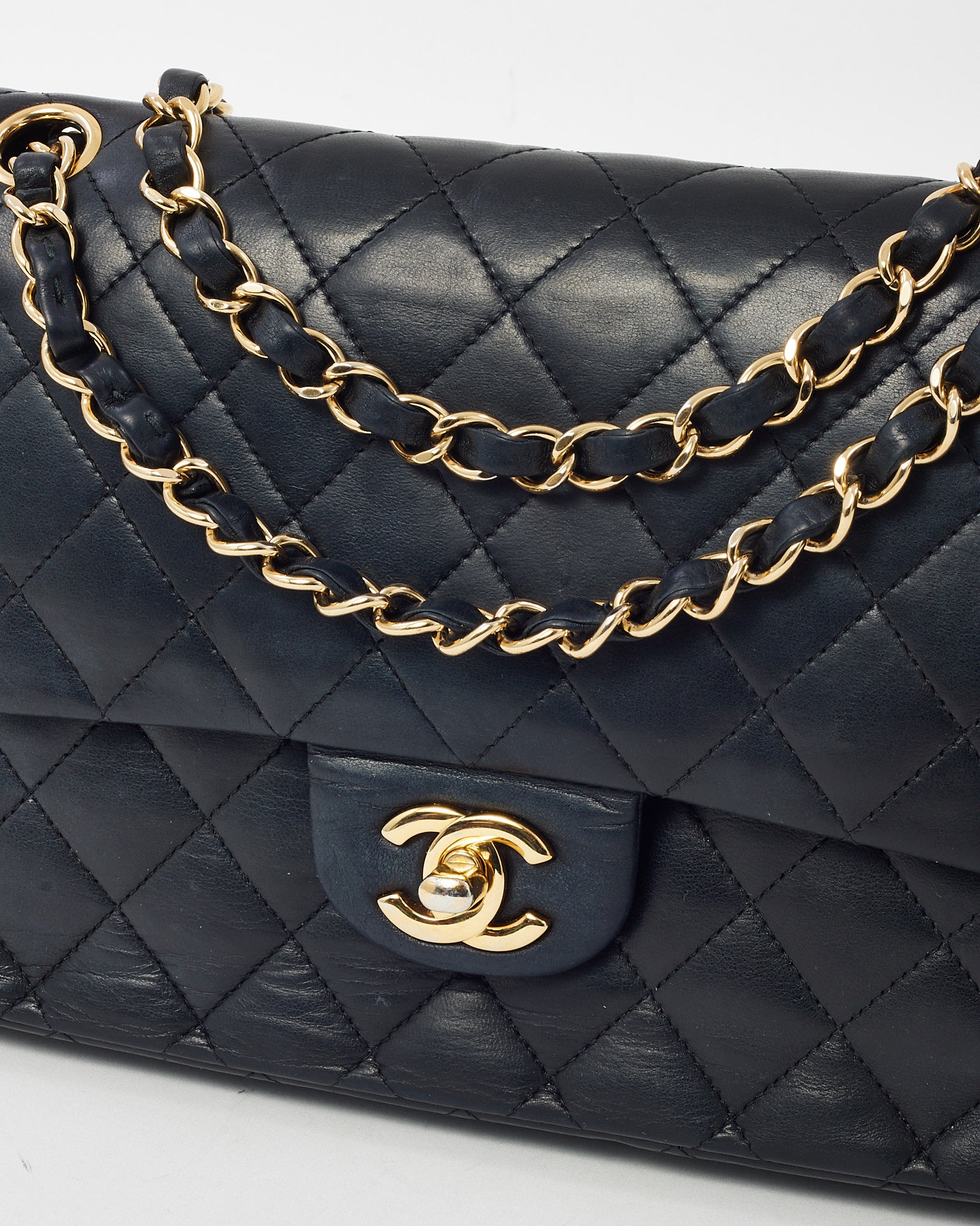 Black Quilted Lambskin Leather Medium Classic Double Flap Bag GHW
