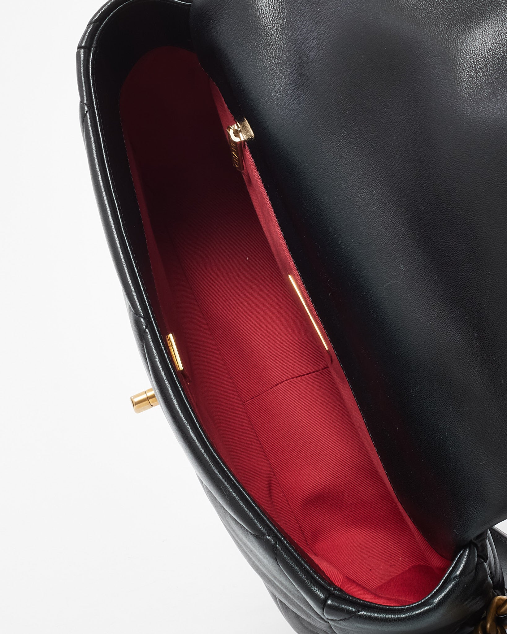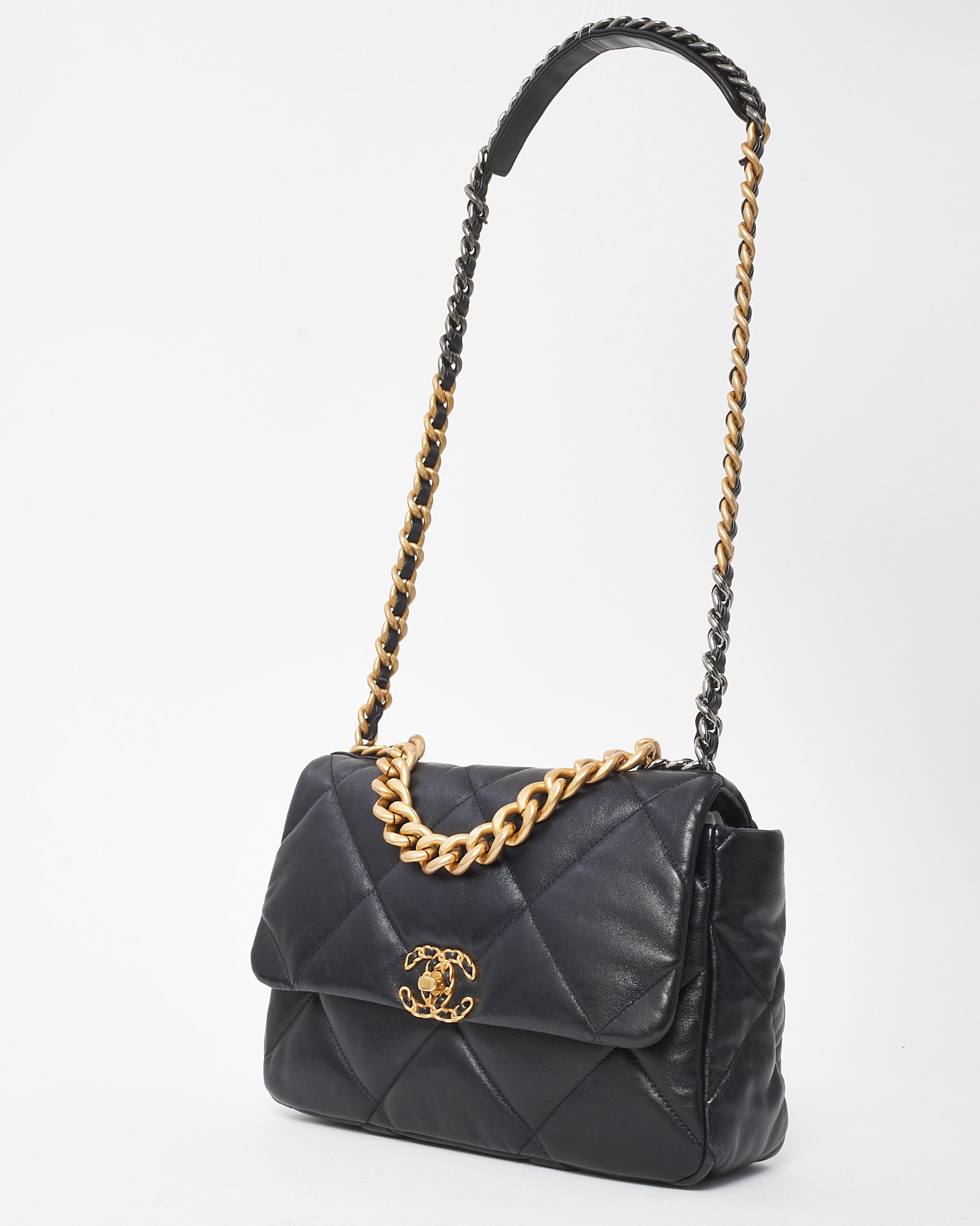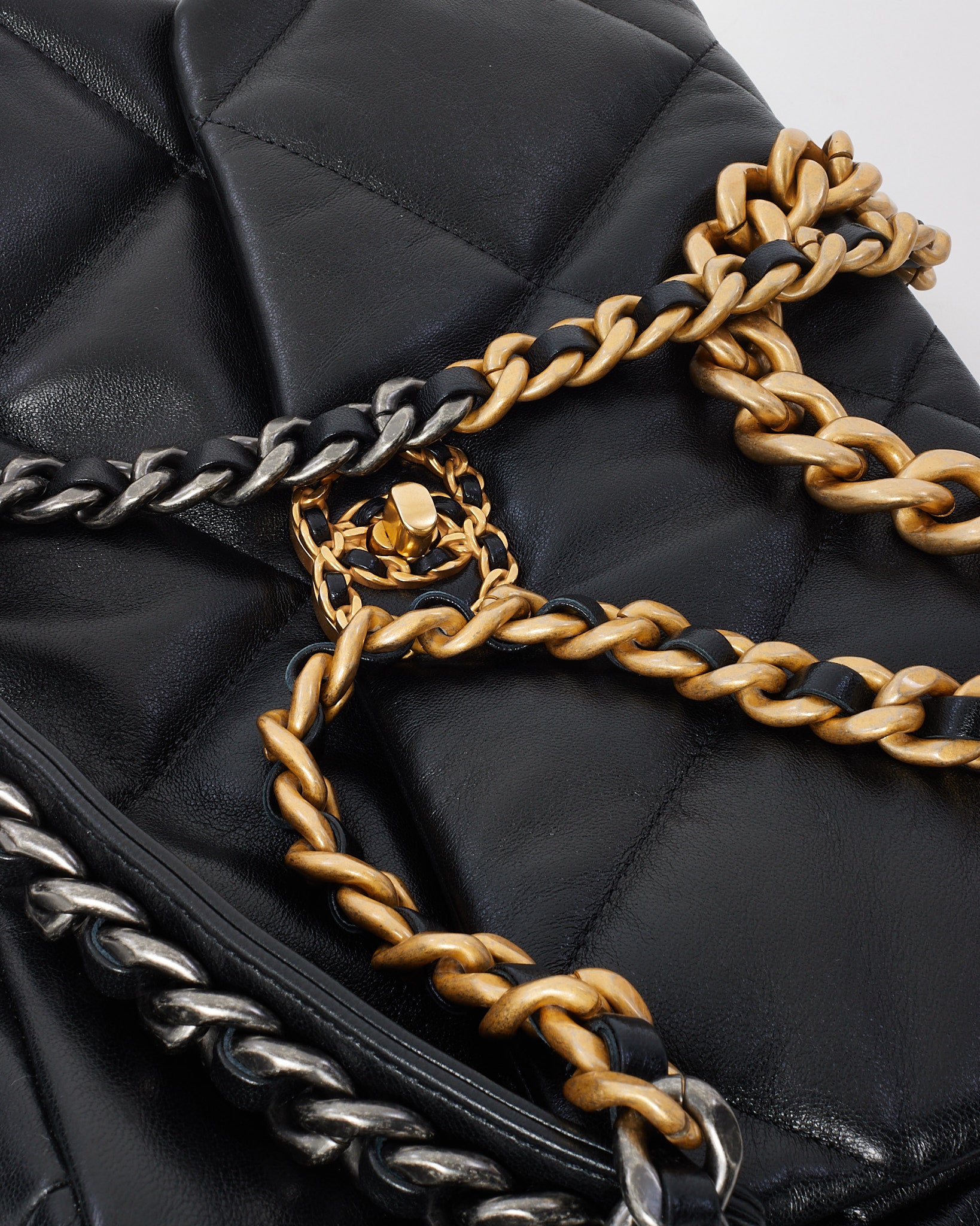 Black Quilted Shiny Lambskin Leather Large Chanel 19 Bag