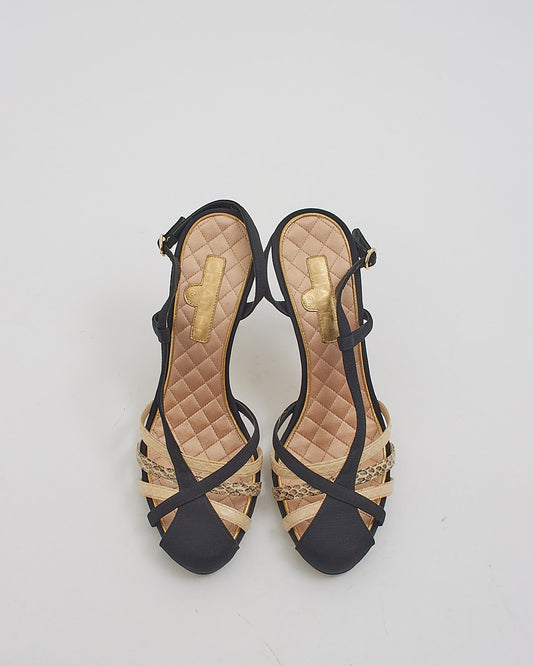 Black Snake Print Cage Sling Back Sandal - 37.5