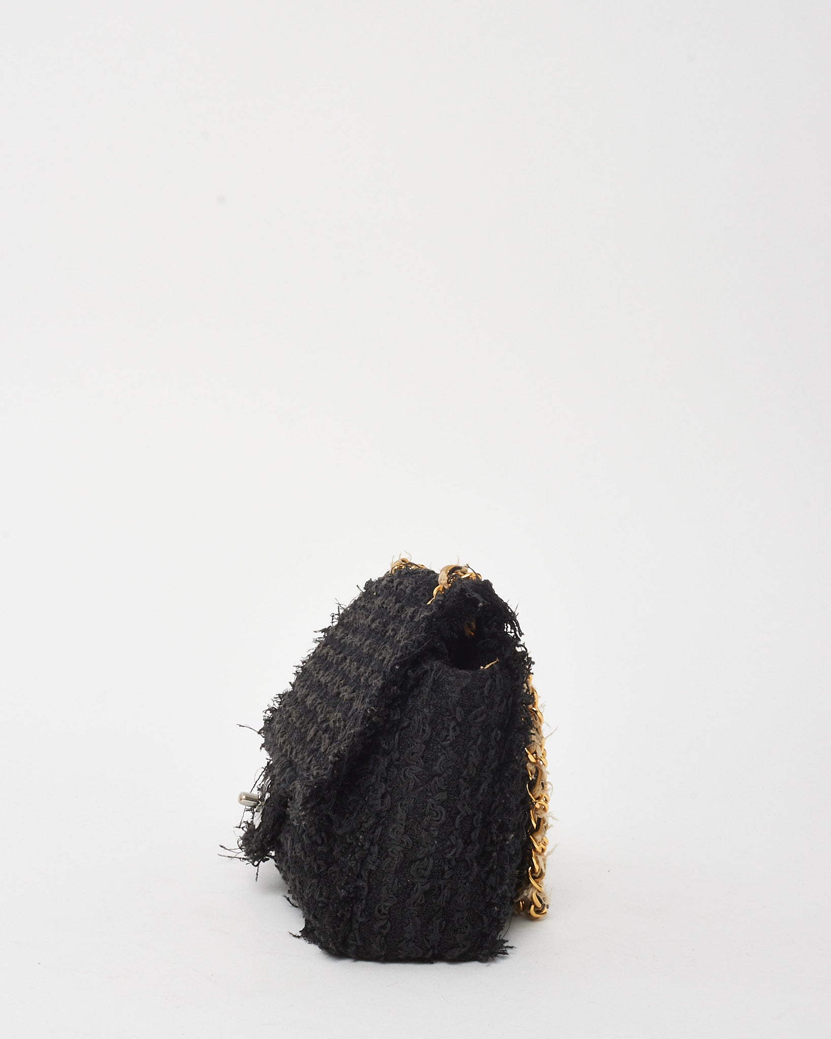 Black Tweed Medium Classic Single Flap Bag GHW