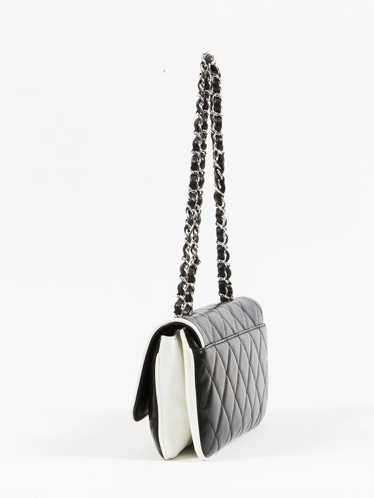 Black/White Lambskin Fliplock CC Flap Shoulder Bag SHW