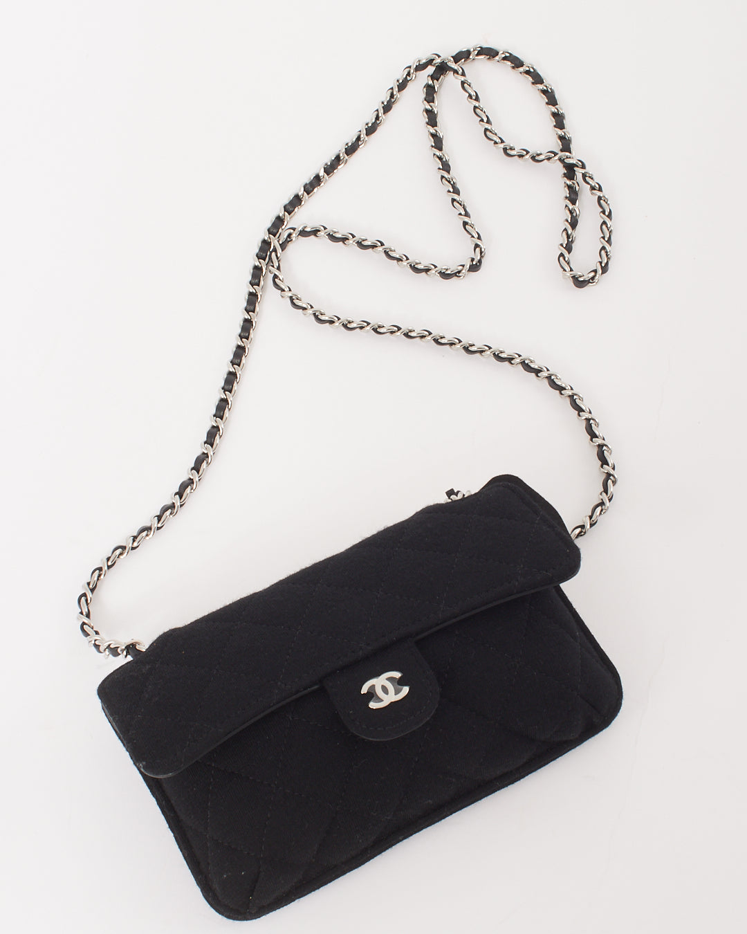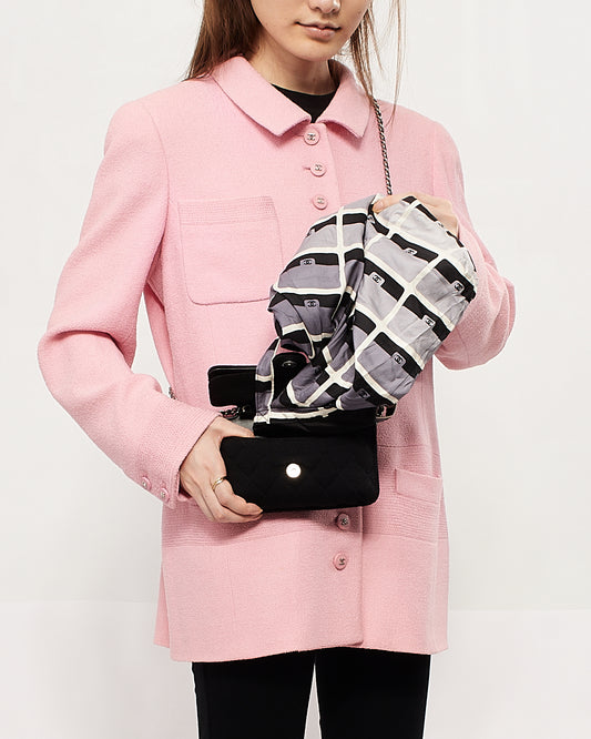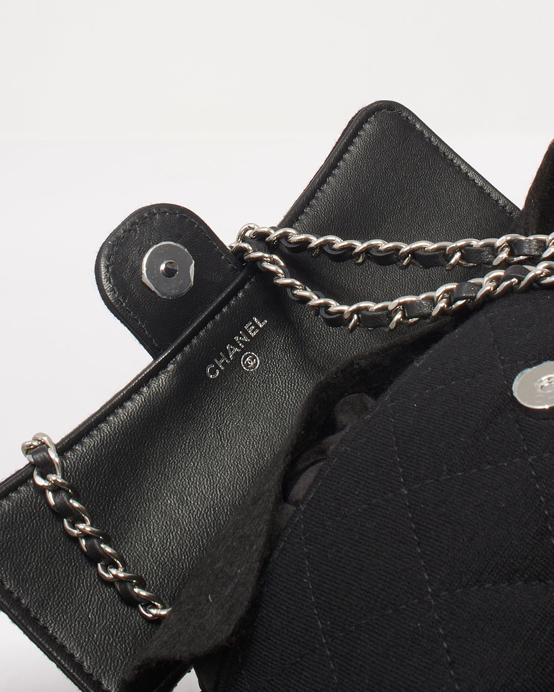 Black/Grey Wool/Multi Logo Mini Flap/Foldable Shopping Tote