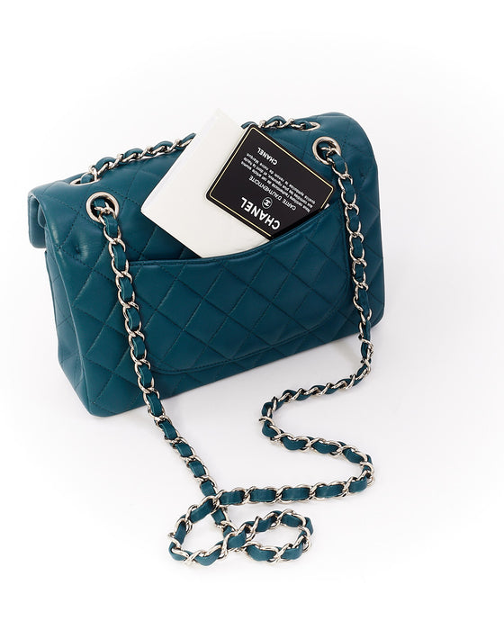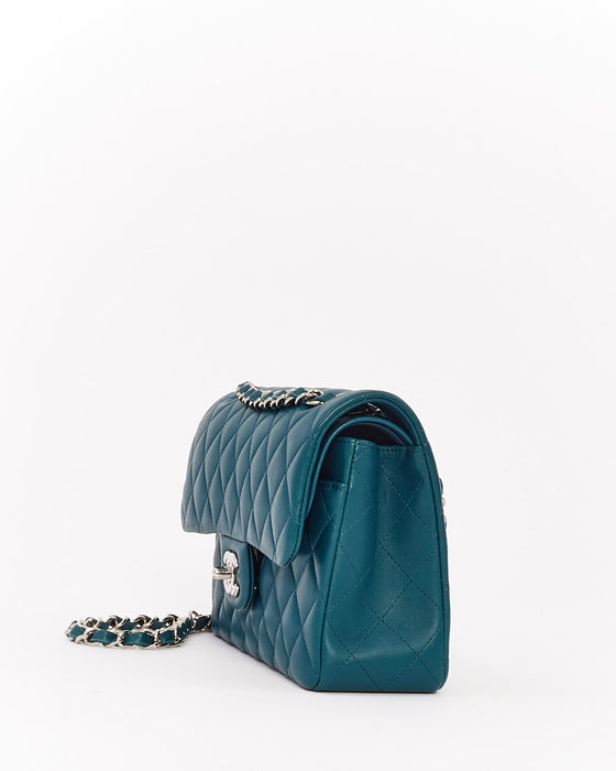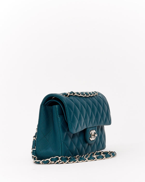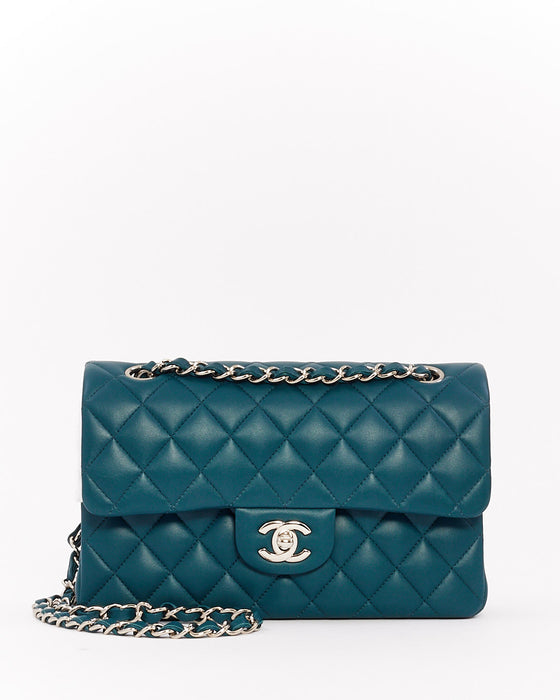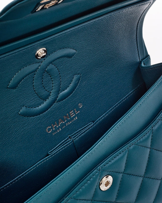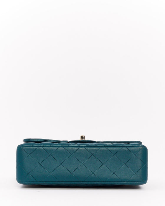 Blue Lambskin Leather Small Classic Double Flap Bag with Silver Hardware
