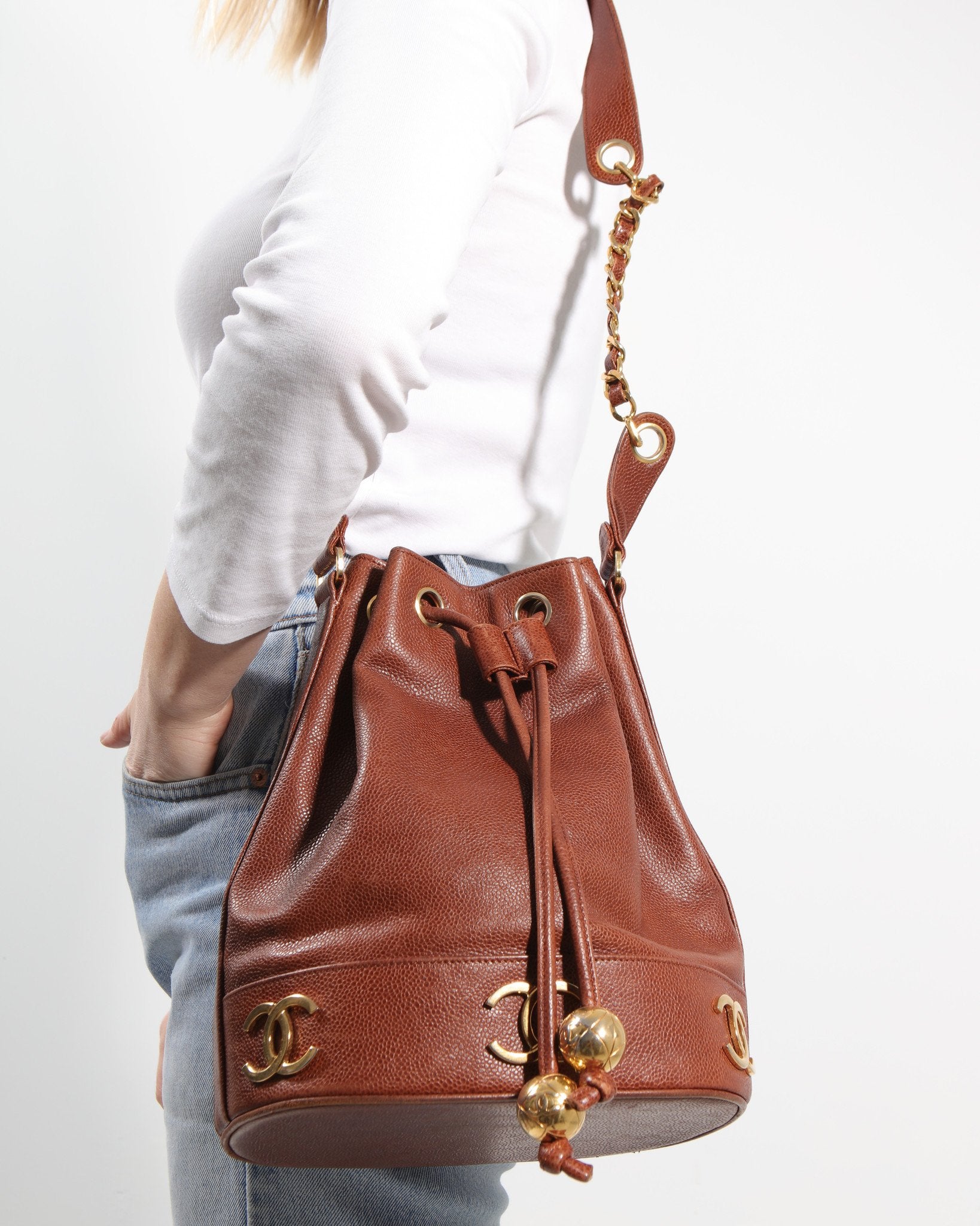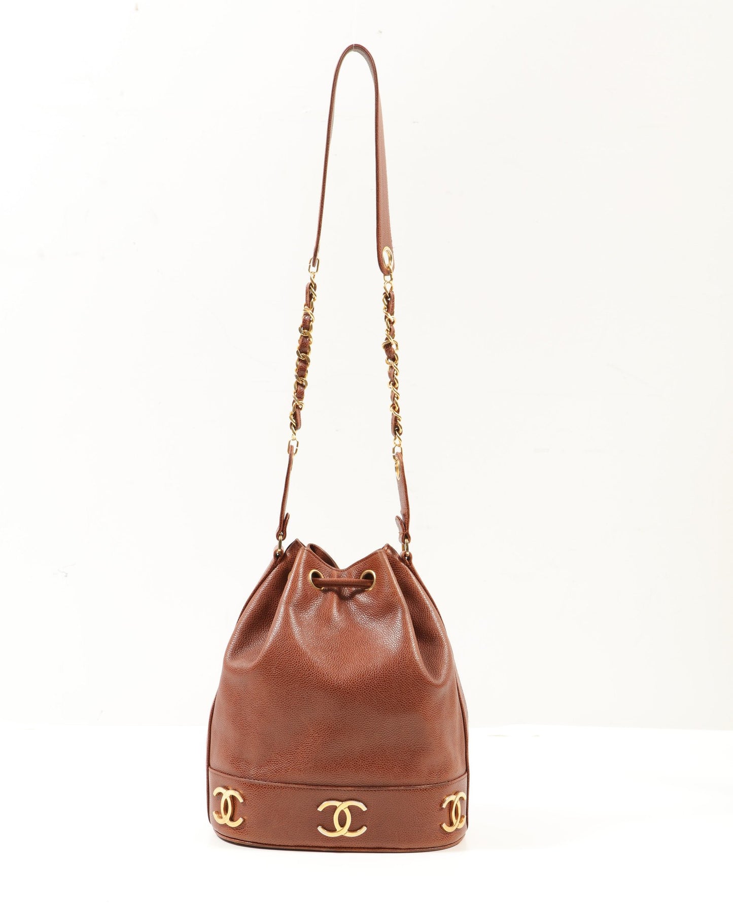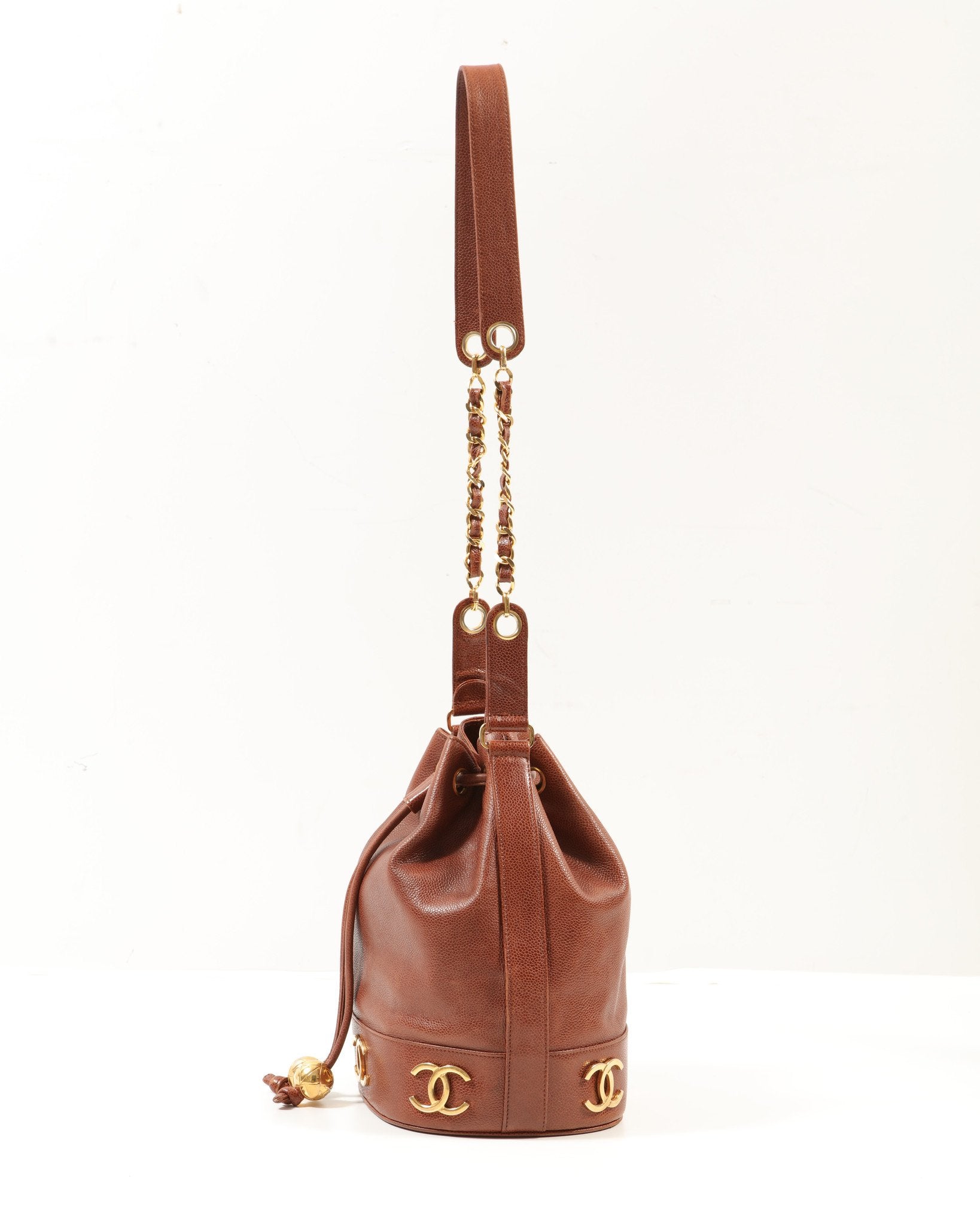 Vintage Brown Caviar Leather CC Drawstring Bucket Bag