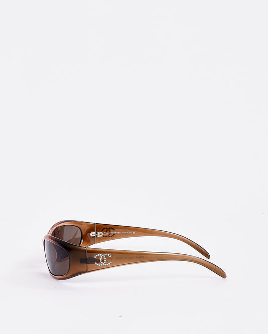 Brown 6004-B Rhinestone CC Logo Shield Sunglasses