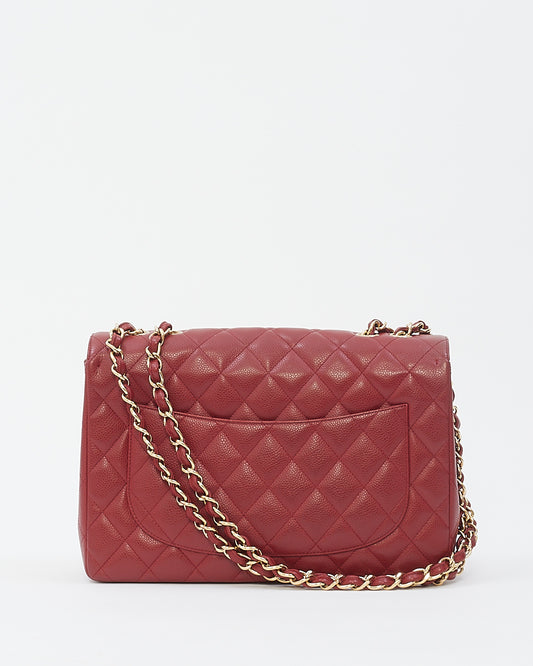 Burgundy Red Caviar Leather Jumbo Classic Flap with Gold Hardware